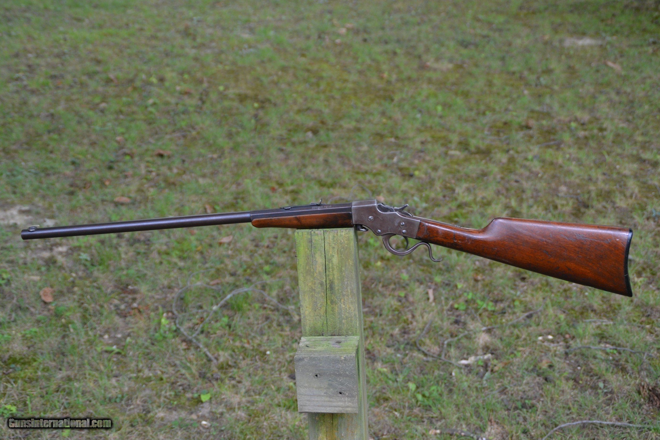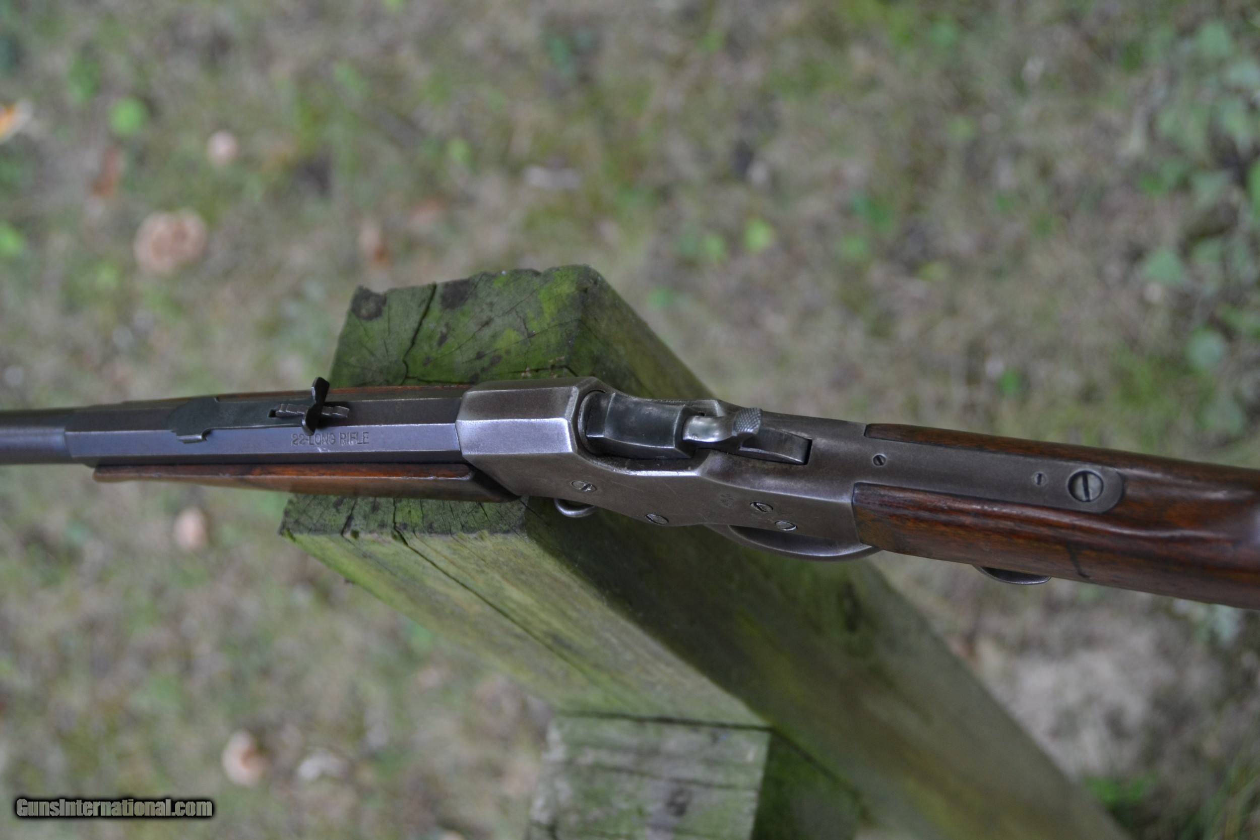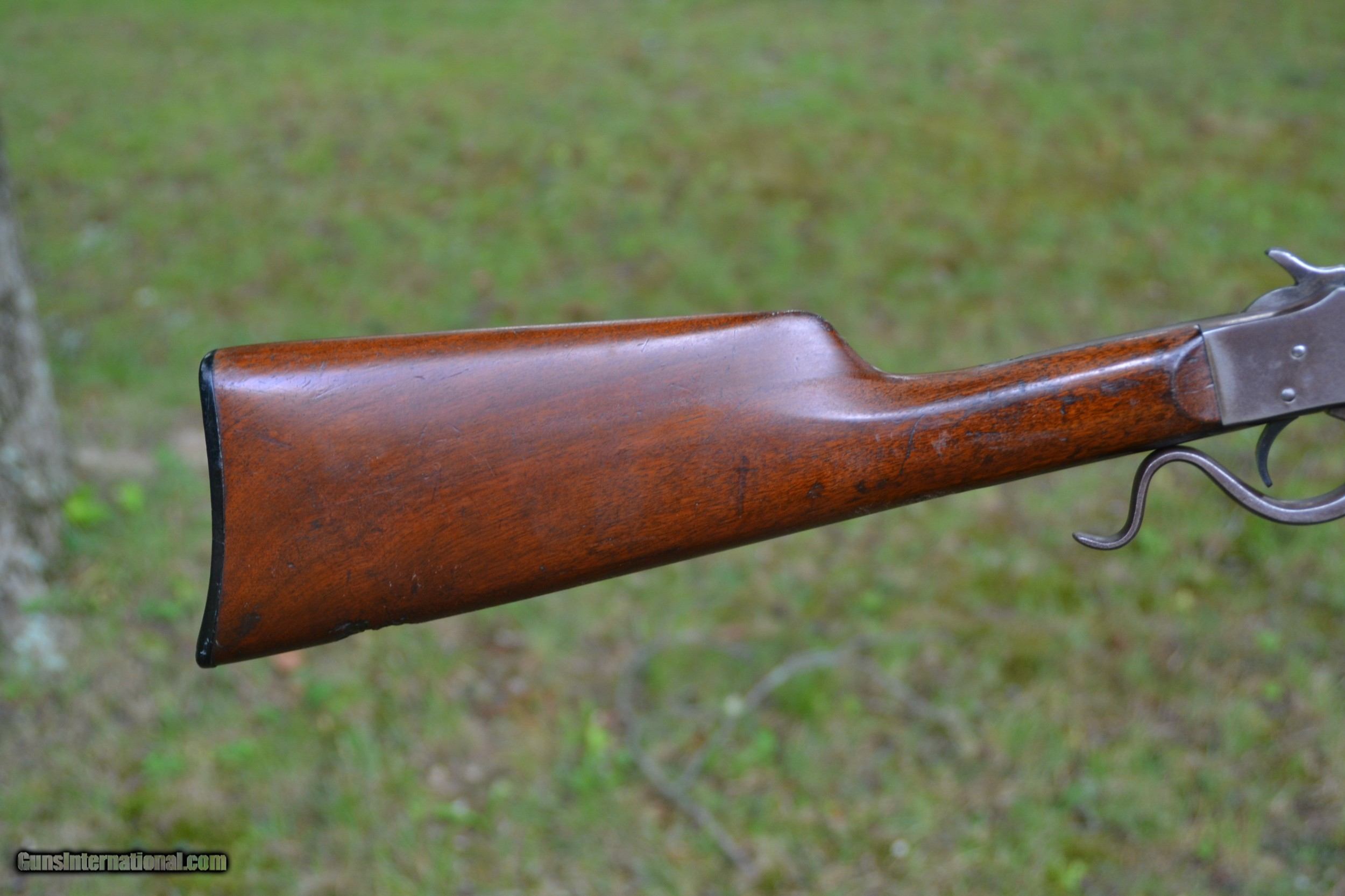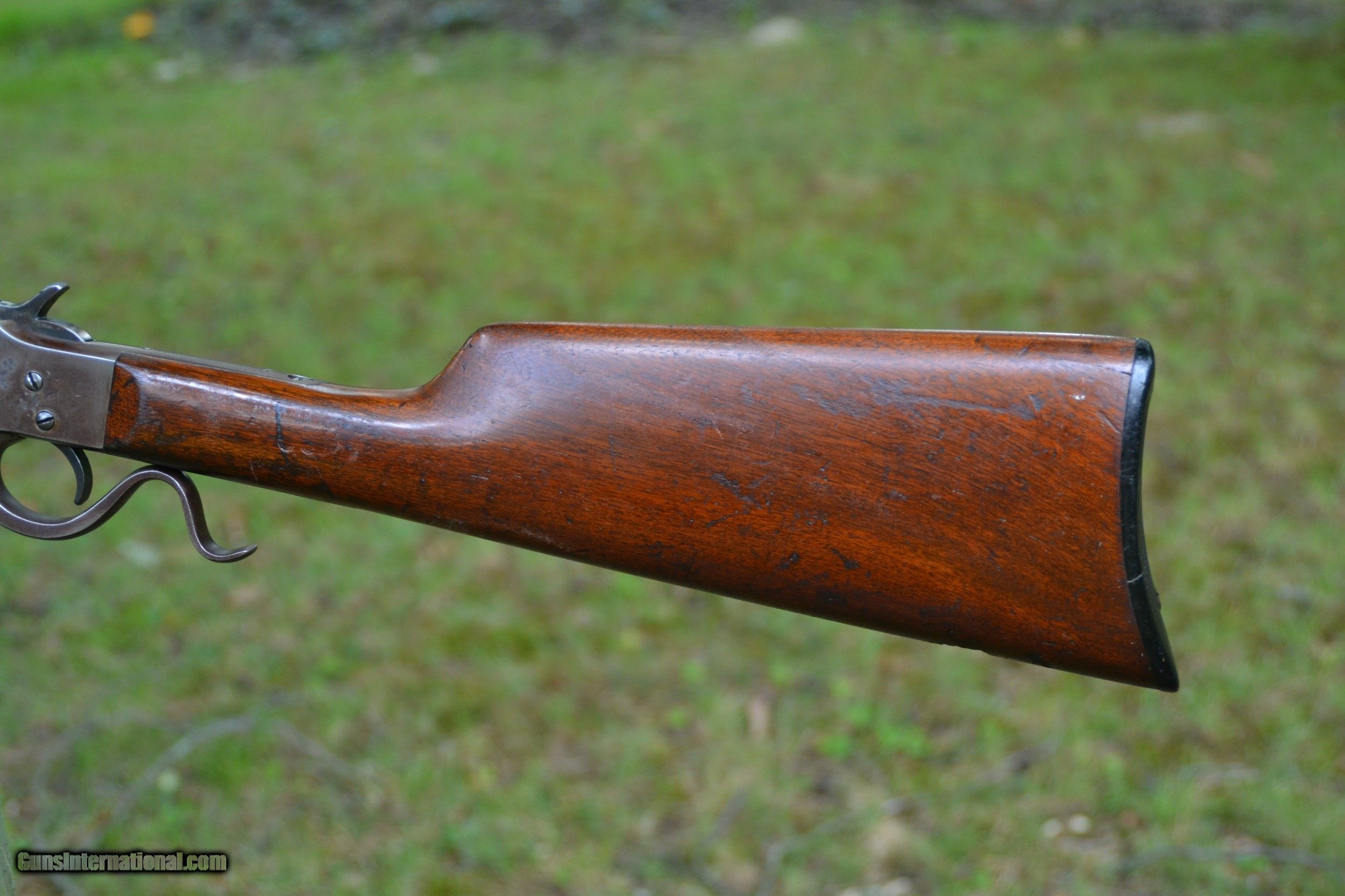 Description: THIS GUN HAS BEEN SOLD TO STUART. THANKS. This one is a .22 takedown, serial # S 550, two line address, half round, half octagonal barrel, putting it between 1894 and 1920. Decent condition except for a few "minor" beaver attacks on the buttstock. The beaver was dispatched and his hide sold for beer money in 1932. The butt plate has a hairline horizontal crack. As far as a cool little rifle goes, this one fits the bill and would be a great first rifle for a young one (pronounced as "young in" in Southern IN). Buyer pays shipping and yes, I will even break it down to save you money on the USPS new length sur charge. Yeah, I can send you more/better/specific pics if you need them. If you ask me how it groups at 50 yards, I may have to track you down and beat you over the head with it. OK, that might have been a little harsh, but you get the general idea. Buyer pays shipping. SOLD Rifle Caliber: .22 Long Rifle |