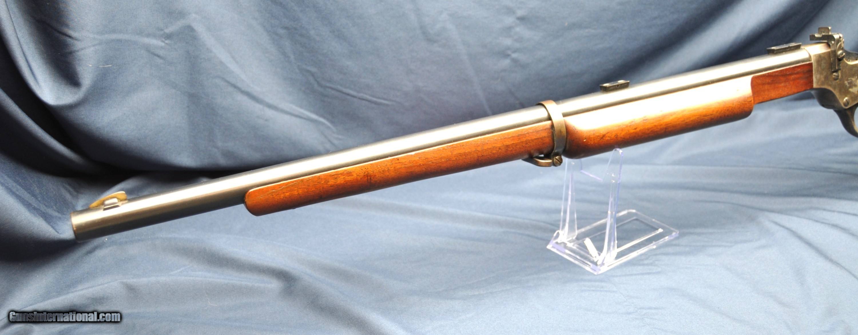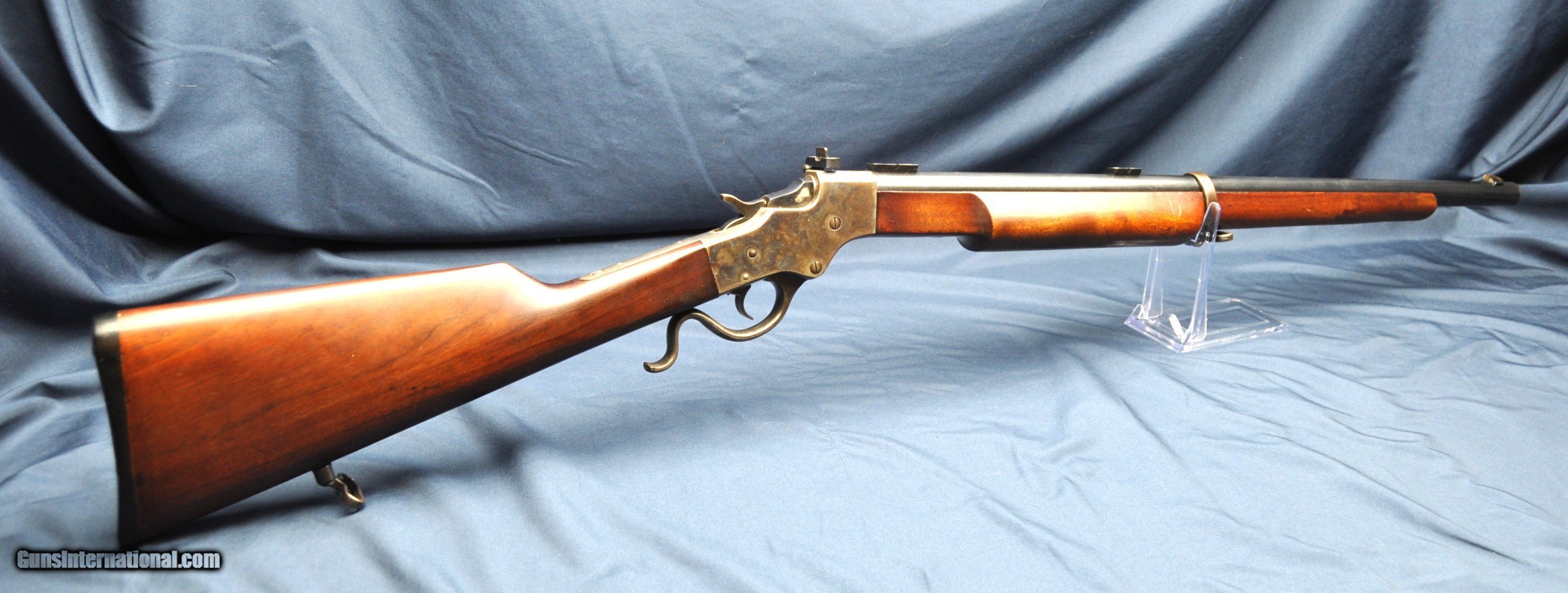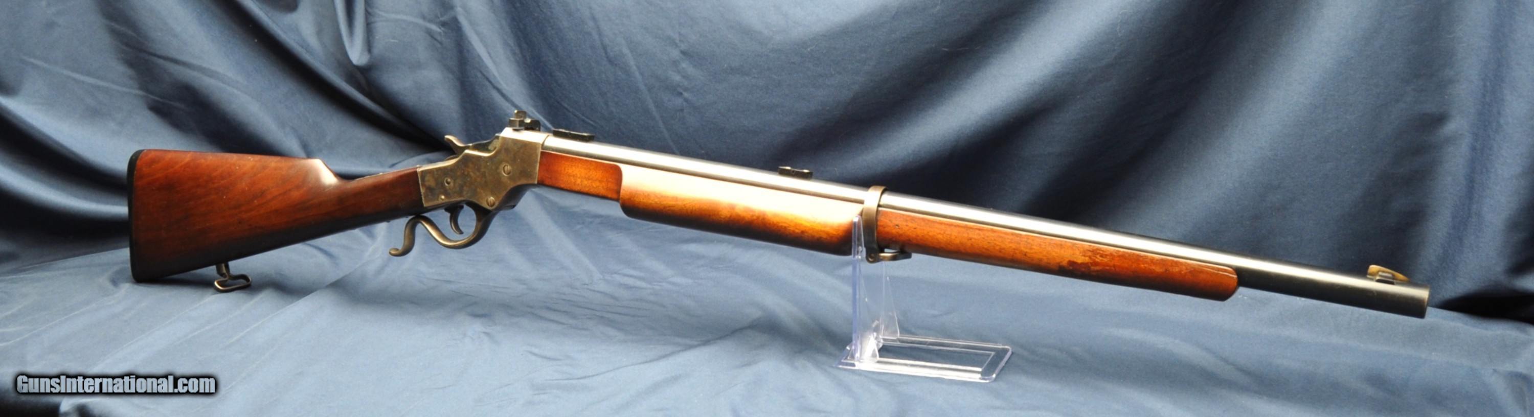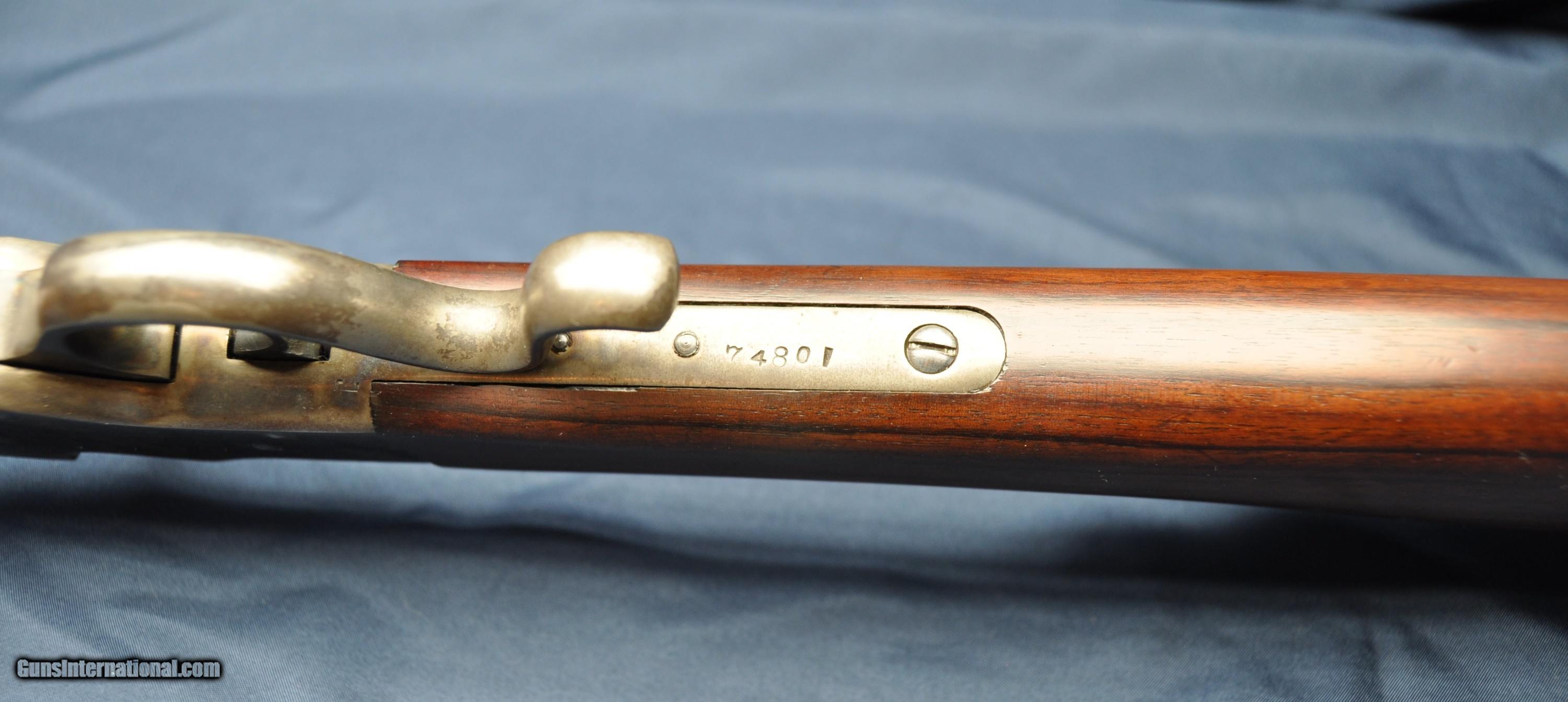 Description: A very nice, original Stevens model 414 Amory falling block rifle. Serial number 74801, chambered in .22LR with a 24" barrel. Based on the model 44 action, these are extremely accurate target rifles. Gun is in fine original condition. Action opens smoothly and locks up tightly. There's some finish wear showing on the forend, with some handling marks and light wear on the stock. Case on the reciever is in very nice shape, with excellent color and light wear present on the edges. Bluing is very nice with some light wear present at the end of barrel and front sight. Original buttplate, and sling swivels. Bore is excellent, shiny with sharp rifling. Please email with any questions, for more pictures or to make an offer. Rifle Caliber: .22 Long Rifle Manufacturer: Stevens Model: 414 Serial Number: 74801 Price: $1,100.00 Contact Seller |