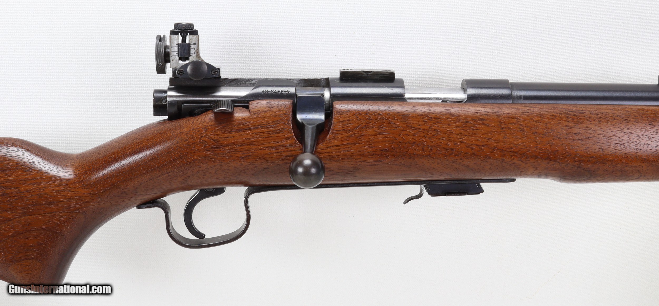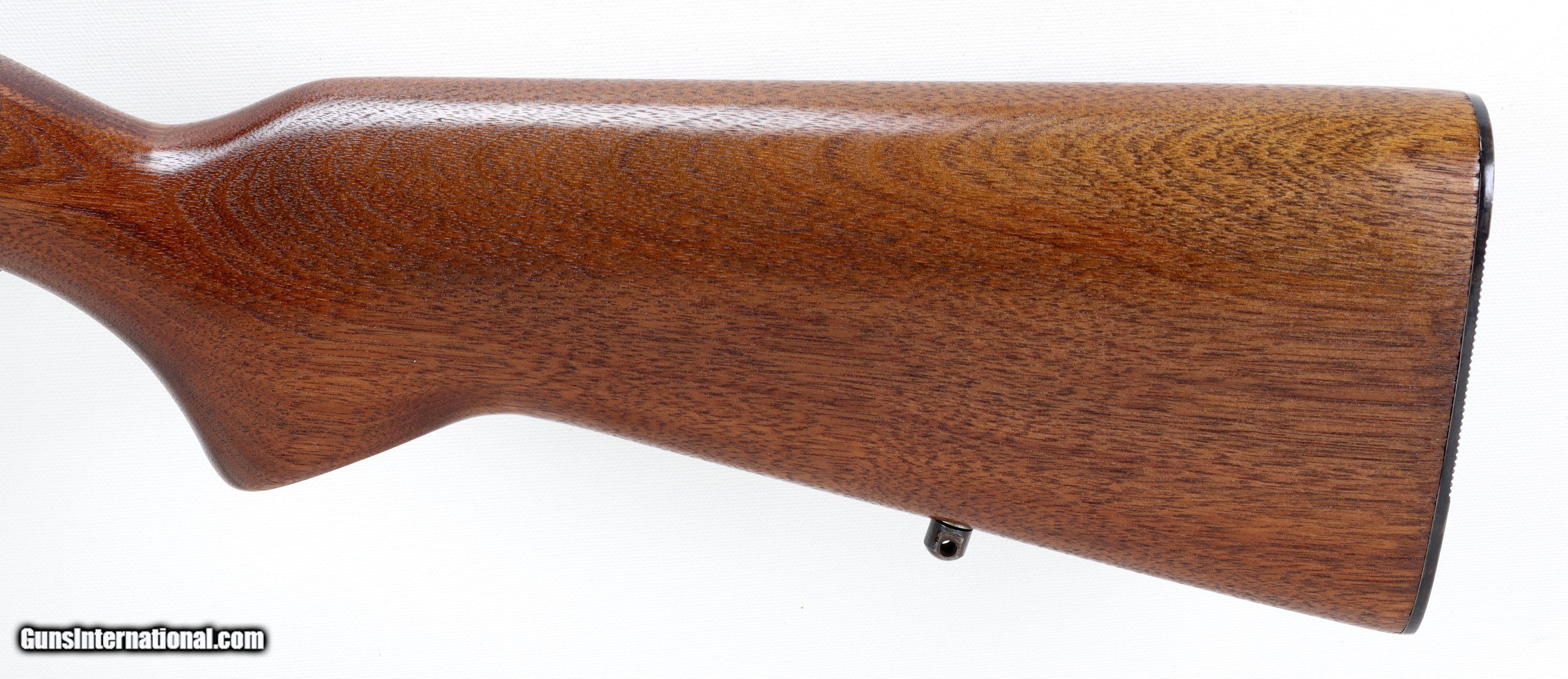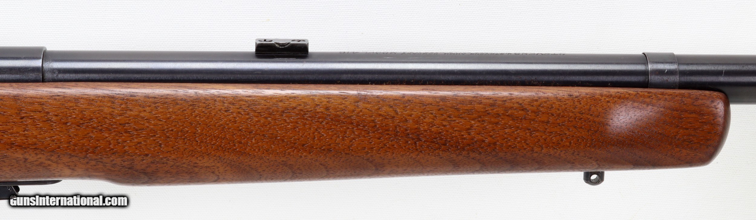 Description: Stevens Model 416 Bolt Action Target Rifle in .22LR. Military Trainer / Commercial Model. Mfg. 1946-1949 Est. LOP 13 1/4". 26" Heavy Barrel with an EXCELLENT Bright Bore with STRONG RIFLING. The Blued Metal and Smooth Walnut Pistol Grip Stock and Forend have been FULLY RESTORED by SHOOTER'S EXCHANGE and LOOK GREAT. Parker Hale Rear Target Sight and Hooded Front Sight. Steel Serrated Buttplate. Scope Mounts. 1 - 5 Round Magazine. These Rifles make GREAT SHOOTER'S and we've included photos of 2 Test Targets of 5 Rounds each at 50 yards. Test Fired using Federal Target Grade Auto Match Ammo. One Box of 325 Rounds of the Federal Target Grade Ammo is included. Weight: 8.8 lbs. Trigger Pull: 3 1/2 lbs. More photos available upon request. Ships to Lower 48 W/ Insurance $50.00. *** LET SHOOTER'S EXCHANGE RESTORE YOUR FIREARM*** SOLD Curio/Relic: Yes Rifle Caliber: .22 Long Rifle Manufacturer: Stevens Model: 416 Barrel Length: 26" Heavy Condition: Excellent Metal Condition: Refinished Wood Condition: Refinished Bore Condition: Excellent Action: Bolt Finish: Blue Weight: 8.8 lbs Manufacture Date: 1946-49 |