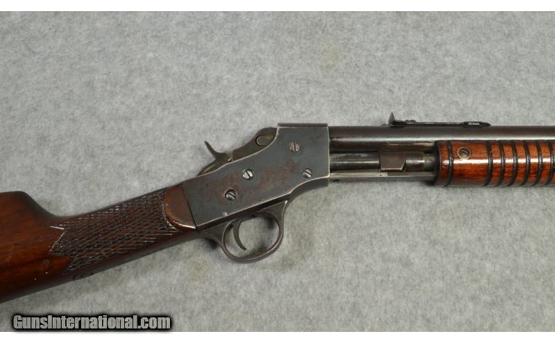 Description: For your consideration, the J. Stevens Model 70 slide-action rifle chambered in .22 S, L & LR. The Model 70 or "Visible Loader" was first manufactured in 1908 through 1934. It is tube fed, up to 15 rounds of 22 Short, 11 if using LR cartridges. This one appears to be made at or around the Savage acquisition of Stevens in 1925. .22 Short/Long/Long Rifle SOLD Metal Condition: Good Wood Condition: Good Bore Condition: Good Barrels: 22 Weight: 5 lbs Item Location: Centerville, OH |