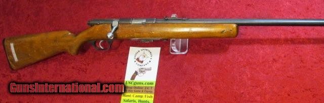 Description: Stevens Springfield 84C bolt rifle 24" bbl Handy rifle for those critters around the barn!! This used Stevens Springfield has seen some use--great project to restore the wood! This bolt action rifle has a removable mag. The wood shows dings, nicks, scuffs in the finish--would be a great project to refinish this winter. Bluing has wear and very light surface rust on the barrel. Please see pictures of actual rifle.