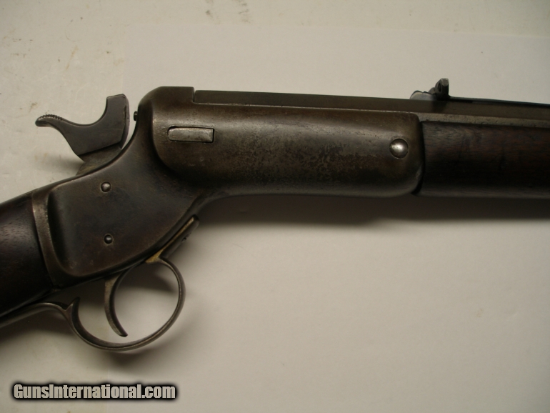 Description: This Stevens tip-up rifle might have been a special order. Because it has a forend, blue ,or casehardened frame & furniture, and once appeared to have had a tang sight.The bore is worn though much of rifling is visible and is shootable. The caliber is .32 rim fire.It has a blade front sight and rear sight has been changed.Works fine and has a slight loosness in barrel lockup.The photos show condition of metal; blue here and there with brown patina.The barrel measures 26 inches overall and the front 16 inches is round and I say a medium weight.Has early J.Stevens & Co. markings.I sell all my pieces as collectors' items and one should have checked out by a gunsmith if intending to shoot. SALE PENDING SOLD Antique: Yes |