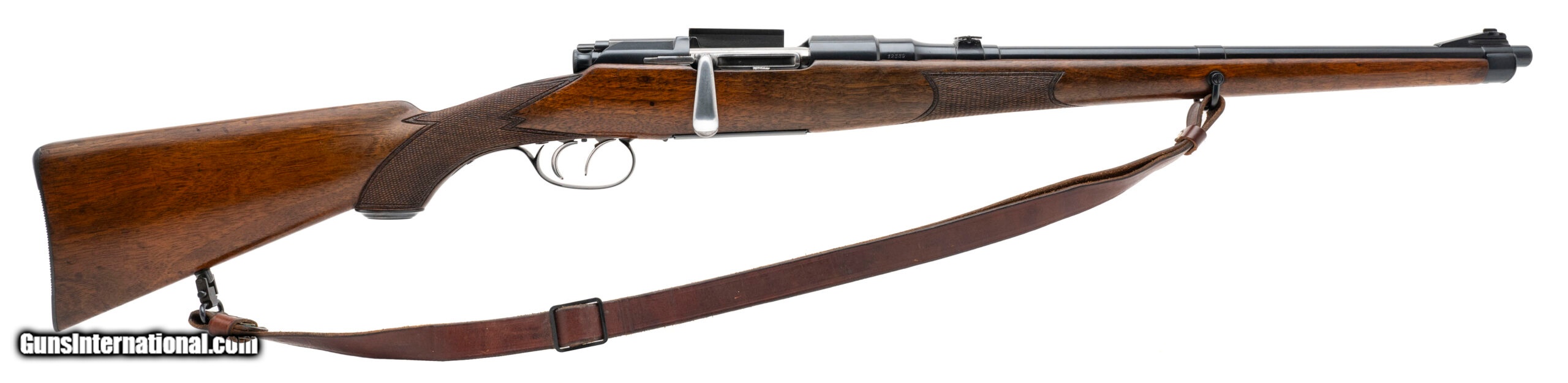 Description: "SN: 12339. Early 1900's vintage 6.5x54 with a 18"" barrel. Bore is excellent. Pre-war sporting full stock carbine with an Echo scope base mounted. Has about 95% original blue finish. The stock has some marks and wear. Overall very good condition. SOLD Curio/Relic: Yes |