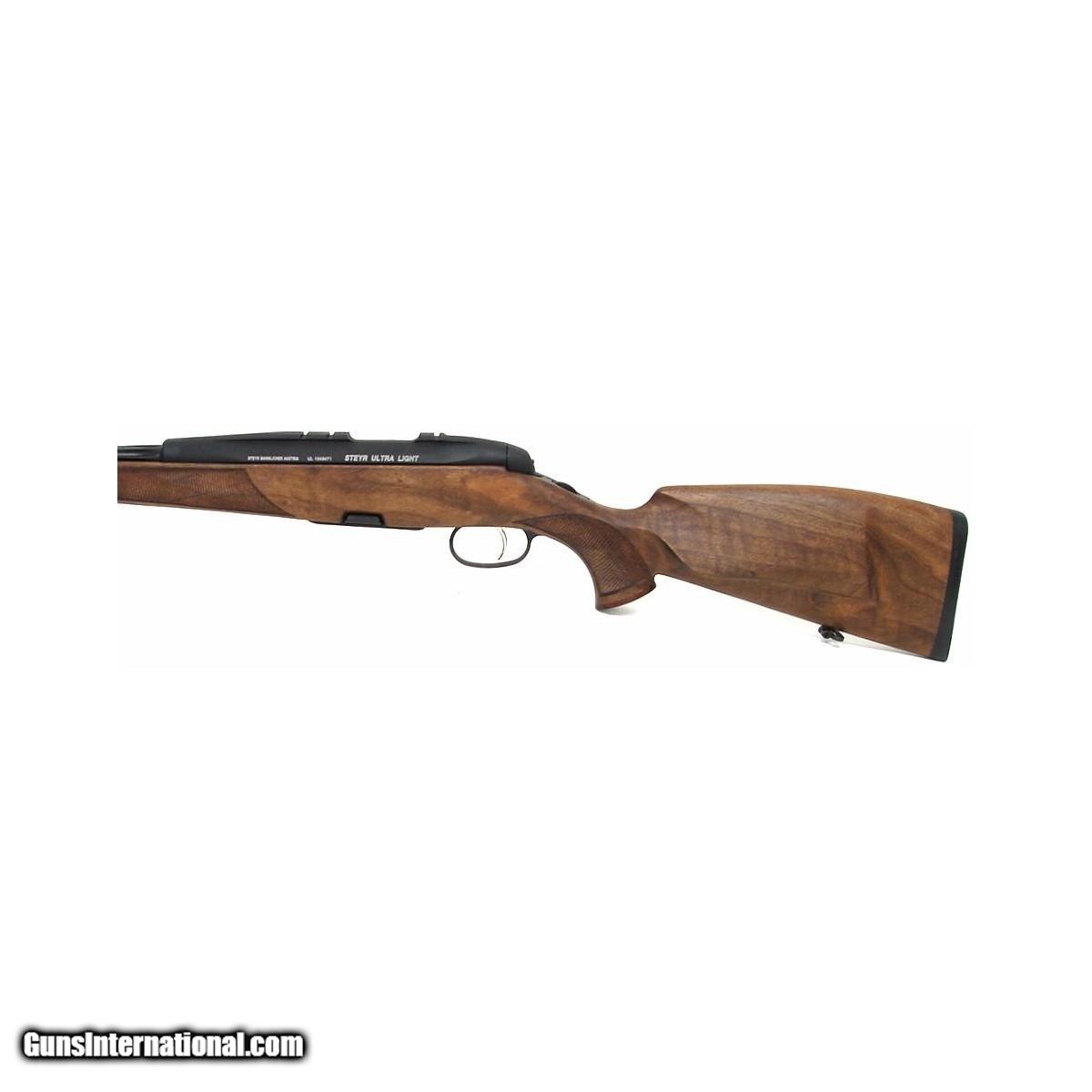 Description: "Steyr SBS Ultra Light .223 Rem caliber rifle with 20? fluted barrel, fancy wood stock, rosewood forend & pistol grip cap & double recoil lugs. New. SOLD |
