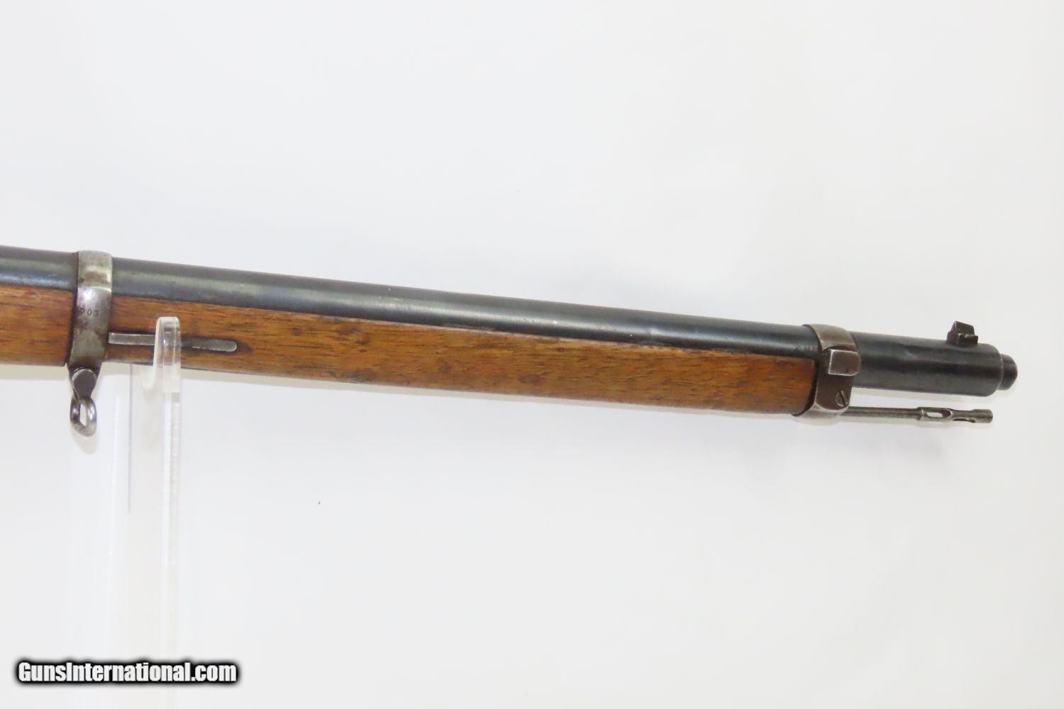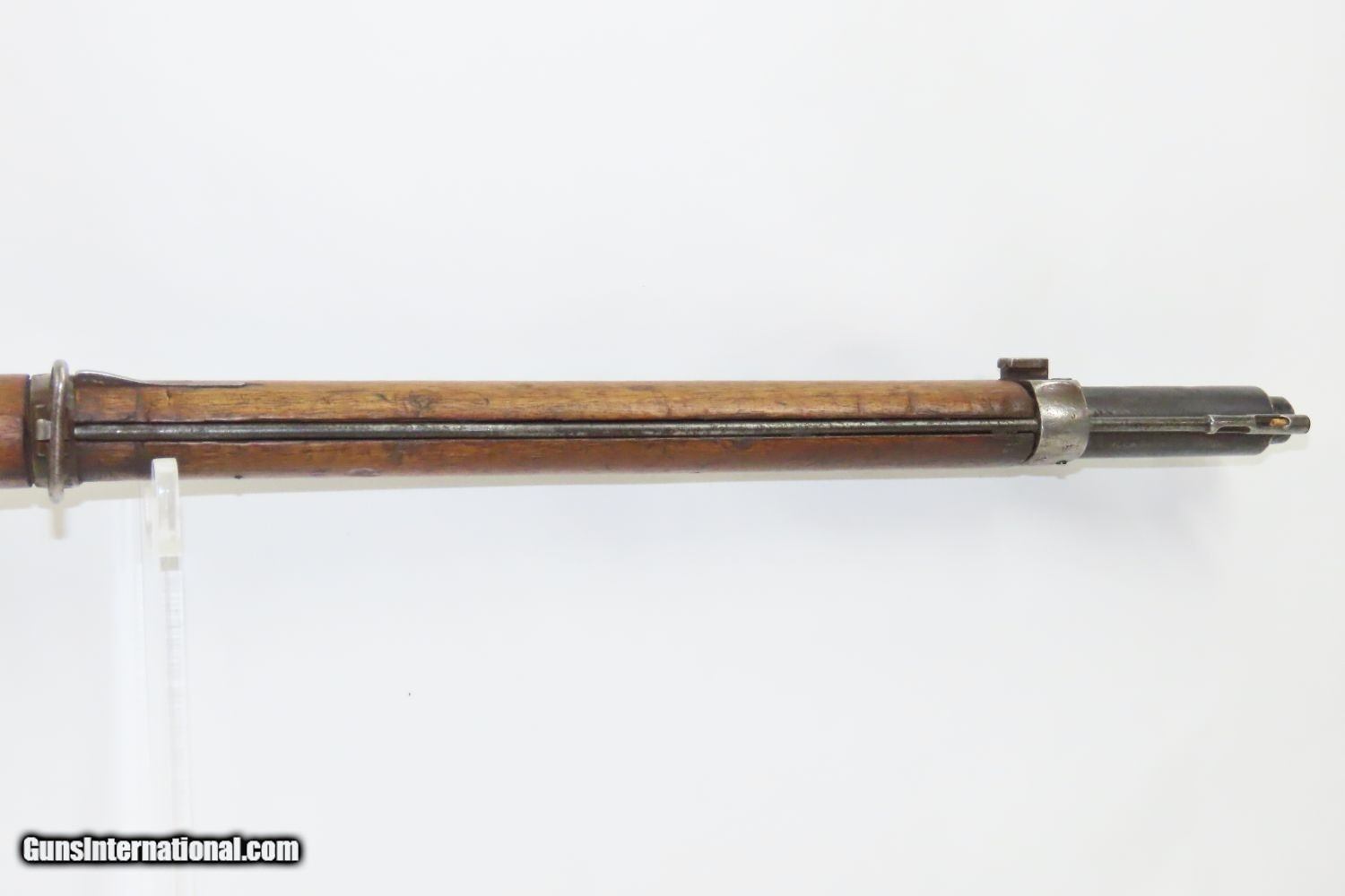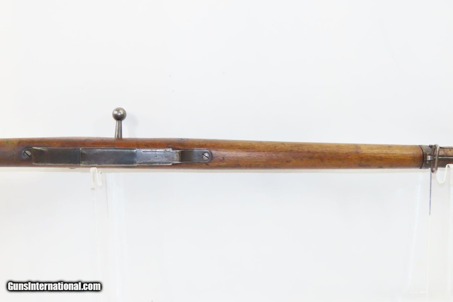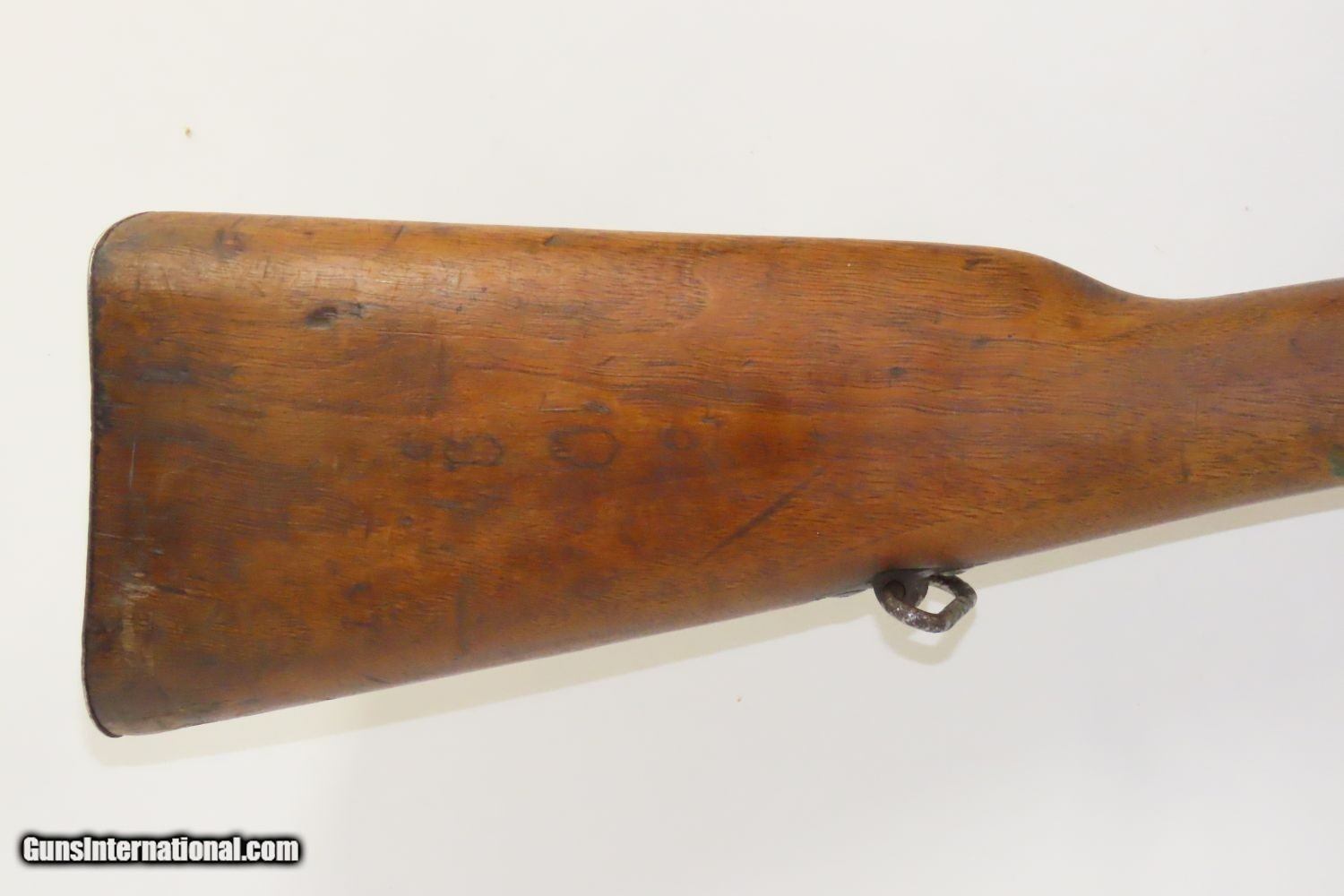 Description: Antique STEYR GERMAN CONTRACT 7.92mm GEWEHR 88/05 Bolt Action SERVICE Rifle Model 1888 COMMISSION RIFLE! Here we present an antique Steyr German Contract Gewehr 88/05, also referred to as the Model 88 Commission Rifle, made circa 1890 in Austria with a production run between 1888 and 1899. To settle a patent infringement claim by Steyr-Mannlicher of Austria, Germany contracted the Austro-Hungarian company to be one of the manufacturers of Gewehr 88s. The Gewehr 88 was a late 19th-century German bolt action rifle, adopted in 1888. The invention of smokeless powder in the late 19th century immediately rendered all of the large-bore black powder rifles then in use obsolete. To keep pace with the French, who had adopted smokeless powder "small bore" ammunition for their Lebel Model 1886 rifle, the Germans adopted the Gewehr 88 using its own new M/88 cartridge, which was also designed by the German Rifle Commission. The rifle was one of many weapons in the arms race between the Germanic states and France, and with Europe in general. Later models, such as this 88/05 replaced the use of en-bloc clips with stripper clips and went on to serve in World War I to a limited degree. Unlike many German service rifles before and after, it was not developed by Mauser, but rather the arms commission, and Mauser was one of the few major arms manufacturers in Germany that did not produce Gewehr 88s. The overall condition is very good. Strong action with a bright bore. The stock is solid throughout. “1890” dated breech. The numbers do not match. Here is a great piece of German history for the collection. Own the original! This is a legitimate antique and not a reproduction. Barrel is 29-1/2 inches. Caliber: 7.92mm Mauser Overall condition as seen in photos. Very Fast. Very Safe. FREE SHIPPING WORLDWIDE. Delivered directly to your door by express mail! Guaranteed AUTHENTIC & Includes CERTIFICATE OF AUTHENTICITY. ancestryguns $985 #210908 SOLD Antique: Yes |