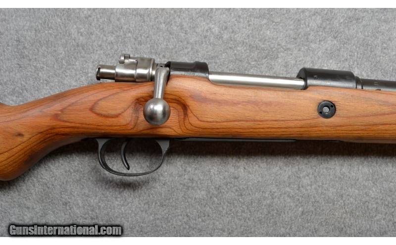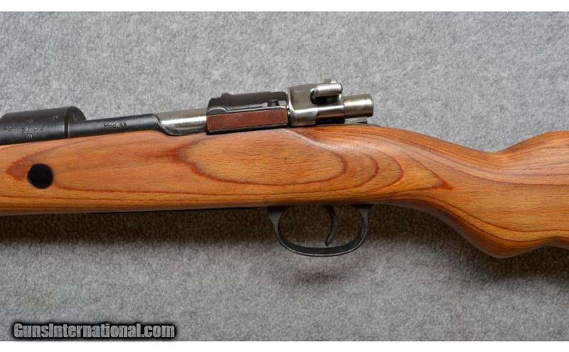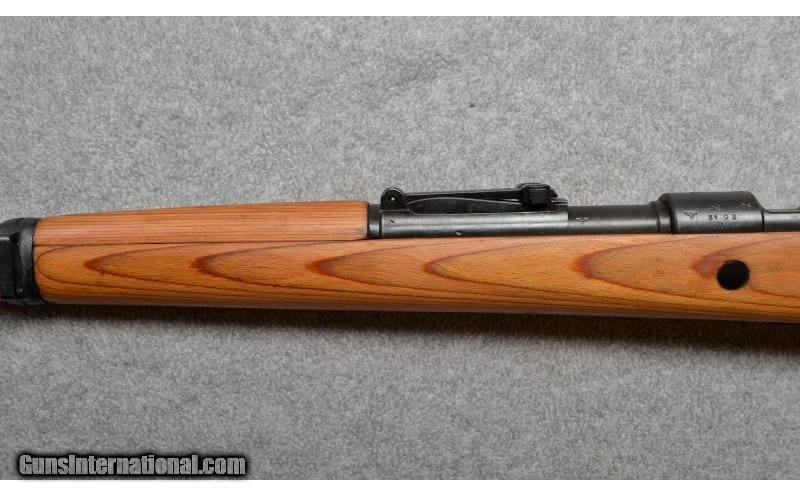 Description: Pre-owned BNZ Model 98 chambered in 8MM, 23 3/4" barrel. The top of the receiver is stamped BNZ 43 with German markings above the BNZ. German markings are on the front rings, bolt and receiver. Matching serial numbers on the bolt, butt stock and receiver. Serial# 3103 8mm SOLD Metal Condition: Good Condition Wood Condition: Good Condition Bore Condition: Bright and shiny with good rifling Barrels: 23 3/4 Stock Dimensions: LOP 13 Butt Pad: Metal Pad Weight: 9.5 lbs. Item Location: Springfield, OR |