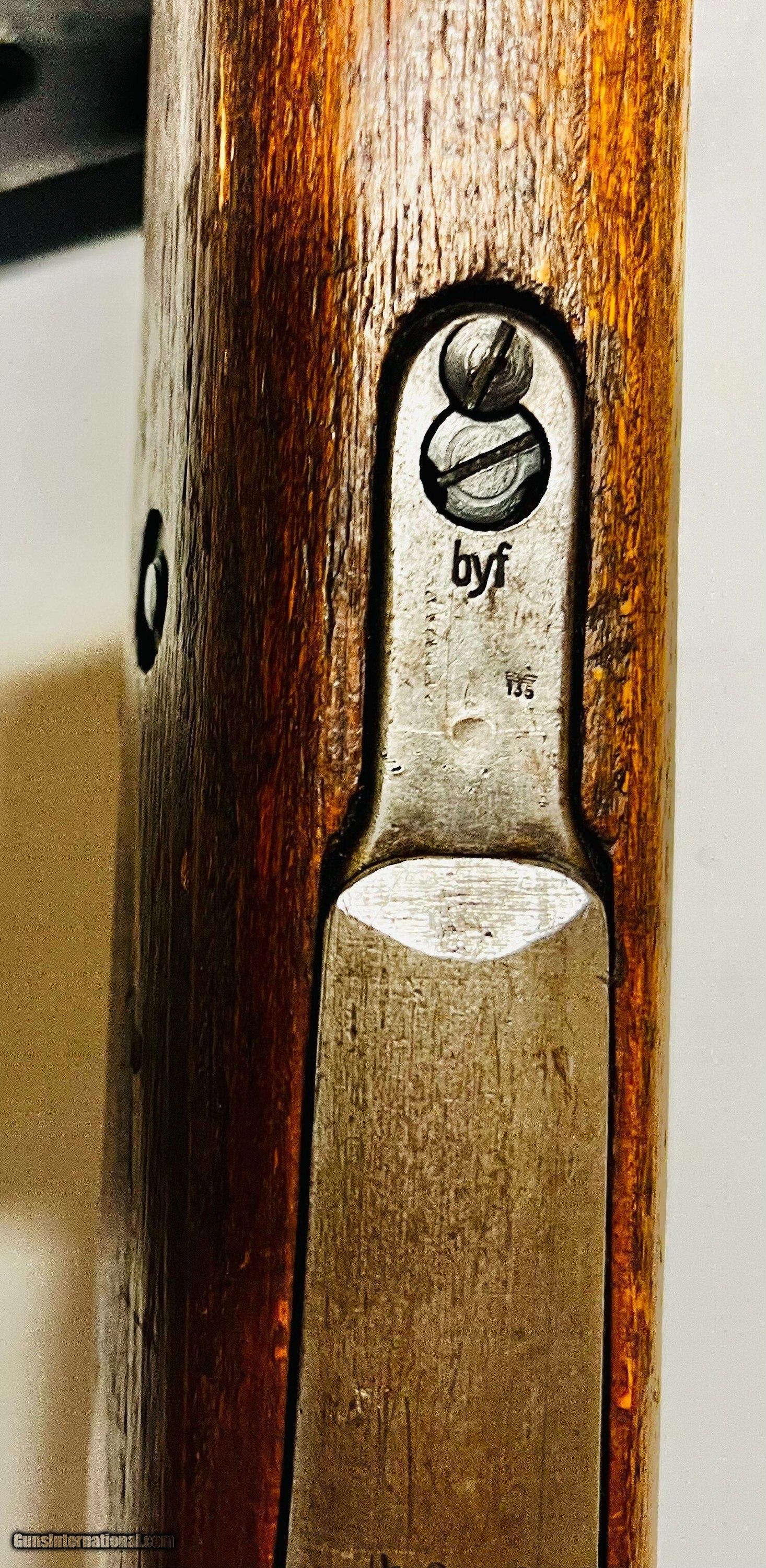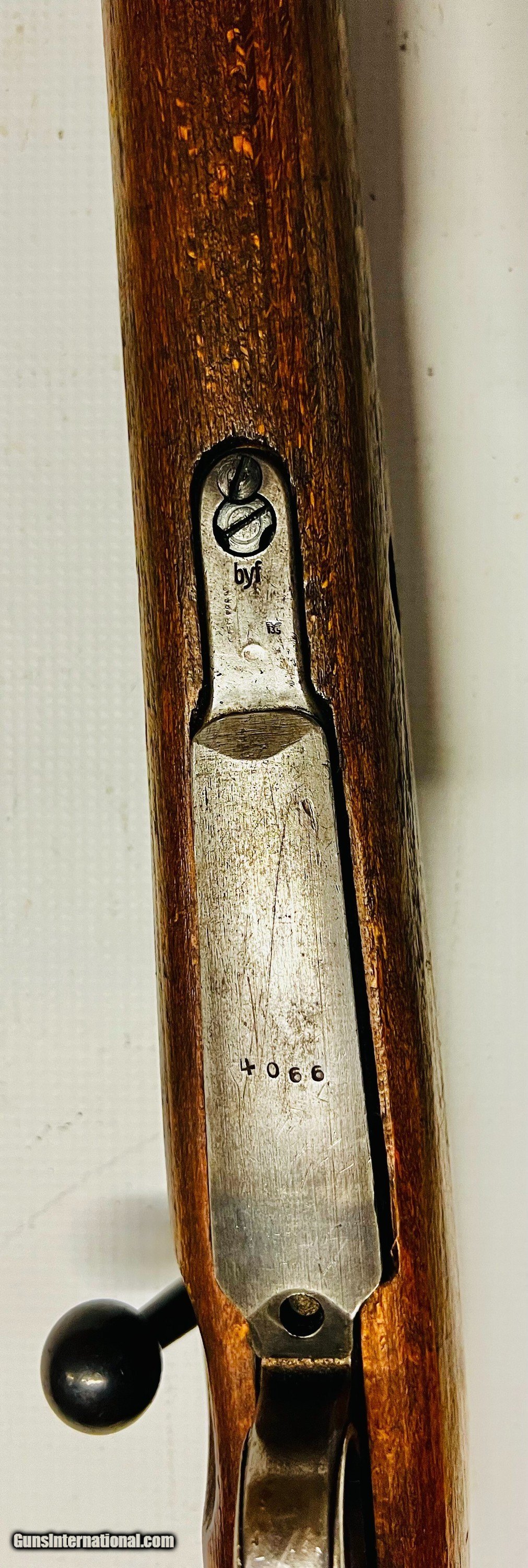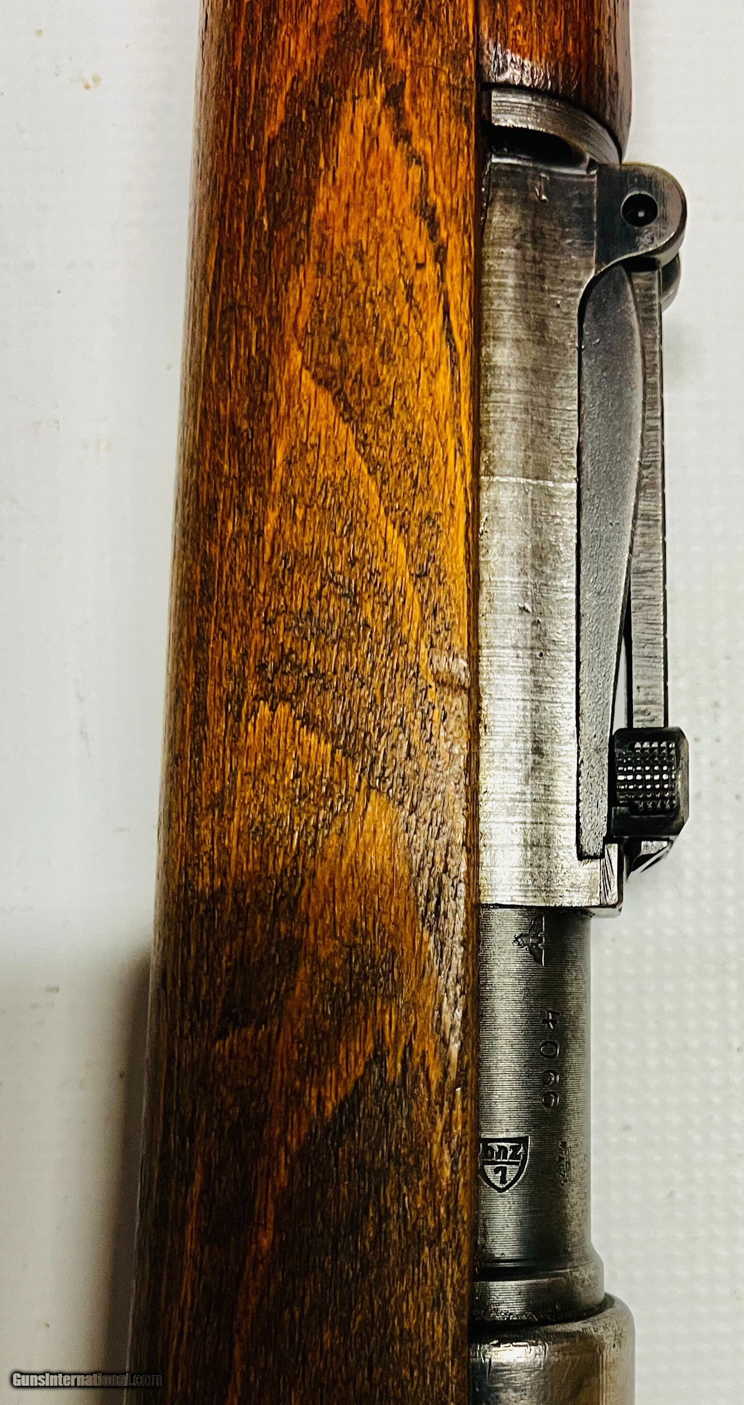 Description: Description: For sale: Wartime Steyr-produced Mauser Karabiner 98k (K98) chambered in 8×57mm Mauser. Receiver marked BNZ, dated 1944, serial number 4066. Barrel measures approximately 23½ inches. Receiver bears a single rune marking associated with SS acceptance — presented strictly as a historical collectible from WWII. This example shows typical period wear; see photos for full condition. Ideal addition for a serious military arms collector. Details / Specs: