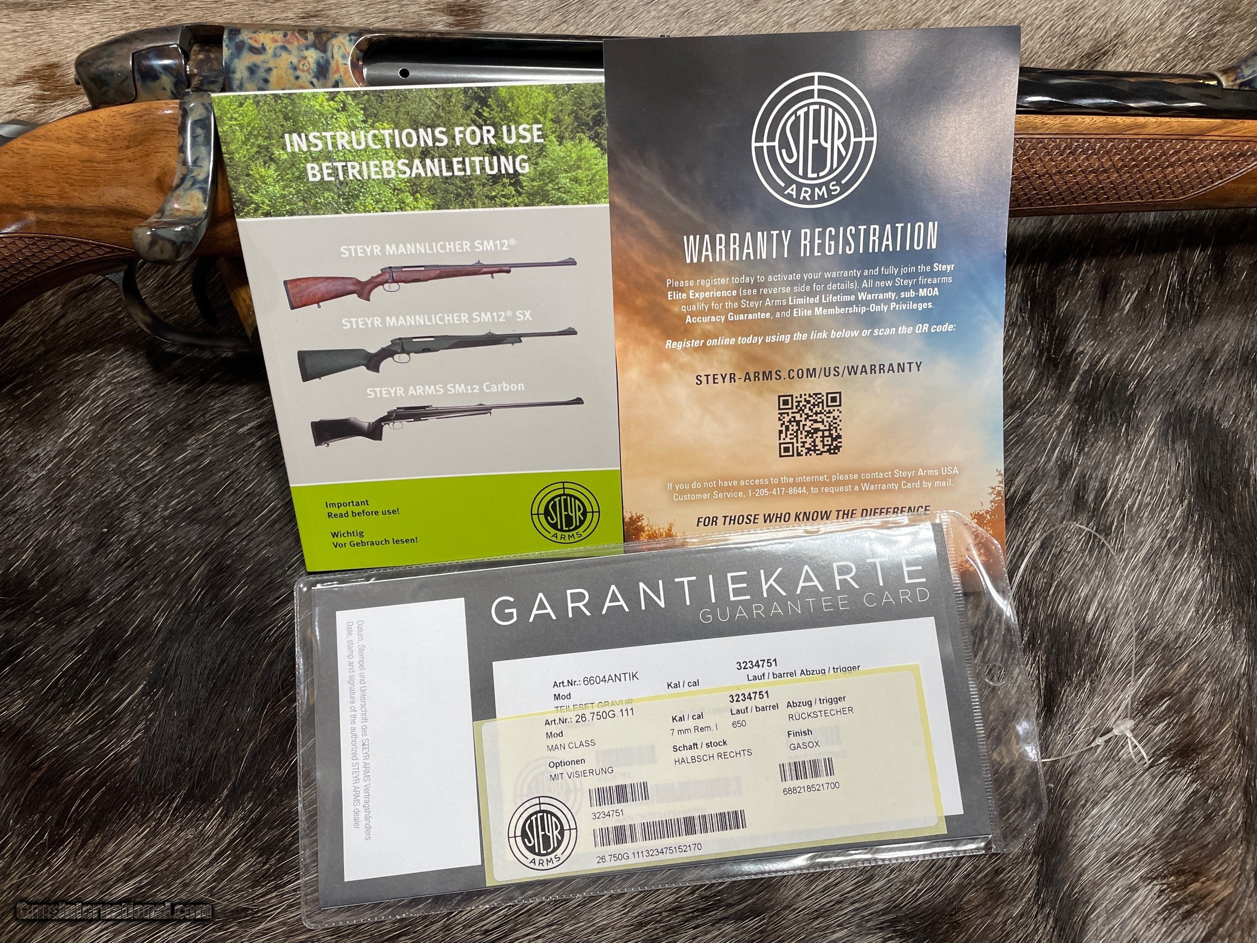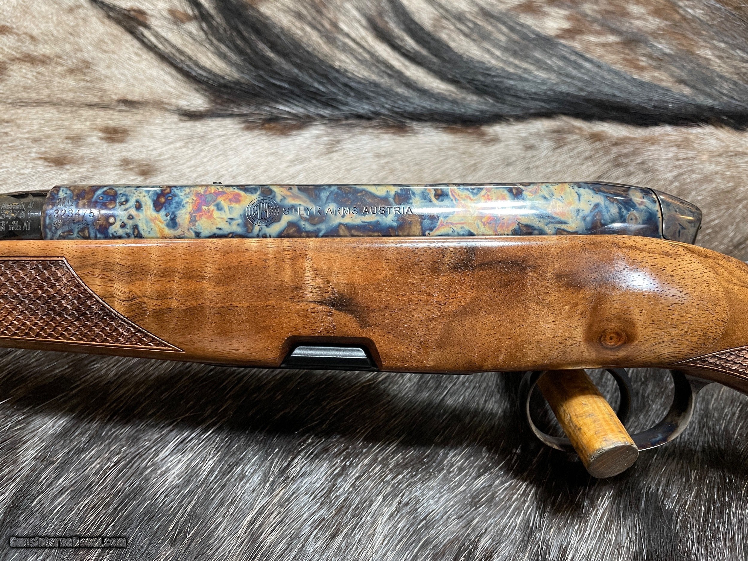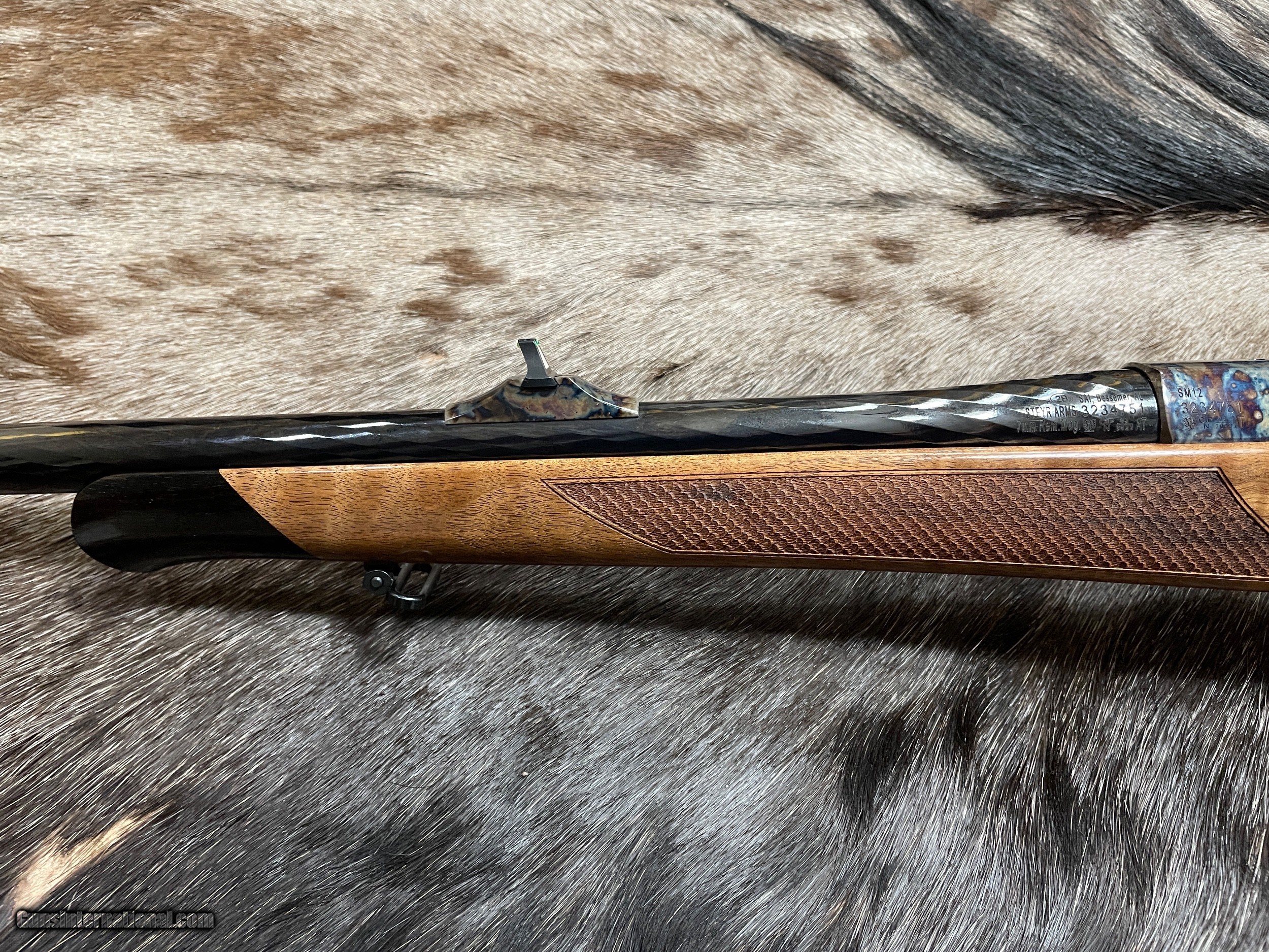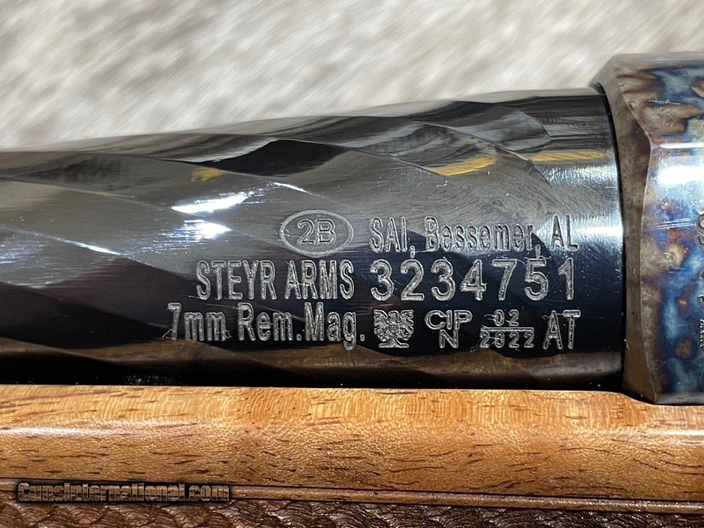 Description: NEW STEYR MANNLICHER CUSTOM SHOP SM 12 "ANTIQUE" RIFLE WITH COLOR CASED METAL, HIGH GLOSS BLUING, AND GORGEOUS WOOD STOCK IN 7MM REMINGTON MAGNUM - LAYAWAY AVAILABLE FREE AFRICAN SAFARI WITH KUCHE SAFARIS (: KUCHE.CO.ZA) INCLUDED WITH THIS RIFLE! SAFARI IS FOR 1-HUNTER / 5-DAYS / 3-ANIMALS (IMPALA, BLESBUCK, WARTHOG). SAFARI IS CUSTOMIZABLE WITH ADDITIONAL DAYS AND ANIMALS AVAILABLE. THE CERTIFICATE IS GOOD FOR 3-YEARS FROM DATE OF PURCHASE AND WILL BE EMAILED TO YOU. NOTE: THE SAFARI IS FREE AND DOES NOT ADD ANY COST TO THE RIFLE. BUY A SCOPE AND RINGS/BASES FROM JD OUTFITTERS AND RECEIVE FREE MOUNTING. Features Of This BEAUTIFUL STEYR MANNLICHER CUSTOM SHOP Rifle Include:
