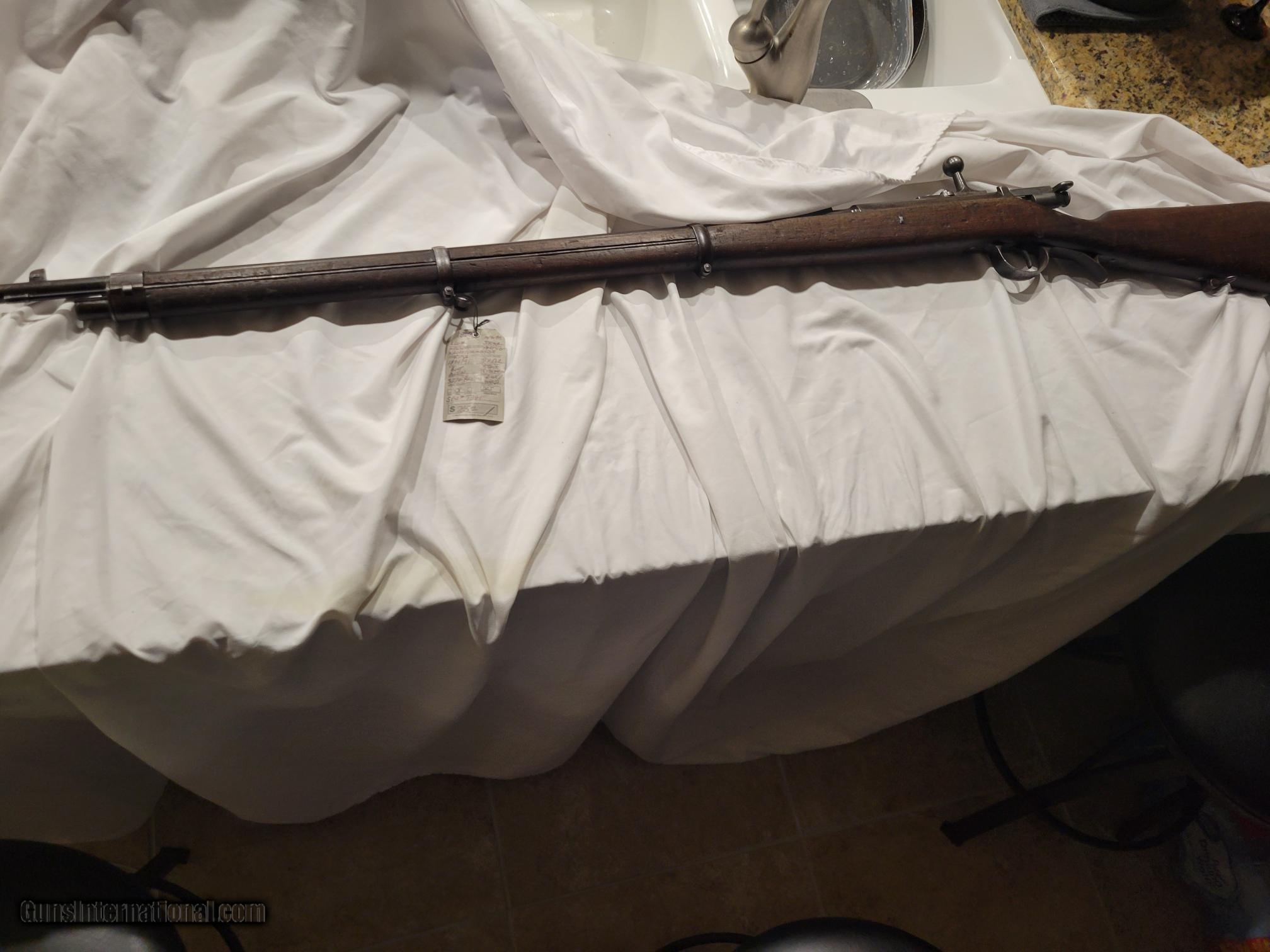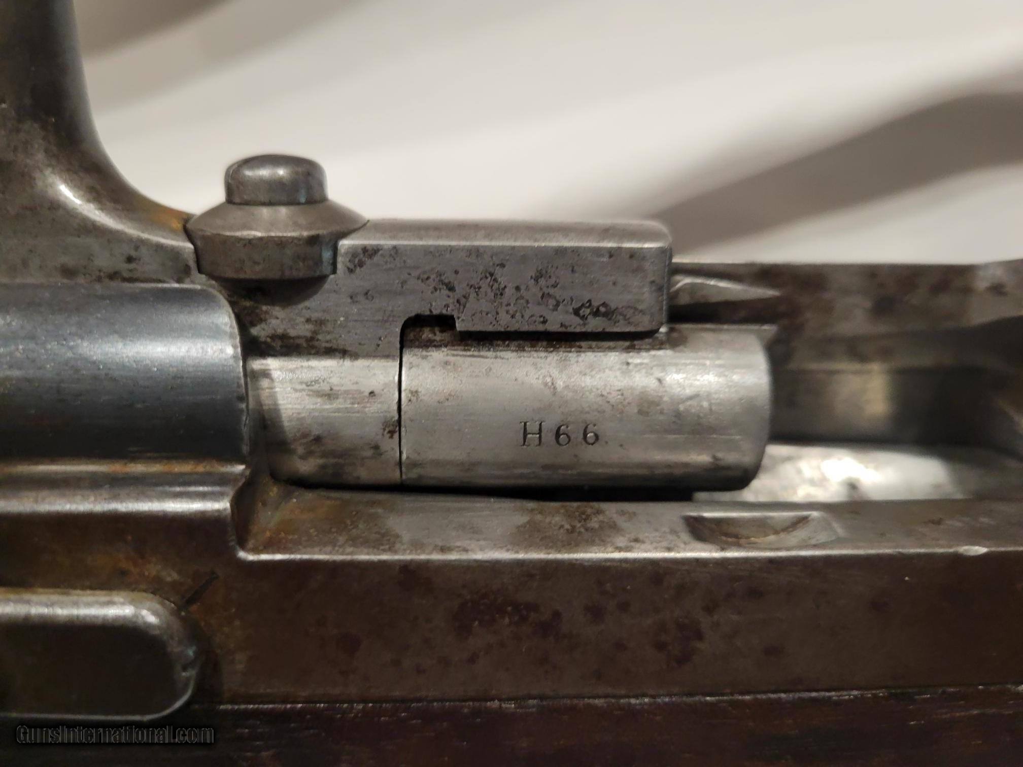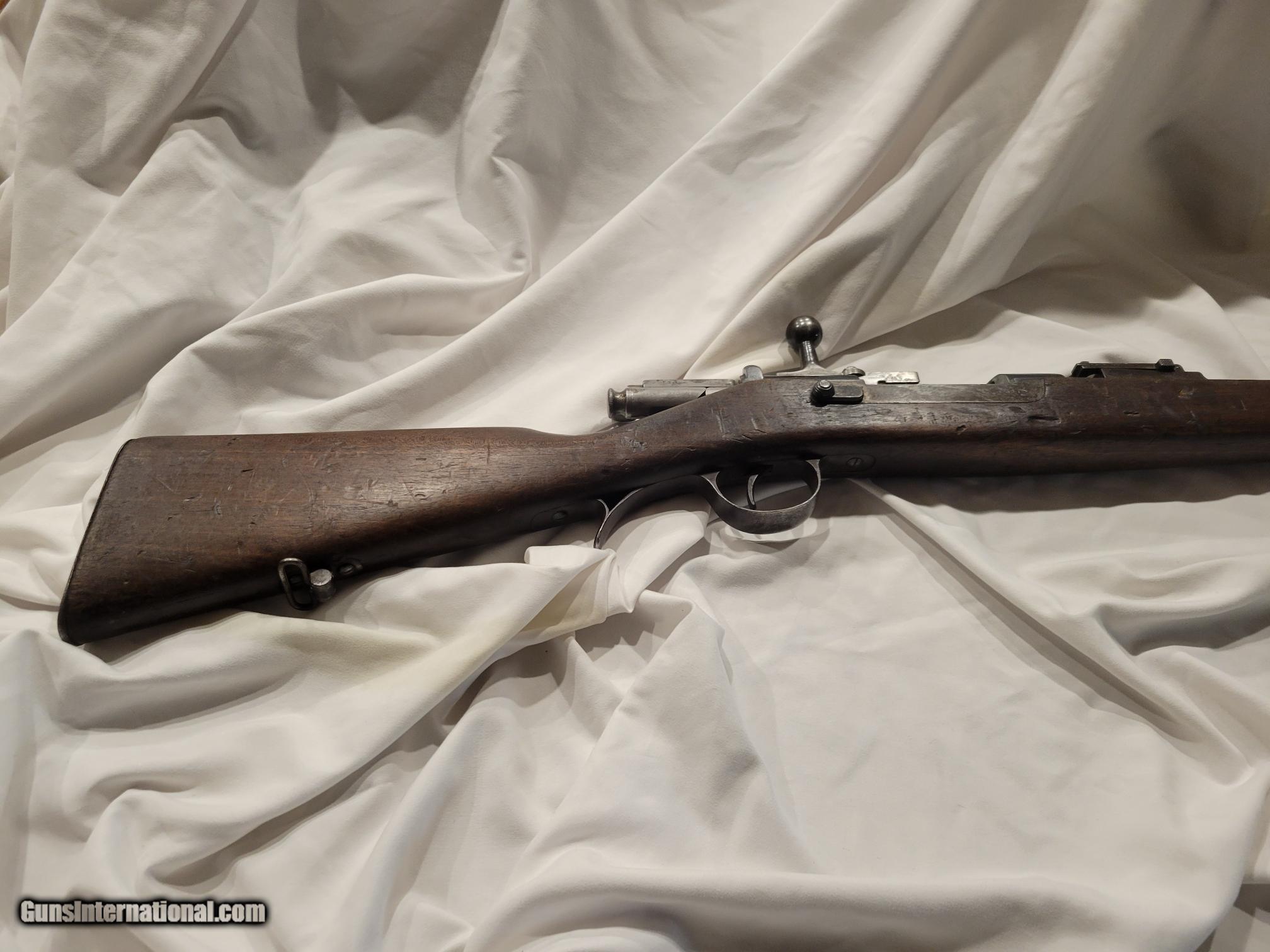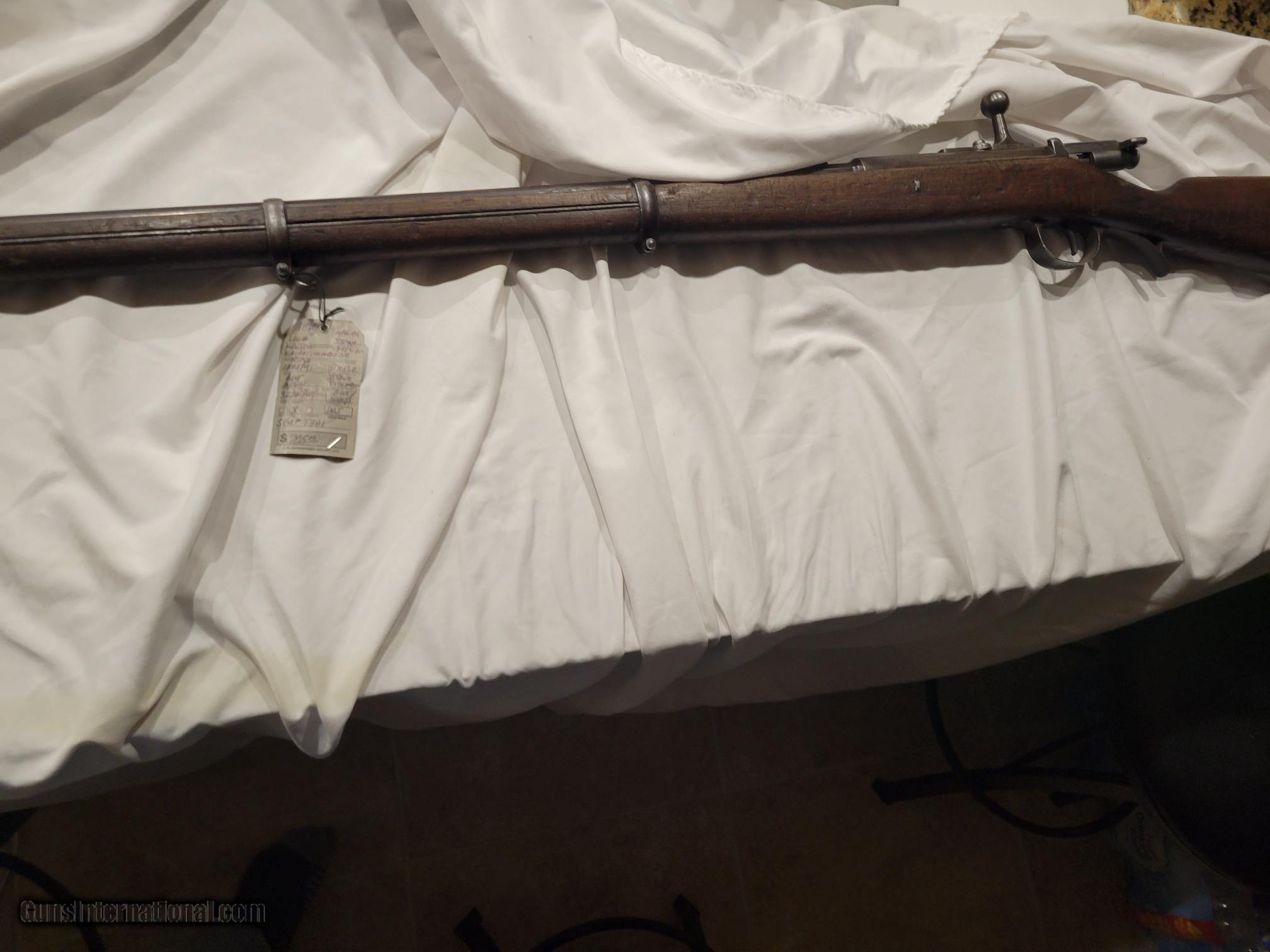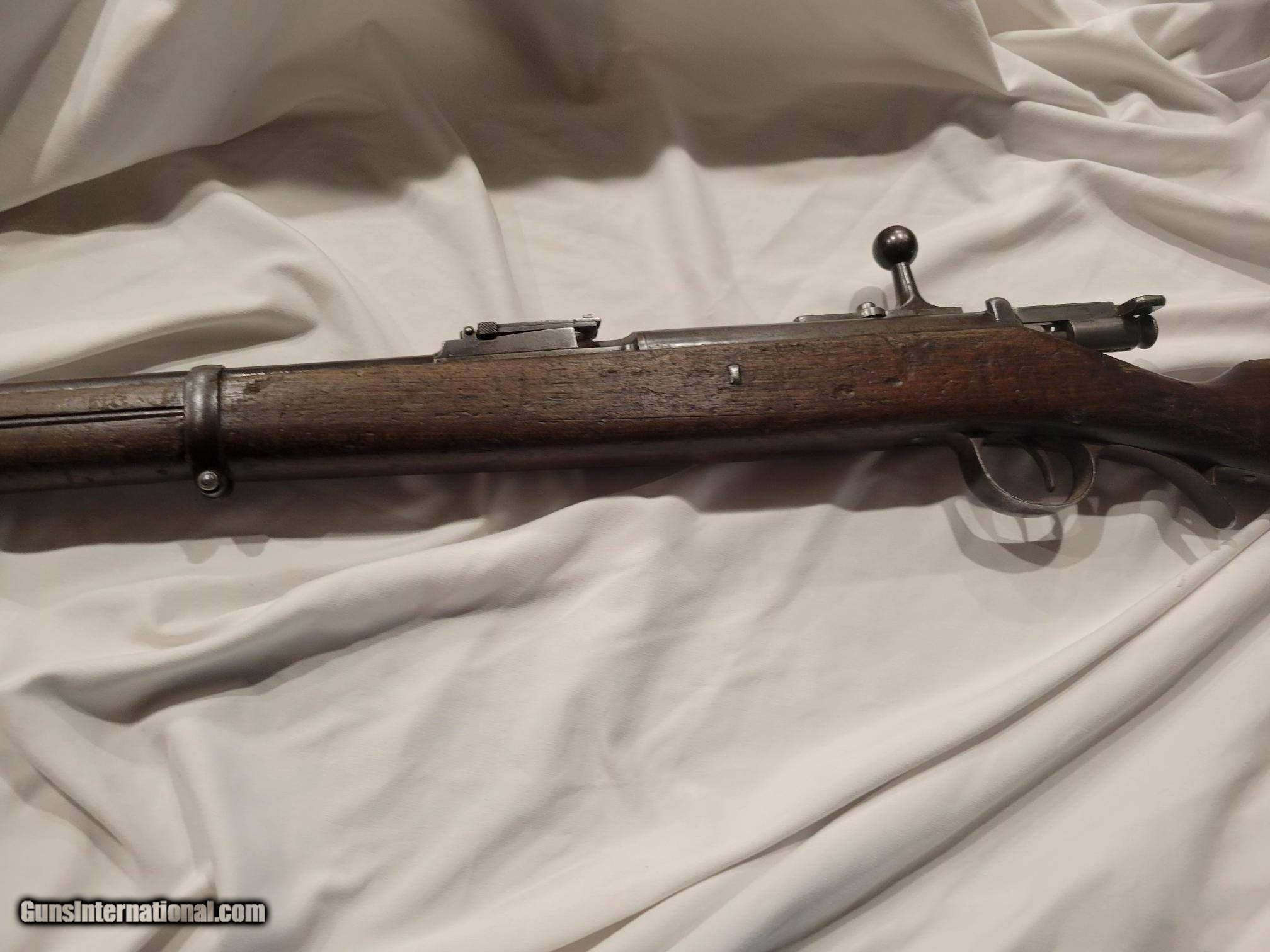 Description: Steyer Portuguese Mauser Rifle 1886-91 Bolt action 8 shot tube mag 32 1/4 barrel I have not shot it, only had it inspected by gunsmith, action seems to function well. I inherited this rifle a few years ago, had it appraised and research done by local FFL. That is the info I have, Buyer pays shipping , according to location, must ship to FFL. I ship rifles USPS, it is legal. Personal check only, once check is received, firearm will be shipped, Guns International advice. Sorry Californians/New York/New Jersey...I will not sell to anyone in these states, too costly. SOLD Antique: Yes Rifle Caliber: 8x56mmR Manufacturer: Steyer Model: Rifle 1886-91 Serial Number: T381 |