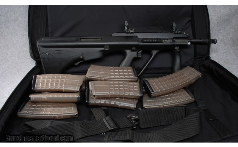 Description: SOLD Caliber Info: 5.56 NATO Metal Condition: Contact and handling marks Bore Condition: Strong rifling Barrels: 16.375-inch chrome-lined CHF barrel (18.375 inches with muzzle brake) Stock: Bull pup Weight: 8 Lbs. Sights: Pop-up adjustable rear peep. Pop-up adjustable front post. Extras: Box, nylon case, 12 extra magazines Item Location: Billings, MT |