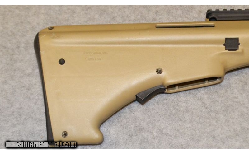 Description: This Steyr AUG A3 M1 is a bullpup-configured semi-automatic rifle chambered in 5.56 NATO with a 30-round magazine. The 16-inch quick disconnect chrome-lined, cold hammer-forged barrel is equipped with a muzzle brake. SOLD Caliber Info: 5.56x45mm / .223 Rem. Chambers: Semi auto bullpup. Metal Condition: Good light scratches. Wood Condition: Good light scratches. Bore Condition: As new in the box. Barrels: 16" quick disconect with break. Triggers: Single trigger. Stock: FDE synthetic. Fore End: Barrel grip. Butt Pad: Black rubber. Weight: 8 Lbs. Sights: Picatinnt rail. Extras: As new in the box with light scratches. Comes with 1- 30 round magazine, box, and manual. Item Location: Acworth, GA |