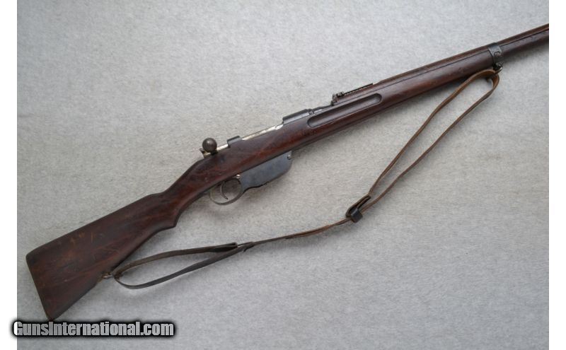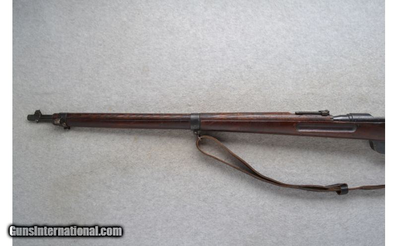 Description: This Styer Arms Model M95 is a right hand bolt action rifle in 8mm Mauser Cal. It has a 30 inch barrel. A blade front and adjustable folding two position notch rear sight. The stock is a smooth walnut pistol grip butt and forearm with finger grooves. It comes with a Bayonet. SOLD Curio/Relic: Yes Manufacturer: S/N 4030L Caliber Info: 8mm Mauser Chambers: Bolt Action 5 round en-bloc clip. Straight pull bolt. Metal Condition: Fair. Blue wear and light rust / freckling. Wood Condition: Fair. Multiple handling marks. Some finish wear. Bore Condition: Very good. Barrels: 30 inches. Stock: Smooth walnut pistol grip. Stock Dimensions: LOP 13 1/4 inches. Fore End: Smooth grip two piece walnut with finger grooves and a barrel band. Butt Pad: Smooth steel. Has light rust. Weight: 8 lbs. 4 oz. Sights: Raised blade front. Numbered sliding adjustable folding two position notch middle. Extras: Comes with a Bayonet and leather sling. Item Location: Richfield, WI |
