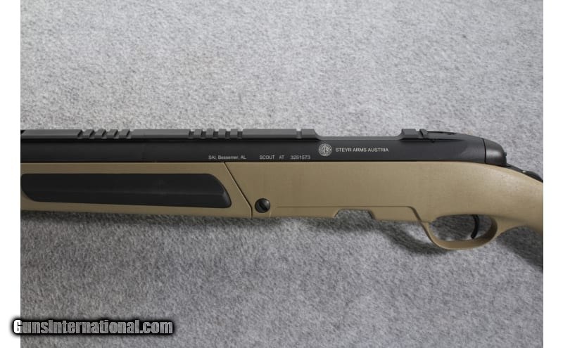 Description: The lightweight bolt-action, all-purpose Steyr Scout rifle was designed to accept a low power, forward mounted scope for accurate fire and both-eyes-open operation, with flip-up iron sights as a backup. With a fluted, cold-hammer forged 19 inch barrel (threaded in 1/2"X20), an overall length of 38.6 inches, and weight of 6.6 pounds, it makes for a compact rifle excelling in long outdoor treks. The synthetic stock has an integrated Bi-pod, UIT accessory rail, fivesling swivel points, and matches with the lightweight receiver and extended weaver rail up top. The Safe Bolt System (SBS) has a 3 position safety for the adjustable trigger and over-sized trigger guard. This firearm usually MSRP's for $2099, but we are happy to present these New firearms for a significant discount at a Special Closeout Price of $1199.99. Limited on-hand, get yours while they are still available. .308 Winchester SOLD Metal Condition: Excellent with light wear Wood Condition: Excellent eith light wear Bore Condition: Bright and Shiny Triggers: Single action bolt Stock Dimensions: 13 1/4 inches LOP Fore End: Synthetic Butt Pad: Rubber Weight: 6 lbs 8 oz Item Location: Gonzales, LA |