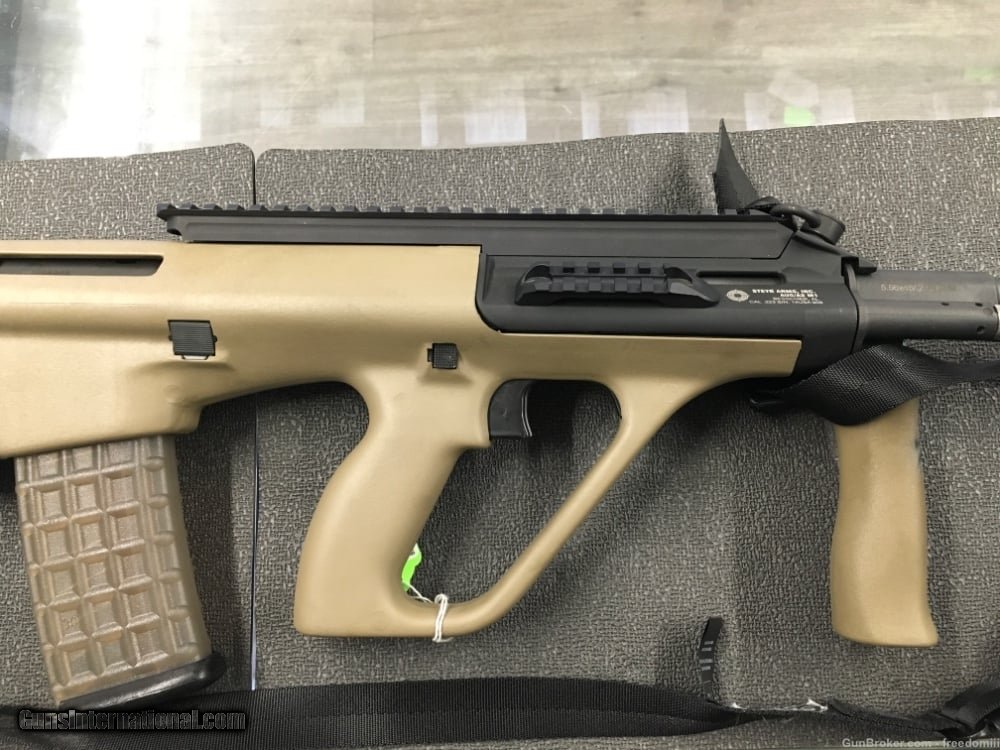Description: Guns Listing ID: 1335123 Included 4 30rd MAGAZINES The iconic Steyr AUG rifle has been one of the most recognizable rifles in the world since its adoption by the Austrian army in 1977 and is now available for civilian use as the Steyr AUG A3 M1. The innovative bullpup design features a compact overall length of only 28 inches, even when equipped with a full length quick detachable 16 inch barrel. The AUG features a short stroke gas piston operating system with an adjustable gas regulator which allows the rifle to run clean and cool, resulting in less wear and tear, even in adverse conditions. The AUG features modular components and is designed for rapid disassembly and ease of maintenance. The barrel assembly is quick detachable and interchangeable with optional 20 inch and 24 inch barrels. The AUG A3 M1 is offered in two basic model variations – Standard or “NATO” Versions. The Standard version uses the original Austrian “waffle” pattern magazines and can be modified to accept an optional left hand bolt assembly to accommodate left hand shooters for left hand case ejection. The “NATO” version accepts AR-15 type magazines but is only suited for right handed shooters. The AUG A3 M1 stock assembly is highly durable synthetic and is available in Black, Green, Mud and White colors. A multiple variety of AUG A3 M1 customized accessories are also available through Steyr Arms. FEATURES Purpose: Target shooting, military & law enforcement, multi-gun competition Magazine type/Standard Version: Clear waffle pattern polymer double-stack detachable magazine/ 30 rounds standard (42-round and 10round magazines available as optional accessories) Magazine Type/NATO Version: (30-round Magpul AR15 style) Receiver material: Hard Eloxal-coated aircraft aluminum Caliber: 5.56x45mm (.223 Remington) Barrel: 16 inch mannox-lined (nitride) Cold Hammer Forged barrel (20 inch and 24 inch available as optional accessories) Rifling: 6 grooves, 1:9 RH Twist Sights: Extended Picatinny rail (optional sight rails and 1.5X and 3X Optics are available as accessories) Safety: Two-position cross bolt Stock type: Synthetic Bullpup – Black, OD Green MUD or White Included accessories: Owner’s manual and one 30-round magazine. SOLD Manufacturer: STEYR Model: AUG A3 M1 Caliber Info: 5.56X45MM NATO Condition: Used - Non-Certified Barrels: 16 BARREL Finish: FDE/BLACK |