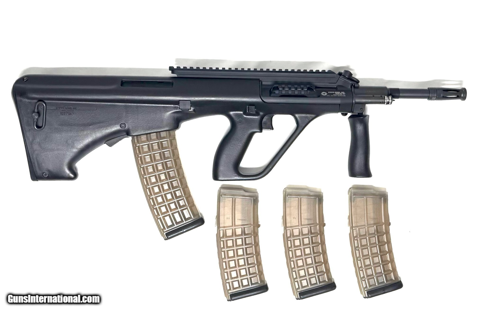 Description: Guns Listing ID: 606004 The Steyr AUG A3 M1 is a modern, modular, bullpup-style semi-automatic rifle, chambered in 5.56x45mm, known for its compact design. The Steyr AUG A3 M1 is a semi-automatic, short-stroke gas-piston rifle built by Steyr Arms (assembled in the U.S. at their Bessemer, Alabama facility). It’s a refreshed take on the iconic AUG bullpup platform, designed for reliability, modularity and compact handling without sacrificing barrel length or accuracy. Come with 3 30-round magazines and 1 42-round magazine. Manufacturer: STEYR Model: AUG A3 M1 Caliber Info: 5.56X45MM NATO Condition: Used - Non-Certified Barrels: 18" BARREL Action: SEMI AUTOMATIC Finish: black Price: $1,899.99 Contact Seller |