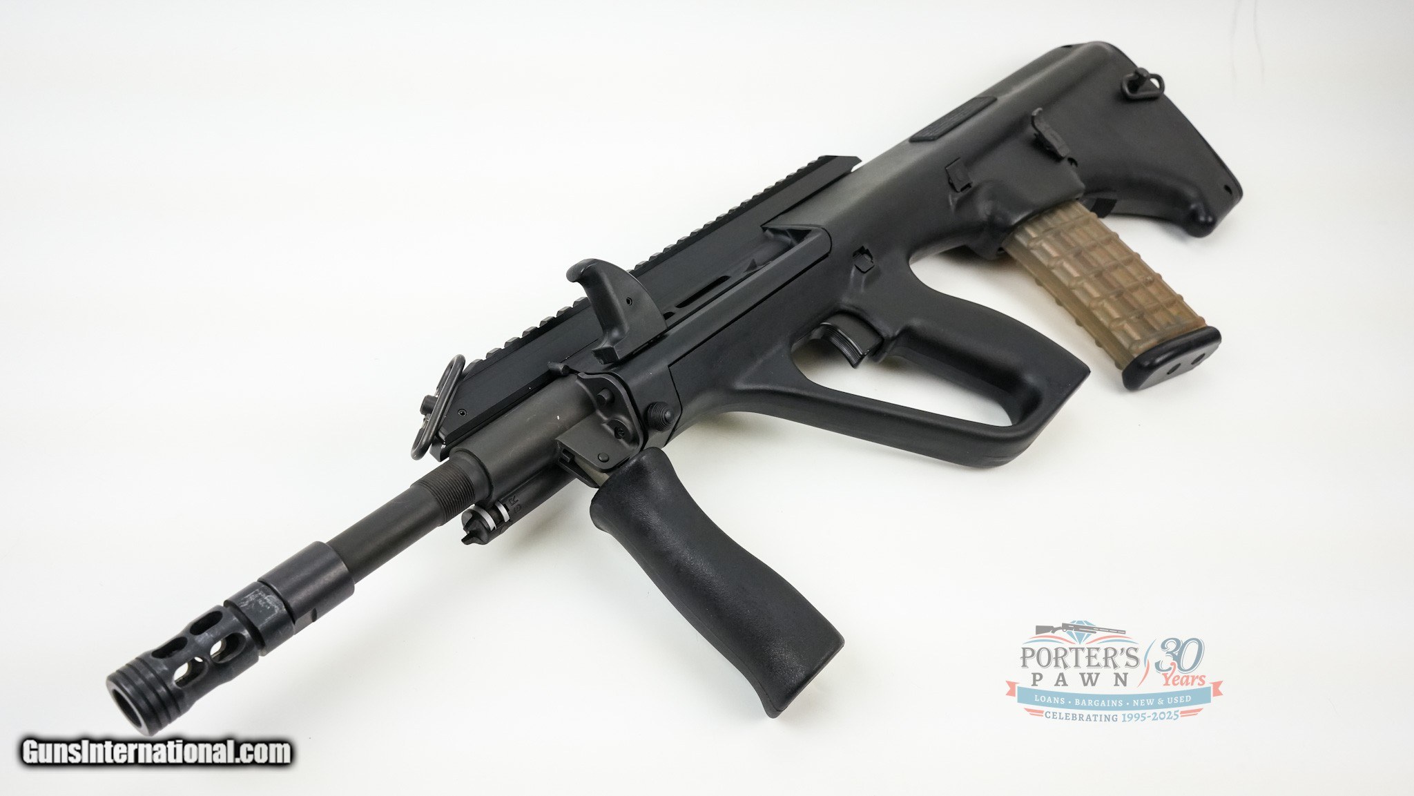 Description: Steyr AUG A3 SA Bullpup Rifle - .223 Remington - 16" Barrel Steyr AUG A3 SA – Austrian Engineering in a Compact, Iconic Platform Offered for sale is a Steyr AUG A3 SA, the semi-automatic rendition of the legendary Austrian bullpup rifle, chambered in .223 Remington. This firearm represents a masterclass in ergonomic and mechanical design, delivering the ballistic performance of a 16" barreled carbine within an exceptionally compact 28-inch overall length. Its advanced bullpup configuration places the action behind the trigger group, resulting in superior balance and handling characteristics unmatched by conventional rifle layouts. This model is chambered specifically for the .223 Remington cartridge. The cold hammer-forged, 16-inch barrel with a 1:9" twist rate is precision-engineered to provide optimal accuracy and longevity with a wide spectrum of commercially available .223 Remington loads. For assured performance and to preserve the rifle's condition, the use of .223 Remington ammunition is specified. The AUG system is renowned for its patented quick-change barrel mechanism, facilitating maintenance or caliber conversion without tools. The receiver is topped with a full-length, integrated MIL-STD-1913 (Picatinny) rail for unwavering optic mounting. Controls are fully ambidextrous, including the magazine release and a reversible non-reciprocating charging handle. This package includes the distinctive 30-round translucent polymer magazine and a protective carrying bag with shoulder strap. Technical Specifications