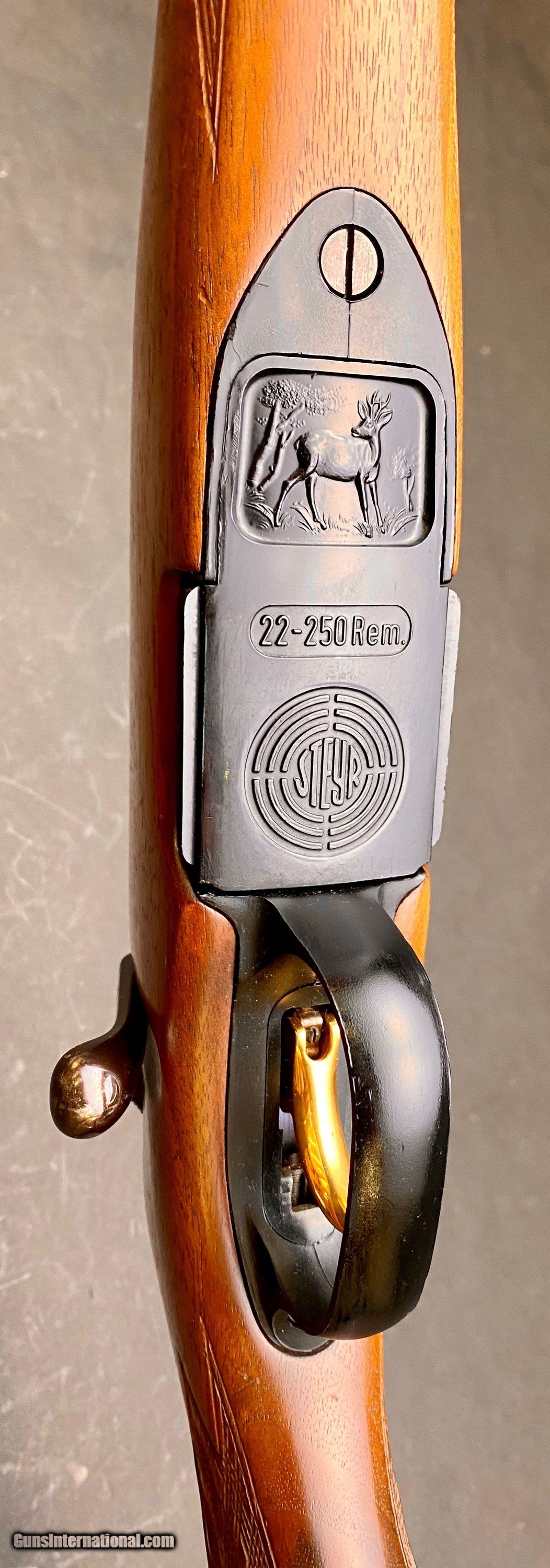 Description: STEYR PUCH MANNLICHER - AUSTRIA MODEL: L CAL: 22-250 20"BBL - CANDY CANE TWIST EXTERIOR ADJUSTABLE GOLD PLATED TRIGGER REMOVABLE MAGAZINE FIXED SIGHTS EUROPEAN SWING DETABLE BASE (EASILY REPLACED WITH STANDARD IF DESIRED) CONDITION: GUN IS IN EXCELLENT OVERALL CONDITION. BORE CLEAR. TRIGGER CRISP. WOOD EXCELLENT. REMOVABLE MAGAZINE HAS MISSING RELEASE ON ONE SIDE BUT DOES NOT EFFECT FUNCTION. NICE GUN! FFL REQUIRED. FOXTROT IS A FFL DEALER. BUYER TO PAY FLAT $50 S/H/I. 4% CREDIT CARD FEE. NO RESERVE SO PLEASENOW! SOLD Manufacturer: STEYR MANNLICHER Model: L Serial Number: 75937 |