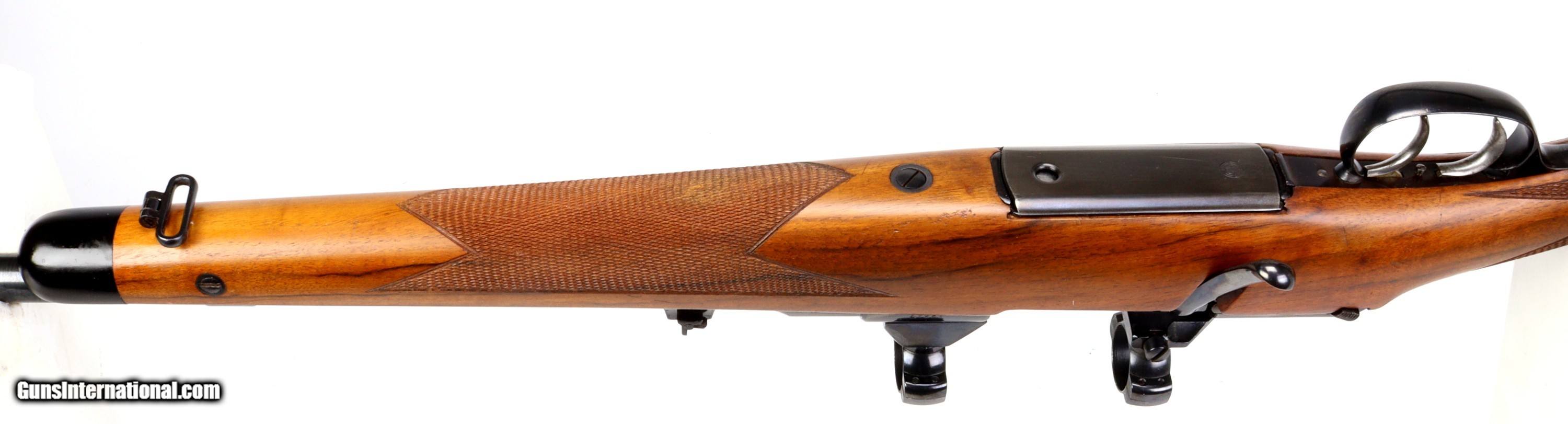 Description: STEYR-DAIMLER-PUCH, Sporting Rifle, 270Win, 23 1/2" Barrel, Fine Bore, Rings, SN#12547, Mfg: 1970's. Beautiful Bore. LOP: 14", Fine Figured Walnut Stock. Weight: 8lbs,2ozs, Double Set Trigger: Set at 8.6ozs. SOLD |
