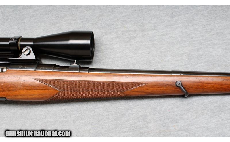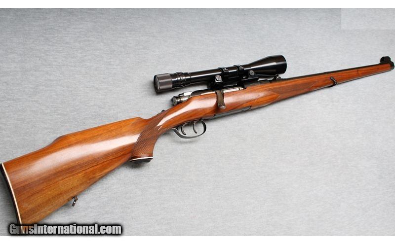 Description: Steyr Mannlicher Model MCA in .30-06 Springfield. The receiver is stamped 'STEYR-DAIMLER-PUCH A. G., STEYR'. It has a blued finish, set-trigger, rotary magazine, and checkered Mannlicher stock with pistol grip cap. The rifle is topped with a Bausch & Lomb Balvar 8A 2.5x8 Rifle Scope in a Kuharsky Bros. mount. .30-06 Springfield SOLD Metal Condition: Excellent Wood Condition: Very Good Bore Condition: Bright Barrels: 20 Inches Triggers: Double set trigger Stock Dimensions: LOP 14 1/2 Inch Fore End: Checkered hardwood Butt Pad: Hard plastic Sights: Bausch & Lomb Balvar 8A 2.5x8 Rifle Scope in a Kuharsky Bros. mount. Item Location: La Vista, NE |