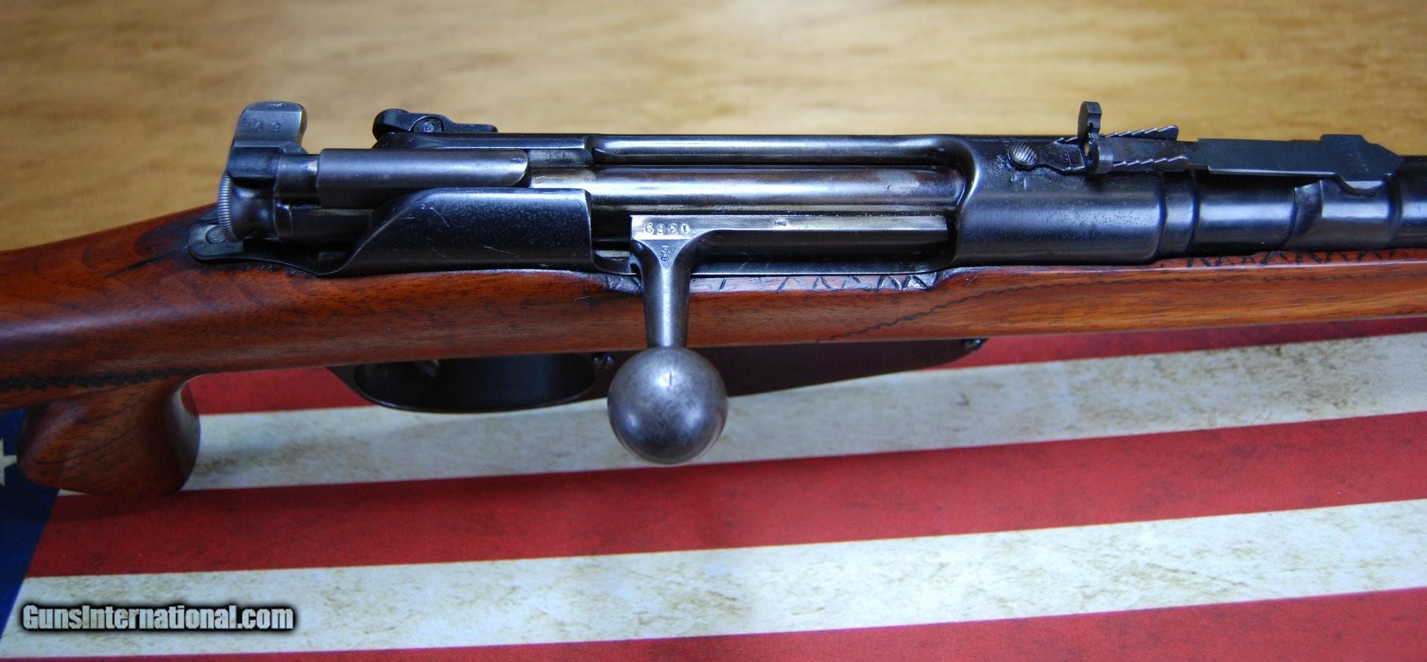Description: Guns Listing ID: 587360 HEMBRUG Dutch M95 Sporterized – 30-40 Krag - 19.5" Barrel – Open Sights This rifle comes to us as a consignment sale. We believe that it was originally a Dutch M95 (also known as a Dutch Mannlicher). We base that on the physical characteristics of the rifle and the “Hembrug 1911" stamp on the left side of the receiver. These rifles were used by the military forces of the Netherlands from 1895 until 1940. They were originally chambered for Dutch 6.5, which is now considered an obsolete caliber. Accordingly, many of these rifles were modified and chambered in a more readily available caliber. The owner of this rifle states that his has been re-chambered for 30-40 Krag. However, the barrel has no stamping so we can’t confirm that. One more note on original versus current configuration. These rifles were loaded from the top, through an open bolt and used a type of en-bloc clip to hold the rounds (think M1 Garand type of en-bloc clip). When empty, the clip would fall through a hole in the base of the magazine housing. Unless you have an en-bloc clip that holds 30-40 Krag, this would essentially be a single shot rifle. The barrel is approximately 19.5 inches and has no stamping on it. The pistol grip stock is likely not the original stock, even accounting for it being sporterized. A WFS ventilated recoil pad sits at the end of the buttstock. The rear sight is also not the original as this one sits further to the rear and the rearmost pin holding it in place covers the serial number on the receiver. The rear sight is adjustable and the front is fixed. The numbers that we’ve located on the rifle appear to match. Matching numbers are located on: receiver, bolt release, safety, bolt handle and trigger guard. The action of the bolt is silky smooth. The trigger has some takeup to a defined wall and then an easy break. The wood is in Very Good condition. The metal finish is also Very Good with no major defects. Overall, this is an interesting sporterized vintage rifle. At this price, it’s a small investment in a rifle with a lot of history. Purchase is for the rifle only. No other items or accessories are included in the sale. This is a consignment sale and, like all of our consignments, we have not test fired this rifle. We have performed our function checks and find no issues to report. As with all pre-owned firearm purchases, please review the photos carefully so that you are completely comfortable with the condition of the rifle. Curio/Relic: Yes Manufacturer: STEYR Model: Hembrug 1911 Caliber Info: .30-40 KRAG Condition: Used - Non-Certified Barrels: 19.5" BARREL Action: BOLT ACTION Finish: blued Price: $359.99 Contact Seller |