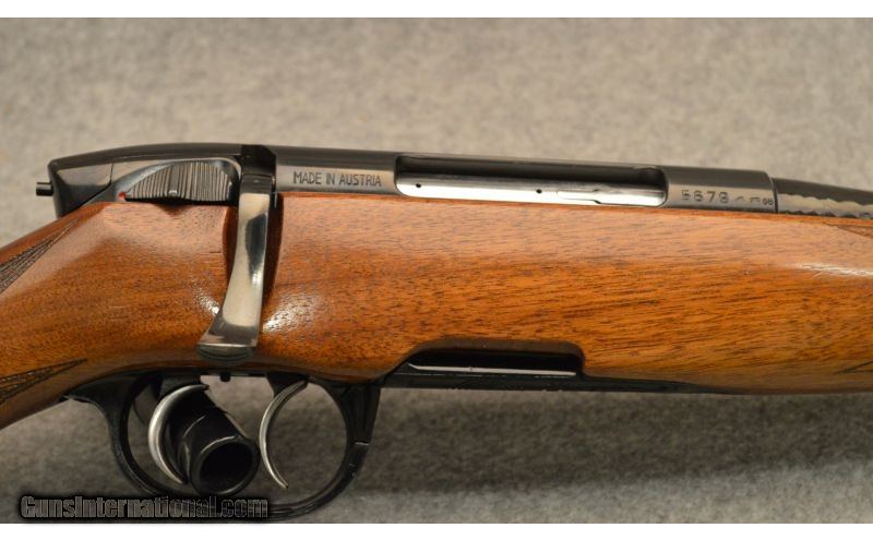 Description: A great Styer Mannlicher Model L chambered in .243 Win. Has a double set trigger for precision shooting. Great condition target, hunting, or collector’s rifle for someone interested in very nice classic Austrian sporting rifles.Firearms are subject to pending sales. • Replies to emails may take 24-72 hours to respond to (excluding weekends). • Although we strive for accuracy, we are not responsible for pictorial, editorial or typographical errors. The pictures provided are the actual pictures of the gun that is for sale, not a stock photo! PUT THE GUN ON YOUR CABELA'S CLUB VISA AND EARN POINTS TOWARDS YOUR NEXT PURCHASE! SOLD Caliber Info: .243 Win Metal Condition: Excellent Wood Condition: Excellent with one minor field mark on underside of stock Bore Condition: Very shiny Barrels: 24 inch Triggers: Double set trigger Stock: Nice walnut with a checkered pistol grip and cheek rest. Stock Dimensions: 14 7/8 inch LOP Fore End: Matching checkered walnut Butt Pad: Black buttplate Weight: 6 lbs 5 ozs Sights: Rear notch and hooded front blade irons, drilled for a scope mount Extras: Comes with the magazine Item Location: Berlin, MA |