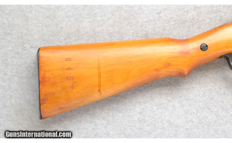 Description: This Steyr Model M.95 is a right hand bolt action rifle in 8x56R Cal. It has a 20 inch barrel. A blade front sight and an adjustable tangent middle sight. The butt stock is a smooth grip hardwood pistol grip. The forearm is a smooth grip hardwood with finger grooves. SOLD Curio/Relic: Yes Metal Condition: Good. Has a little very light freckling. Wood Condition: Good. Some light handling marks. Appears to have been refinished. Bore Condition: Good. Barrels: 20 inch. Stock Dimensions: LOP 13 inches. Fore End: Smooth grip hardwood with finger grooves. Butt Pad: Smooth steel plate. Weight: 7 lb. 2 oz. Sights: Blade front. Adjustable tangent middle. Item Location: Richfield, WI |