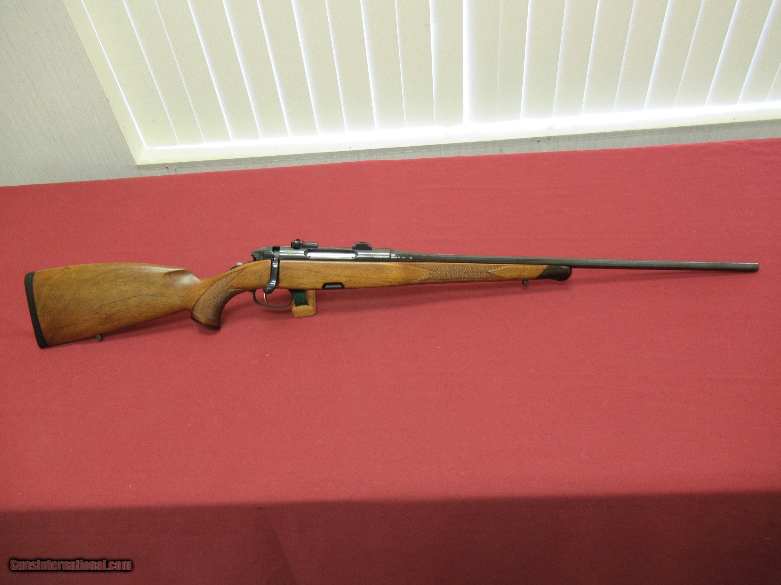 Description: Beautiful Steyr Mannlicher SBS ( Safety Bolt System) European Model chambered in the popular 7MM/08 Remington Caliber. Gun has been proof fired only. Ordered with no iron sights and the hard to find Factory Scope Mounts which will accomodate both Leupold or Redfield Rings. 23.6" Barrel, 4 shot Detachable Magazine, Factory Checkering, Mannlicher Butt-Pad and Walnut Stock with Custom Forend and Pistol Grip Caps. Also the Unique European Cheekpiece. This gun listed for $2795.00 when it was built for three years only from 1997-1999. We have the Owners Manuel but unfortunately, the Original Owners Wife burned all his gun boxes. This is a one owner gun which he never fired. SOLD |