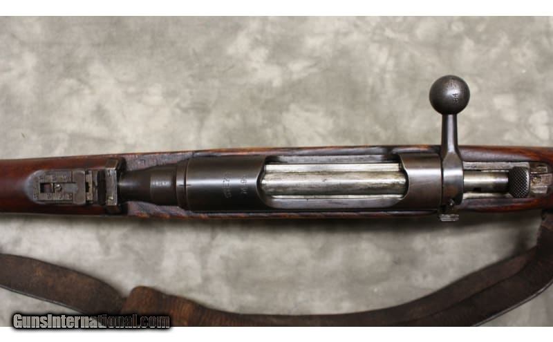 Description: This is a Steyr M95 straight pull action rifle chambered in 8x56mmR. This gun is in great shape the finish has turned to a brown color, has minor rust and pits on trigger guard and magwell. Rifling looks great. All matching numbers. Wood is in good condition. None SOLD Chambers: 8x56mmR Metal Condition: Good Wood Condition: Good Bore Condition: Good Barrels: 19 Inches Triggers: Factory Weight: 6 lbs Sights: Rear folding ladder sight and front post Item Location: Clarksville, IN |