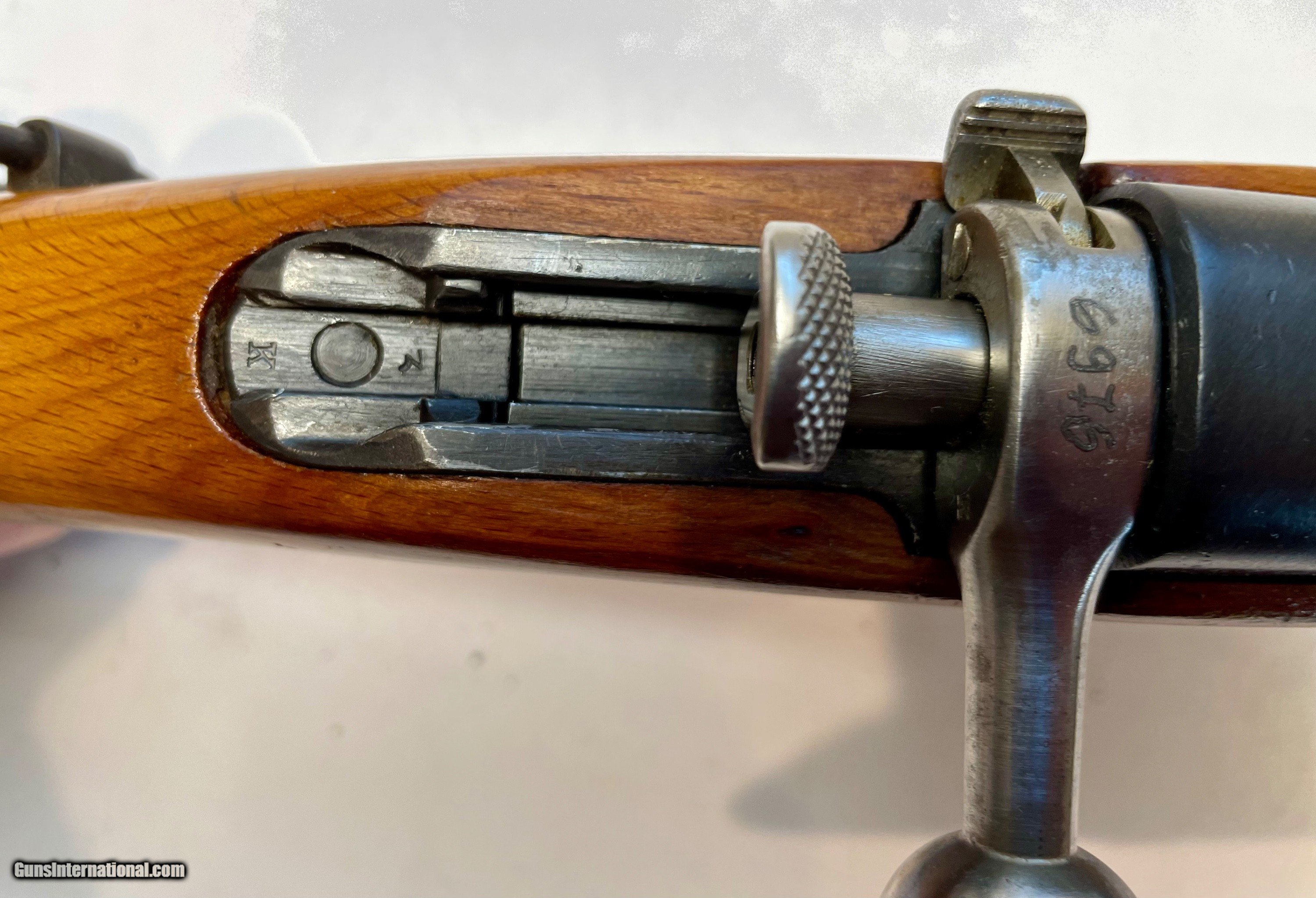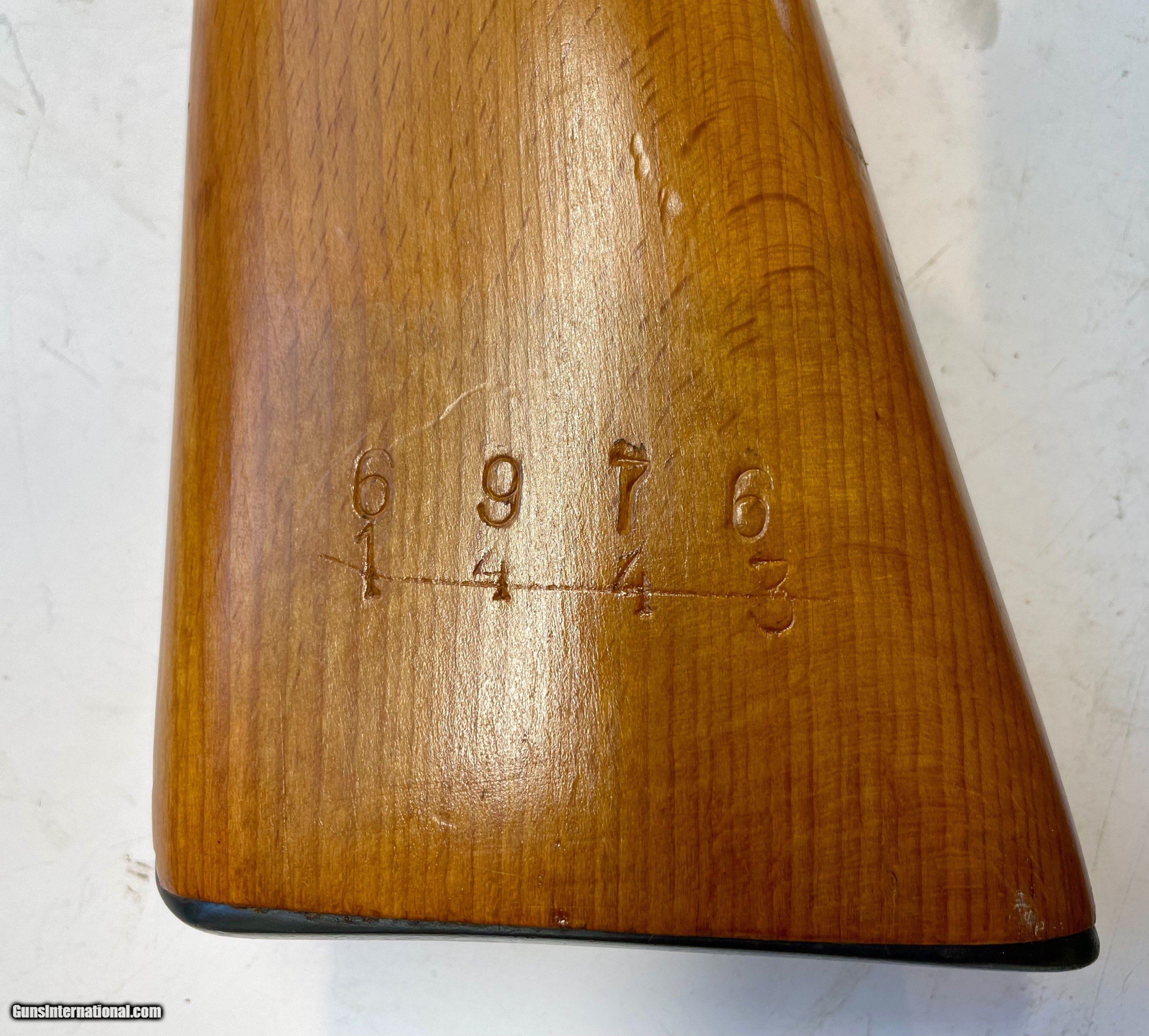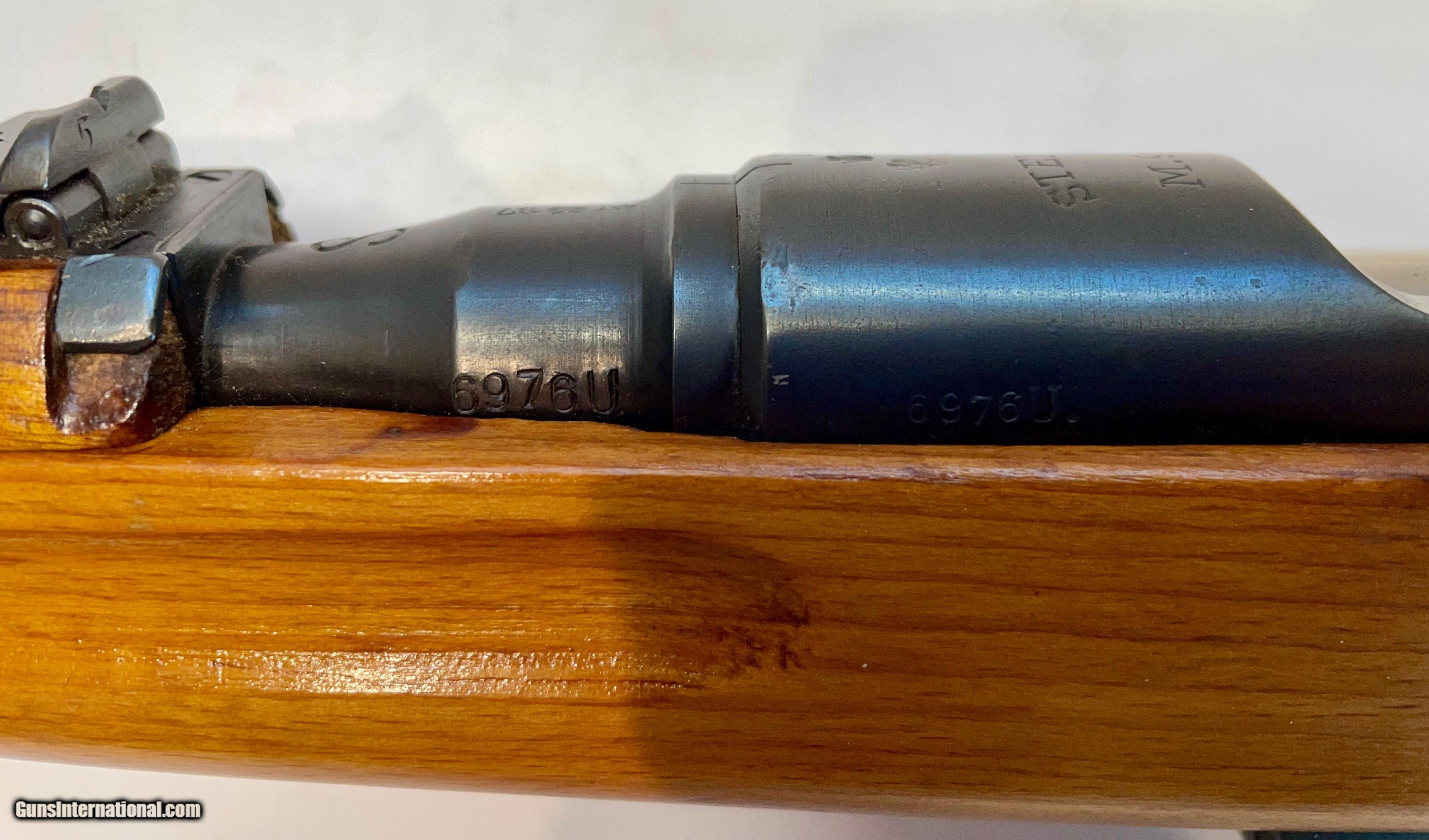 Description: 8x56R 20" barrel that has deep and clear rifling. The numbers are matching, albeit electro-penciled on the bolt, and the stock has been restamped to match. The rear sight is a flip-up ladder style. The barrel shank is stamped with an S. The stock and handguard are in very good condition with only minor indentations. The action, safety, and trigger action properly. Most likely it has been arsenal refinished as the blueing and wood are in excellent condition. Payment can be made electronically or by a USPS money order. SOLD Rifle Caliber: 8x56mmR Serial Number: 6976U |
