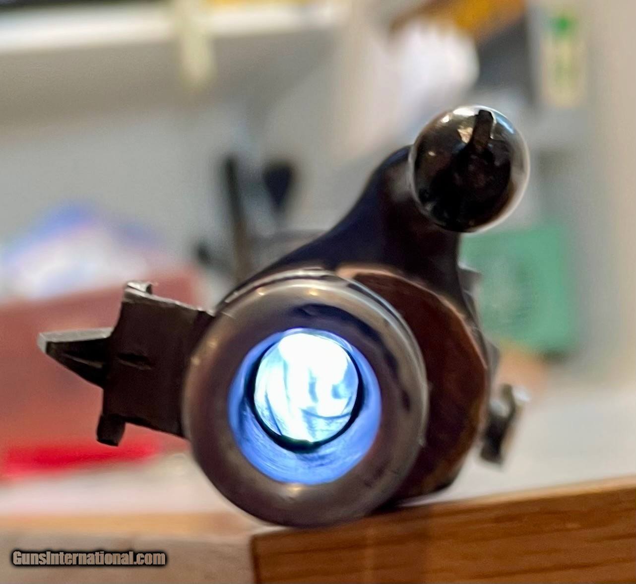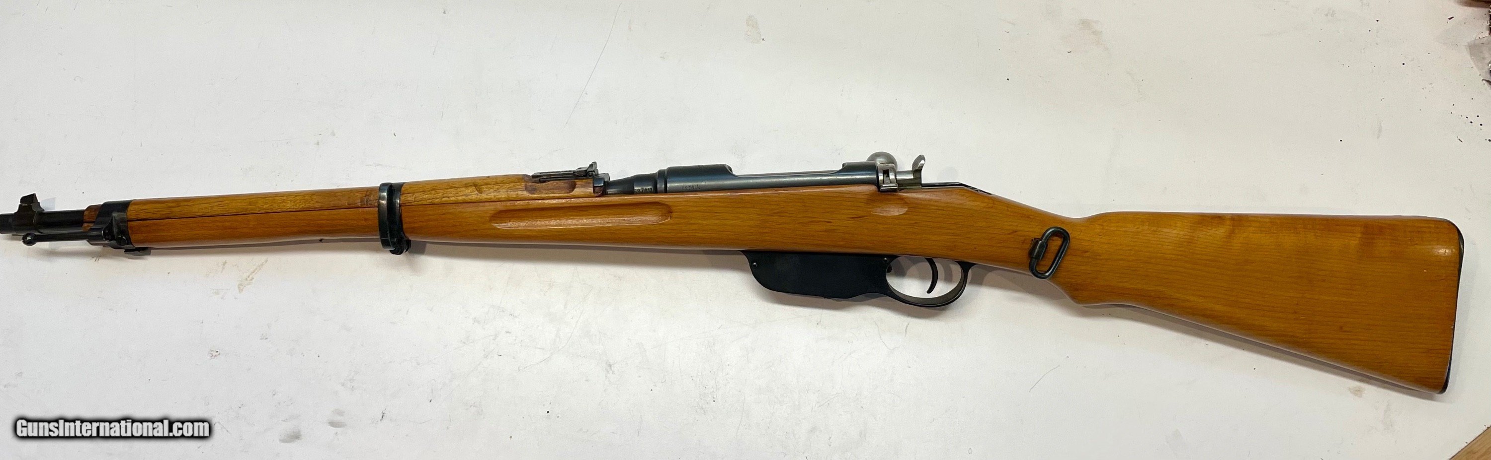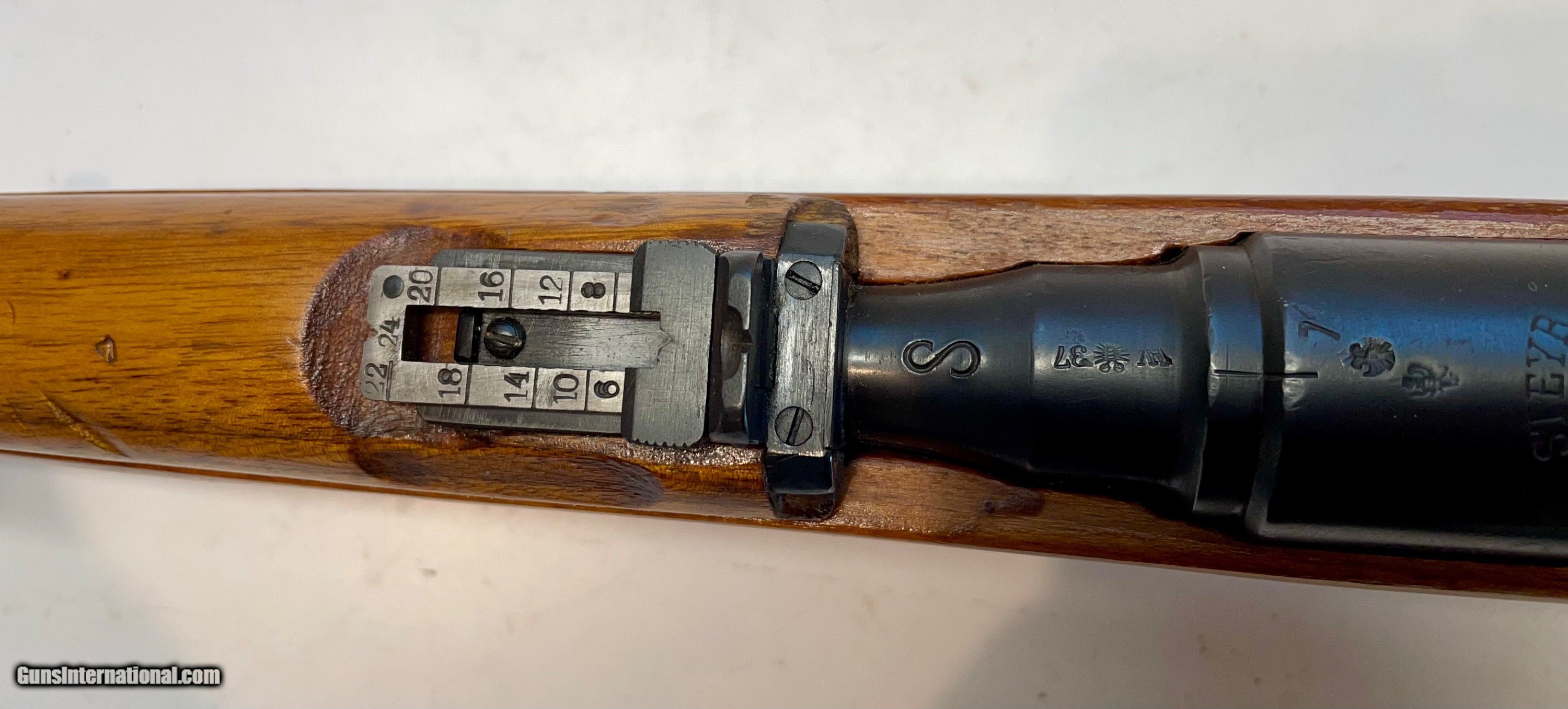 Description: 8x56R 20" barrel that has deep and clear rifling. The numbers are matching, albeit electro-penciled on the bolt, and the stock has been restamped to match. The rear sight is a flip-up ladder style. The barrel shank is stamped with an S. The stock and handguard are in very good condition with only minor indentations. The action, safety, and trigger action properly. Most likely it has been arsenal refinished as the blueing and wood are in excellent condition. Payment can be made electronically or by a USPS money order. SOLD Rifle Caliber: 8x56mmR Serial Number: 6976U |