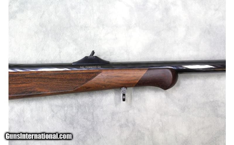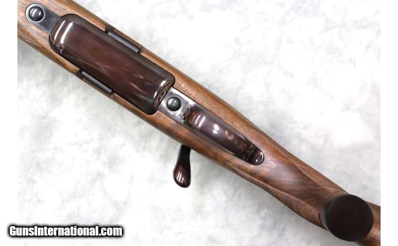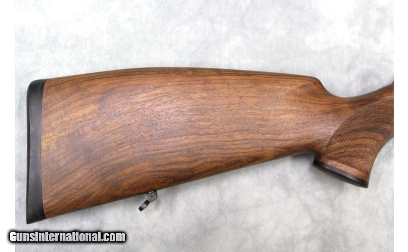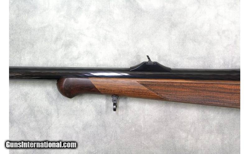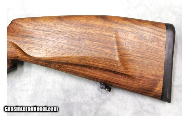 Description: Austrian craftsmanship in a classic Stalking Rifle, from one of the Europe's premier gun makers, the Steyr Arms Luxus are very well-made rifles embodying six rear locking lugs, machine turned finish on the bolt and an elegant spoon handle that falls perfectly to hand and opens in 60 degrees. The barrel carries the characteristic spirals courtesy of the cold hammer forging process – a method that produces incredibly hard-wearing barrels. All the metal surfaces with a few exceptions which are a subtle bead blasted finish carry Steyr's high luster bluing. Nowhere is this finish more alluring than on the candy twist barrel! Complimenting the metal parts, the stock is nicely figured with a rosewood forend cap in the schnabel style, well-placed hand cut checkering cut with a double border. The stock has a characteristically sculptured cheek piece and palm swell overall adding to the rifles overall pleasing proportions. Mechanically the rifle is in top condition with a mirror bore. Standard sights include a spring-loaded adjustable front blade and an express rear sight with luminous pyramid marker. This rifle utilizes Steyr's set trigger whereby one can quickly choose between a standard trigger pull of 1.8lb (for those fleeting shots) and a set trigger activated by simply pushing forward with the index finger; the set trigger is adjustable through a small screw and is set at 2oz, ideal for target shooting or walk in and sit hunts where longer thoughtful shots are more common. The rotary tang safety two position safety, push and roll forward for fire and once used is very intuitive. An excellent example of a classic European hunting rifle with a stylish profile in a sought after caliber, it ticks all the boxes and is ready for any game in North America, it's ready to ship, add it to your collection and enjoy. .300 Winchester Magnum SOLD Metal Condition: Excellent Wood Condition: Excellent Bore Condition: Excellent Barrels: 26 Weight: 8 LBS Sights: Spring-loaded adjustable front blade and an express rear sight with luminous pyramid marker Item Location: Las Vegas, NV |