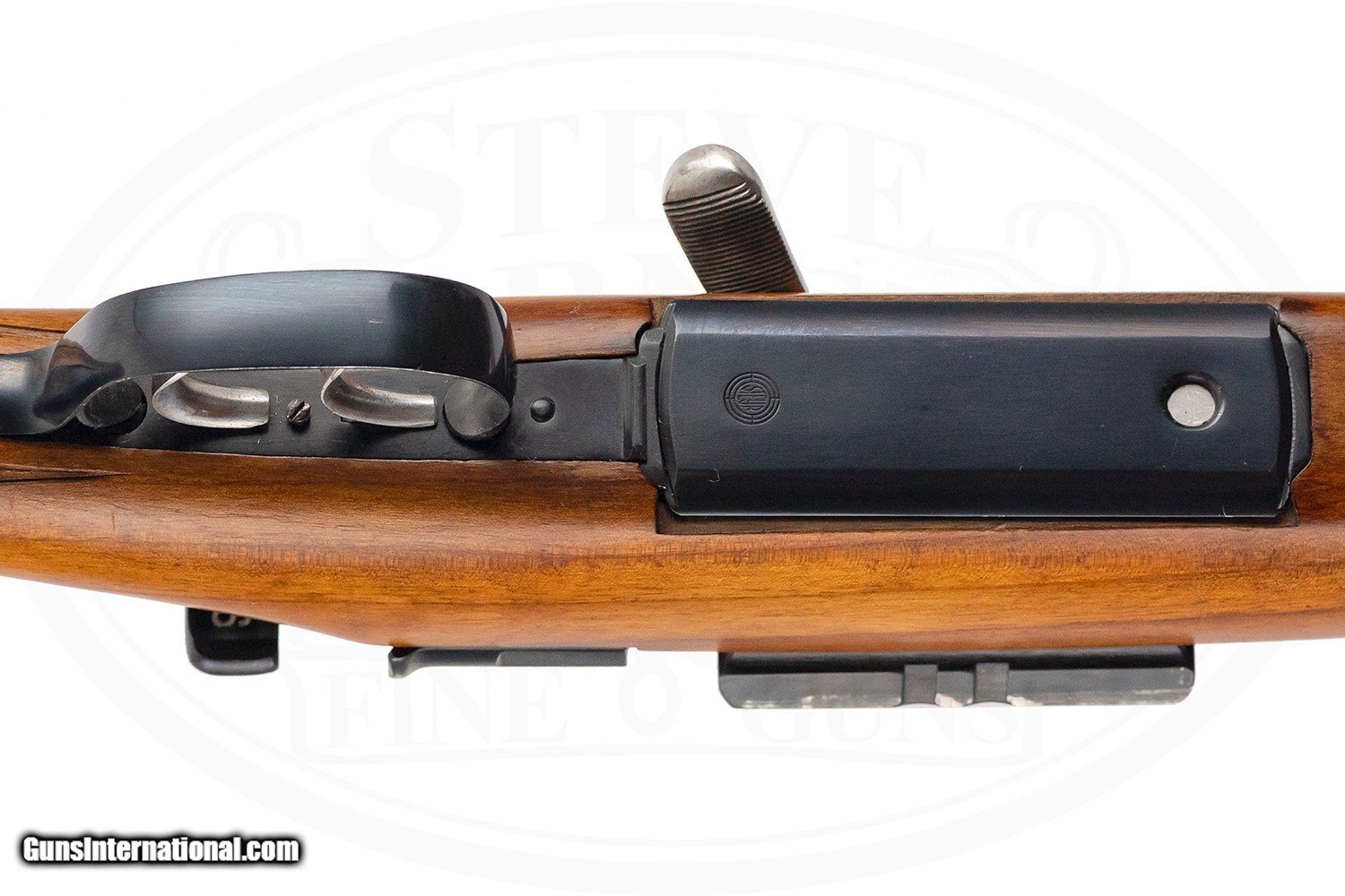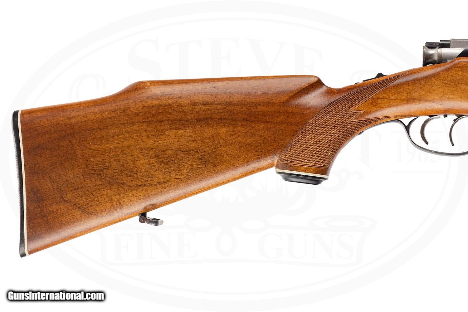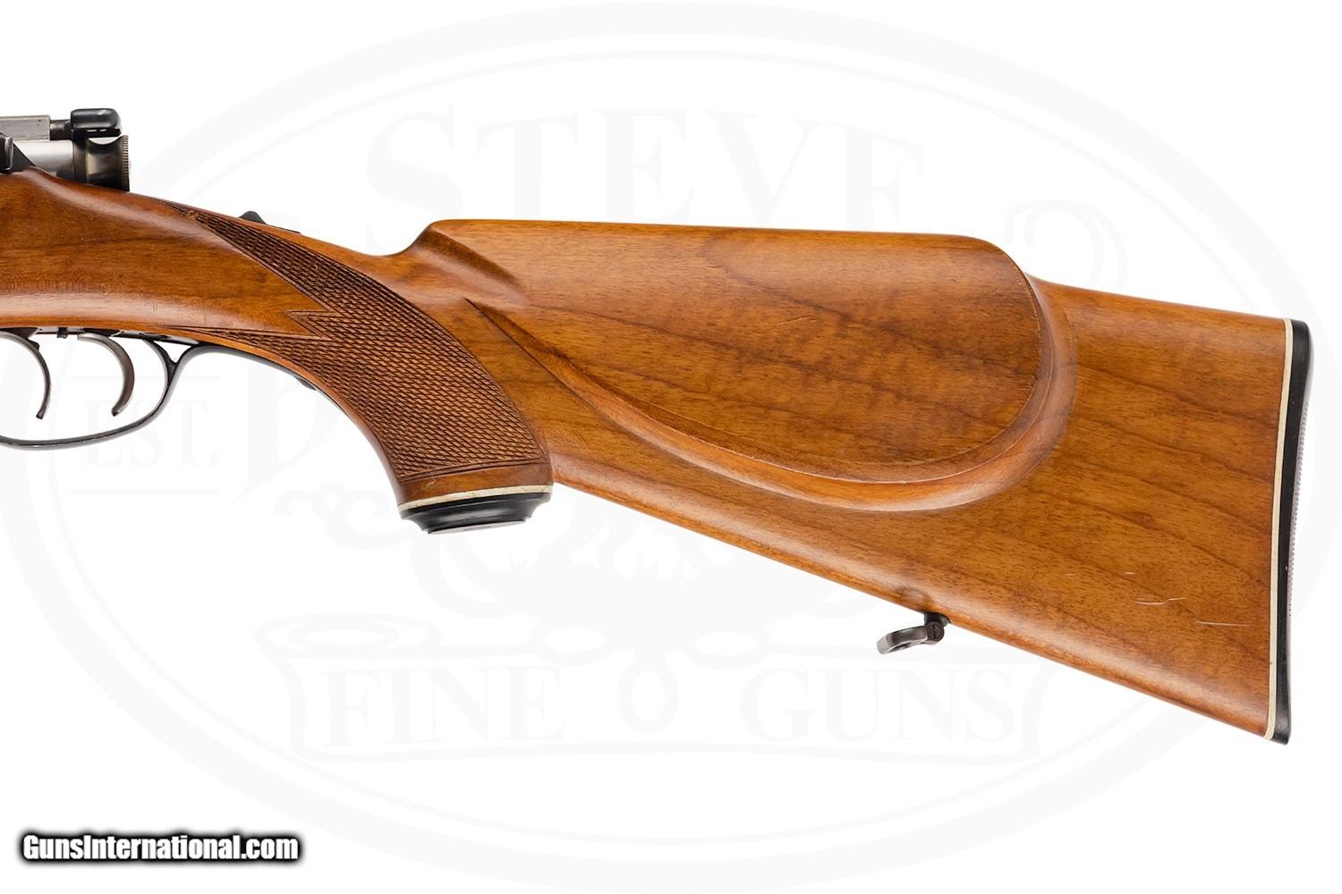 Description: SN# 44XXX MADE 1964 20" BARREL WITH SIGHTS - HOODED FRONT; REAR HAS BLANK GLOSS LEUPOLD 3-9 VARI-X II C SCOPE ON JAEGER SIDE MOUNT DOUBLE SET TRIGGERS STEEL CAPPED PISTOL GRIP CHEEK PIECE SLING SWIVELS WITH SLING BUTT PLATE GUN IS VERY FINE CONDITION WITH SOME LIGHT HANDLING TO WOOD AND METAL FINISHES CONSISTENT WITH STORAGE AND CAREFUL USE 8LBS 8 OZ W/ SCOPE APPRX 7LBS 8 OZ W/OUT SCOPE 14 5/8" LOP FROM FRONT TRIGGER Price: $2,950.00 Buy Now Contact Seller |