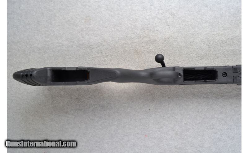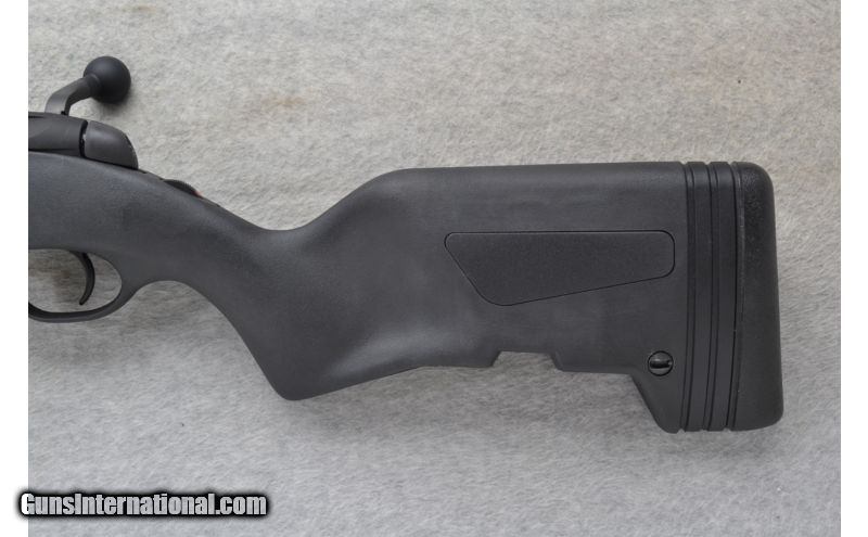 Description: This Steyr Mannlicher Model Scout is a right hand bolt action rifle in .308 Win. Cal. It has a 19 inch fluted matte black barrel with a threaded barrel end. The stock is a lightly textured black polymer pistol grip that has an integral folding bi-pod, bottom integral mounting rail and an extra magazine holder built into the bottom of the buttstock. An oversize bolt handle and fluted bolt. In overall excellent condition it comes as is in a hard case with Owners Manual, barrel cap, sling swivels and two 5 round magazines. .308 Winchester SOLD Caliber Info: .308 Win. Chambers: 5 shot magazine. Metal Condition: Excellent. Wood Condition: Excellent. Barrels: 19 inch matte black. Fluted barrel and threaded barrel end. Stock Dimensions: LOP 13 3/8 inches. Fore End: Lightly textured black polymer with finger grooves. Folding integral bi-pod. Integral accessory mounting rail on the bottom. Butt Pad: Steyr black rubber pad. Sights: Folding integral adjustable front. Folding integral adjustable ghost ring rear. Accessory rail on top. Item Location: Richfield, WI |