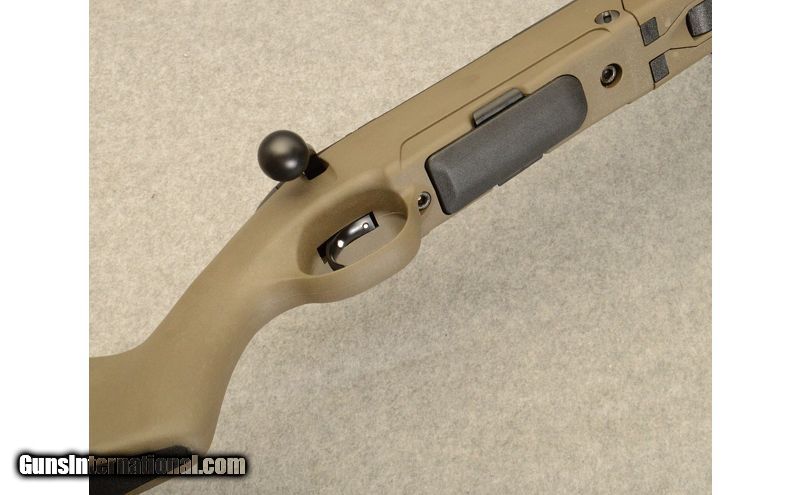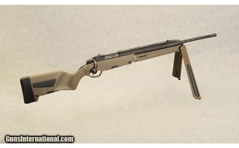 Description: Developed in collaboration with Marine Corps Lt. Col. Jeff Cooper. Features a two-position magazine that allows the rifle to be fed individually with the magazine in a lowered position. Between the bipod legs is a UIT rail for attachments. The stock is outfitted with five press-and-twist sling-swivel attachments points. 6.5mm Creedmoor SOLD Chambers: 2 each 5-round magazines Metal Condition: New Wood Condition: New Barrels: 19" Fluted and threaded Triggers: Single stage, adjustable, with three position safety Stock Dimensions: 13 1/4" LOP with spacers Fore End: Grip panels with integrated bipod Butt Pad: Elastomer adjustable recoil pad Sights: Flip-up ghost ring sights and integral picatinny rail Item Location: Garner, NC |
