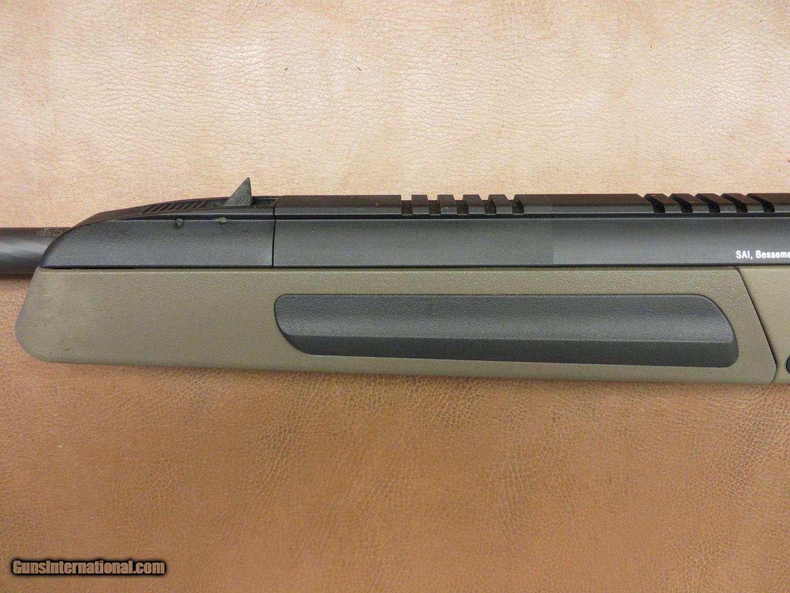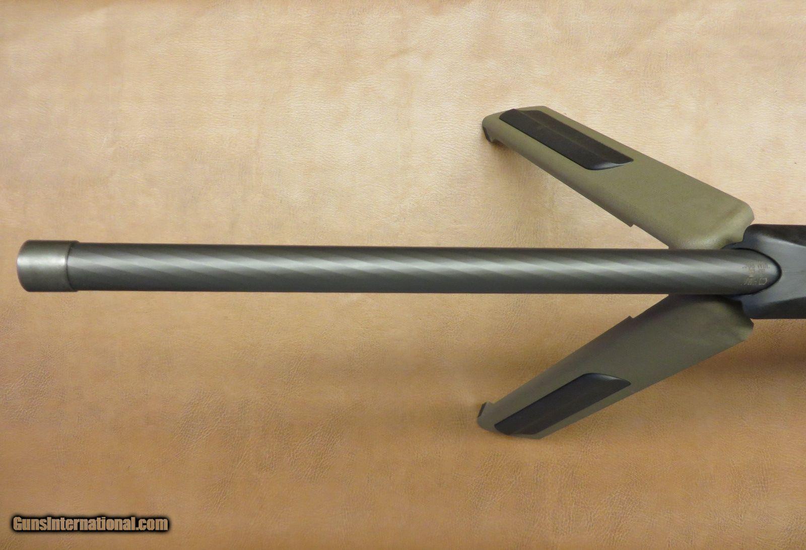Description: .308 Winchester 22 inch barrel has threaded muzzle with thread protecting cap. Integral scope mounting base and flip up sights. Green synthetic stock has multiple sling mounting points, integral bipod, and rubber but pad with spacers for length of pull. Detachable magazine with spare stored in stock. Unfired but no box or papers. SOLD |