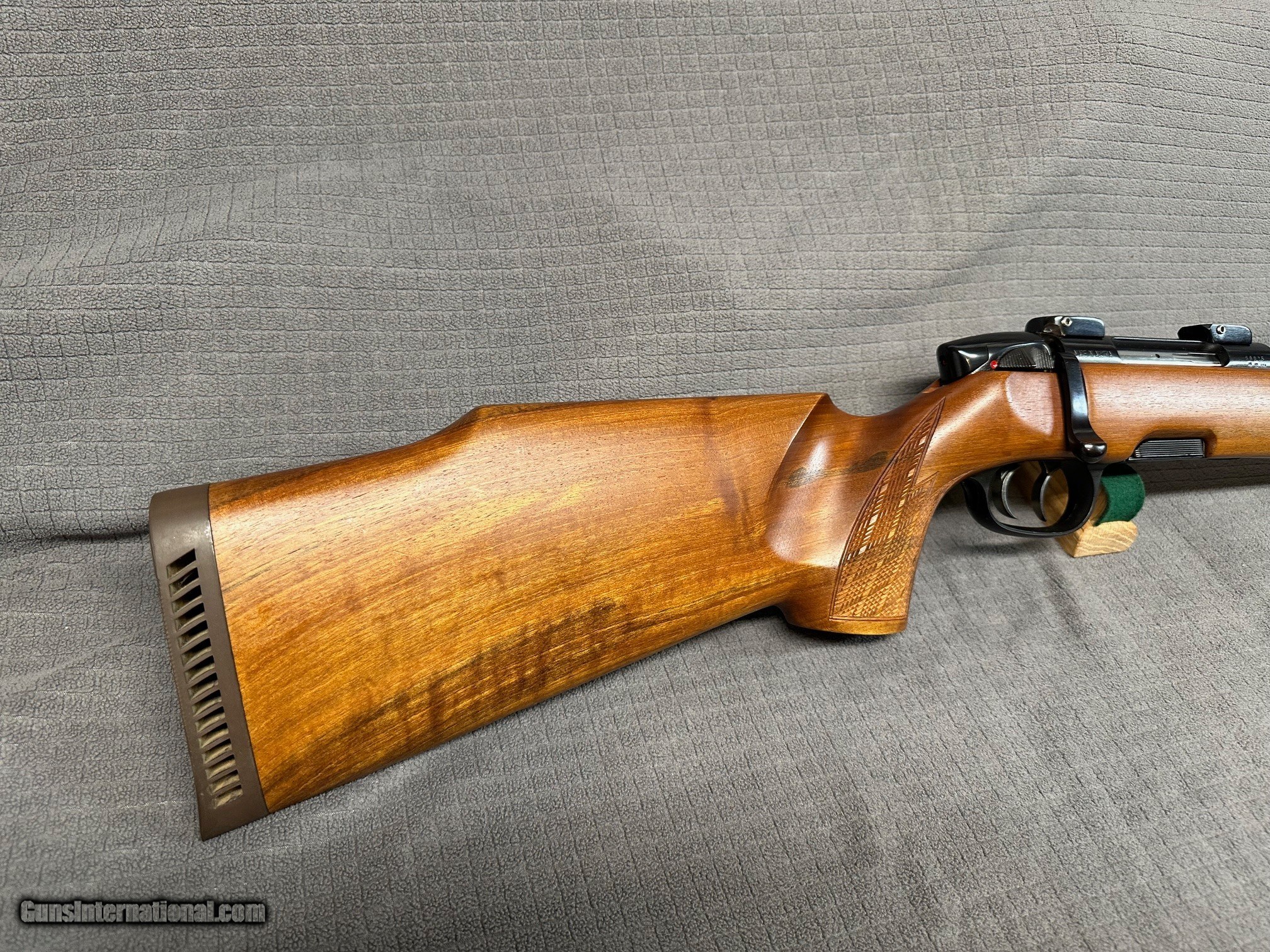 Description: ABSOLUTELY LIKE NEW STEYR Model L VARMINT in .243 Winchester. SAFE QUEEN from the 70's. IF FIRED, very few. All original. Blueing 100%. Wood 99% due to a few light handling marks. 25.6" Hammer forged varmint barrel. Double set triggers. Conetrol projectionless rings and bases. Benchrest style stock with cheekpiece. Legendary STEYR quality. Should be a tack driver. $75.00 Shipping & Insurance to your FFL(lower 48). NO CA Sales. Thanks for looking. SOLD |