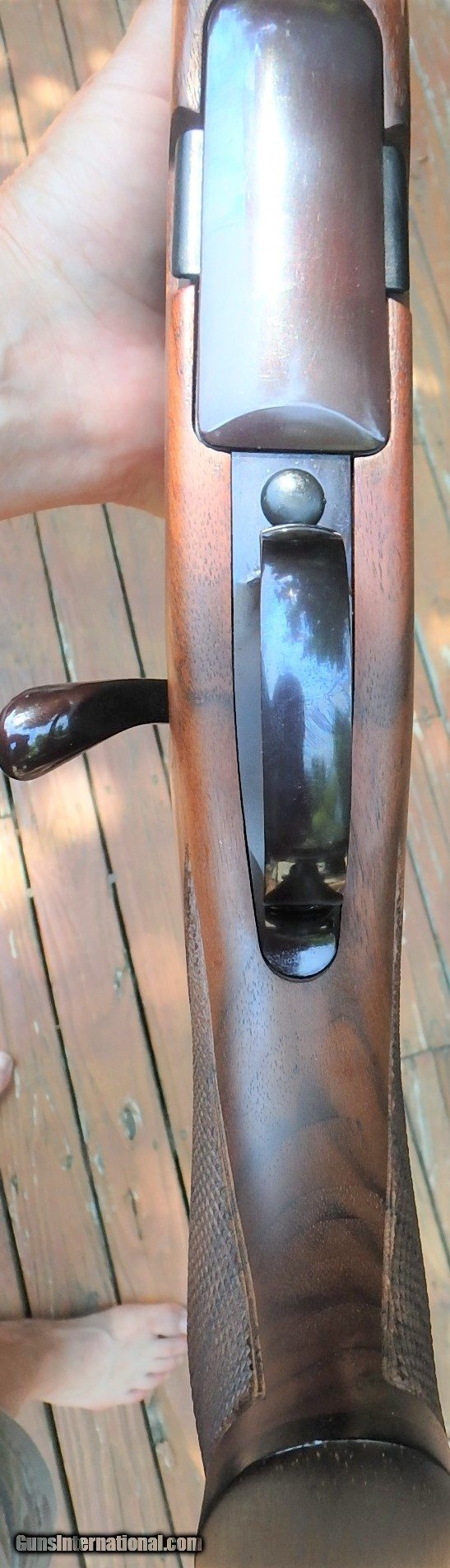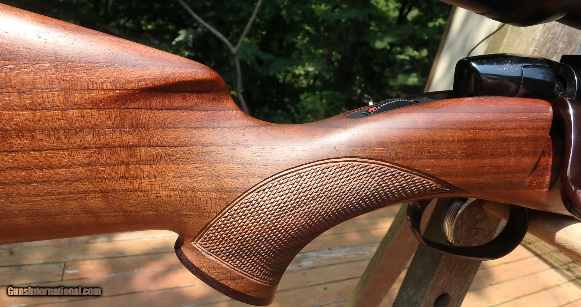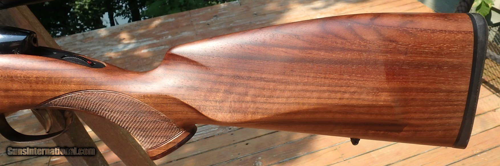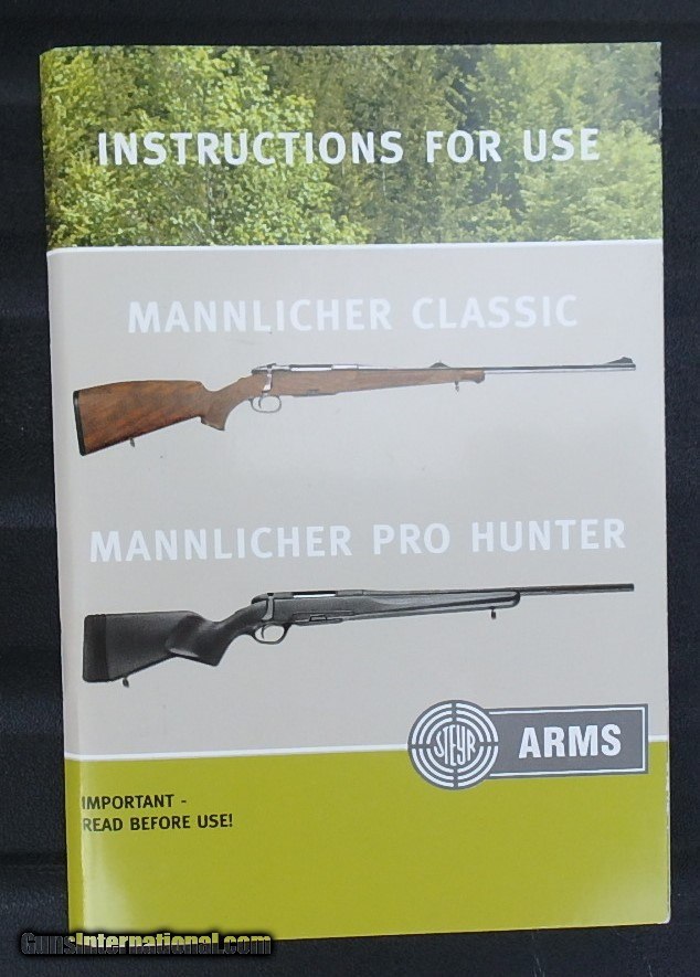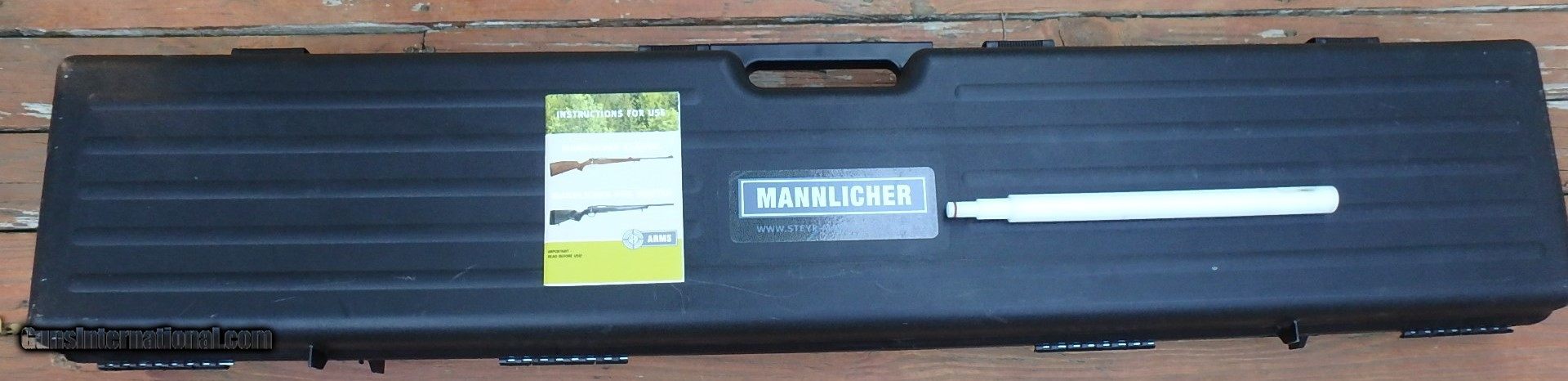 Description: I cannot determine the exact model of this rifle. But, it is a beauty. Oil finish on stock. The "blue" looks like hard, black factory chrome. Darkest finish I've ever seen on a rifle. 23" hammer forged barrel with the classic external Steyr twist visible the full length. Bore pristine. Some handling marks on the wood. 14.5" LOP. Four shot magazine with metal bottom plate. Bolt feels like it is on roller bearings it is so smooth. Custom chamber cleaning rod guide. Factory manual and factory hard case with Mannlicher logo. The rifle is being sold without the Kahles scope. Talley ring system is included with the rifle. Check with your dealer to see if he will accept the rifle from a non FFL holder. If not, my dealer charges me $20 to run it through his book. Shipping will be $40 east of the Mississippi and $50 west of it. SOLD Rifle Caliber: .243 Winchester Manufacturer: Steyr Metal Condition: Perfect Wood Condition: Good Bore Condition: Pristine LOP: 14.5 Sights: none |