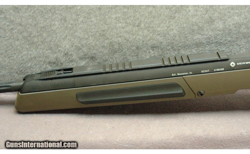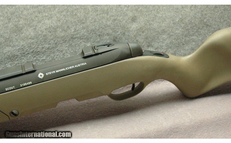 Description: Steyr ScoutRifle .308 Win. As new condition, with 2 mags, hard case and box. Steyrs example of Col Jeff Cooper's "Scout" rifle concept. Short, light and handy, a good choice for hunting many North American game animals. .308 Winchester SOLD Metal Condition: Appears As New Wood Condition: Stock Appears As New Barrels: 19" Fluted Threaded Barrel Triggers: Factory Trigger Stock Dimensions: 13 1/4" LOP Fore End: Synthetic with Integral Bipod Butt Pad: Factory Recoil Pad with Spacers Sights: Flip Up Iron Sights and Receiver Rails for Scope Mounting Item Location: La Vista, NE |