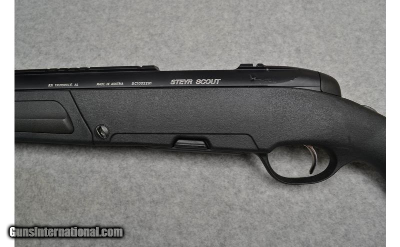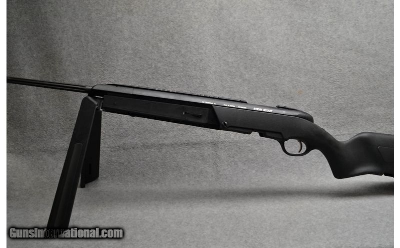 Description: The Steyr Scout provides the ideal solution for versatility, durability, accuracy and reliability in a compact and lightweight bolt action rifle. The fold-away integrated bipod and integrated spare magazine make the Scout easily carried in a rifle scabbard for use on horseback, ATV or vehicle rifle rack. .308 Winchester SOLD Chambers: 5+1 Metal Condition: No scratches. Barrels: 19" fluted with sights. Triggers: "Single trigger, bolt action. Stock Dimensions: 13 1/2" LOP Fore End: Synthetic Butt Pad: Rubber Weight: 7 lbs Sights: Folding blade front with folding rear ghost ring. Item Location: Columbus, OH |