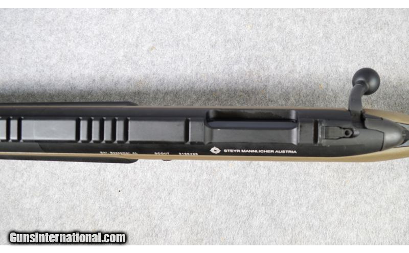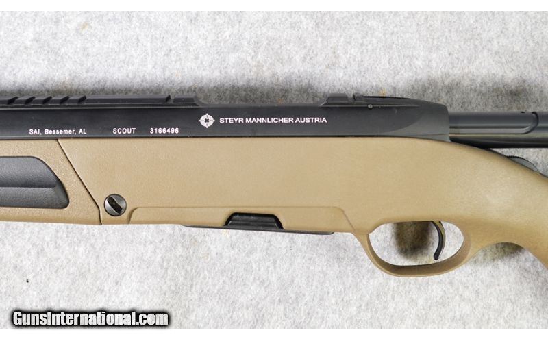 Description: Designed to Jeff Cooper's specifications, the Steyr Scout is the benchmark that all other Scout Rifles base themselves on. This particular example is in excellent condition and ready for your next foray out into the frontier. Comes complete with two magazines and factory box. 7.62X51mm Nato SOLD Metal Condition: Excellent Barrels: 19"" Fluted, Threaded Fore End: Integral Bipod Butt Pad: Factory Steyr Rubber Butt Pad Sights: Integral Flip-up Iron Sights Item Location: short pump |