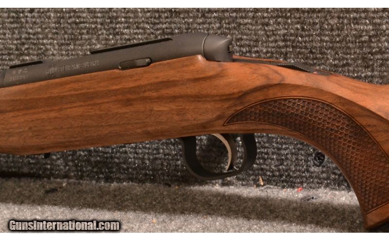 Description: This Steyr is in excellent shape with no marks or wear on the bluing or wood. It features a cold hammer-forged threaded 19.7-inch barrel with a Mannox finish; European walnut stock with a Bavarian cheek piece, schnabel forend and fish-scale pattern checke .22 MAG SOLD Chambers: Bolt action repeater. Metal Condition: Excellent no marks. Wood Condition: Excellent no marks. Barrels: 19.7 inch tapered threaded blued. Triggers: Blue steel. Stock Dimensions: LOP: 13 inch. Fore End: Schnabel checkered walnut with swivel studs and swivels. Butt Pad: Black rubber. Sights: Drilled & tapped. Item Location: Thornton, CO |