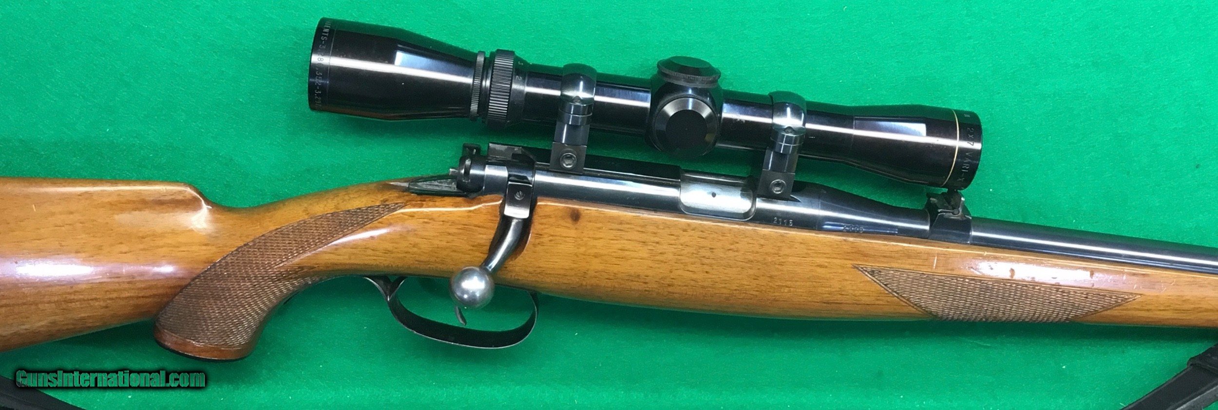 Description: The Steyr Zephyr 22 is considered to be the finest commercially produced 22 ever made. Three versions were produced, the low end “Club rifle”. Very plain, no checkering, half stock. the Mannlicher stocked version, shown here, and the never seen half stock Deluxe rifle, only one of which is known. This ad is for my single trigger Mannlicher stocked version fom 1961. It is in Excellent condition and comes with one factory clip and a Leupold 2-7X Vari X scope. Priced at $2998 plus $55 insured shipping in hard case. Lengthy Lay a way available. No credit cards and no trades. C&R ok. More photos on request. SOLD Curio/Relic: Yes |