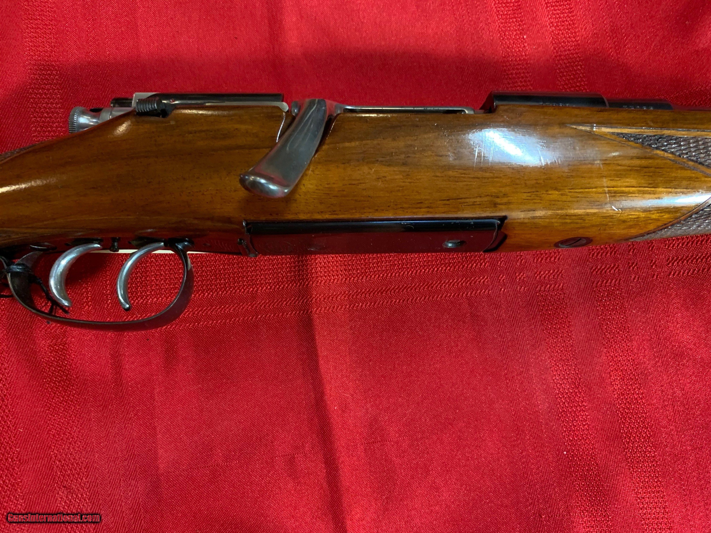 Description: MCA model 243 caliber. Set Triggers. Drilled for B&L or other mounts. Wood is perfect. Metal is original except for B&L mounting. Shadow line cheek piece. 22" barrel. SOLD Curio/Relic: Yes Rifle Caliber: .243 Winchester |