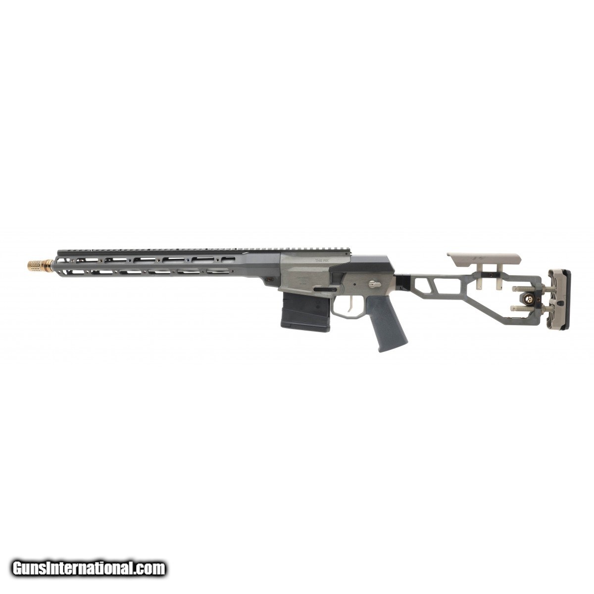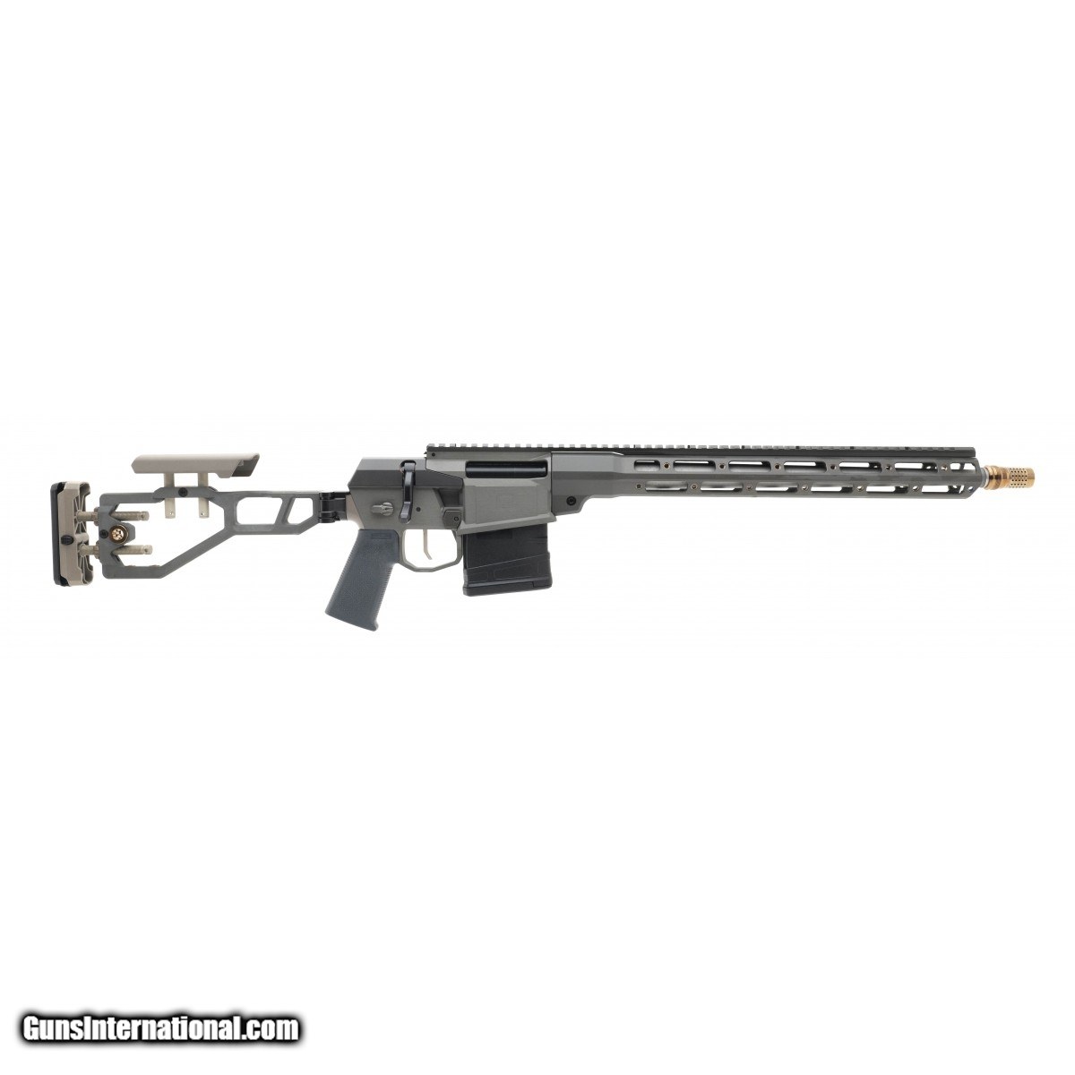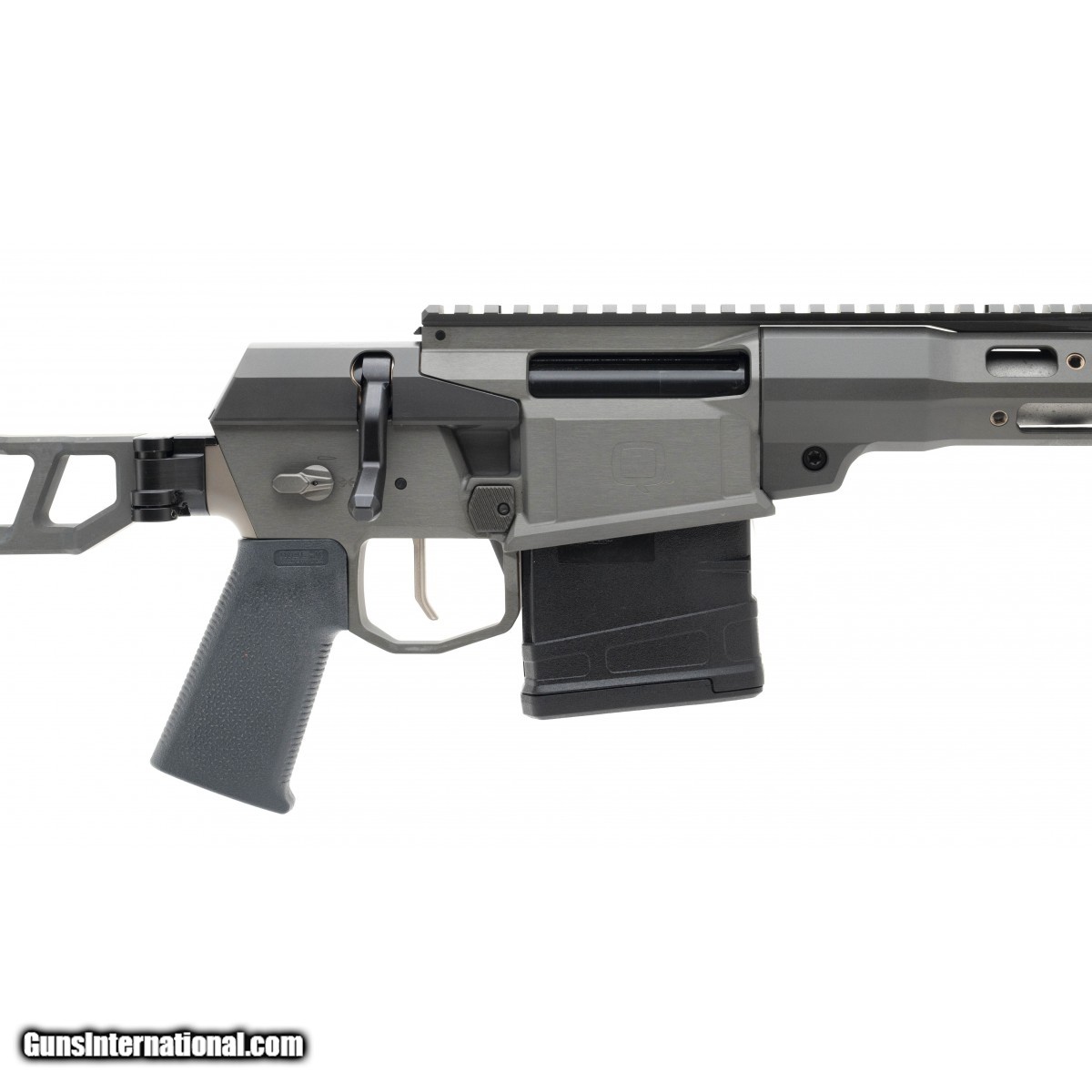 Single-piece chassis bolt action lightweight rifle with folding stock, freefloat M-Lok handguard, and 2-stage match trigger and 45 degree bolt. With 16"" stainless steel barrel and Q Cherry Bomb muzzle device. Comes with one Magpul magazine. New. UPC:850000857360