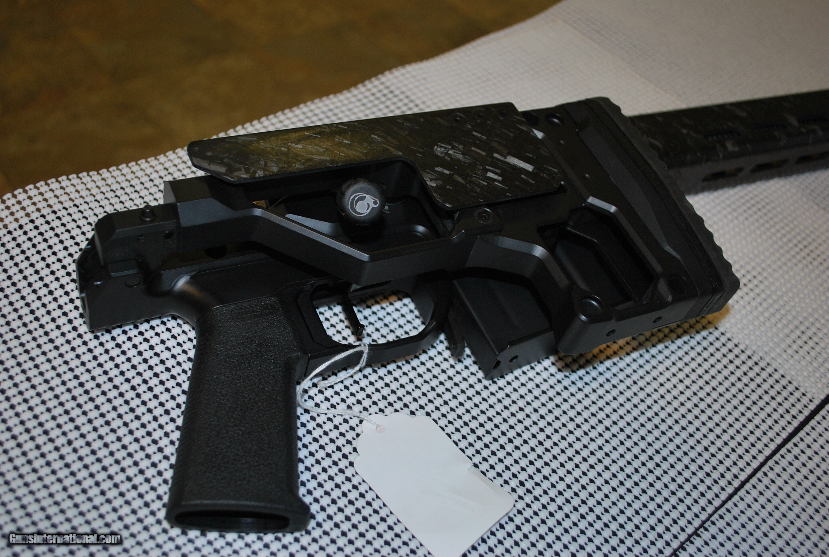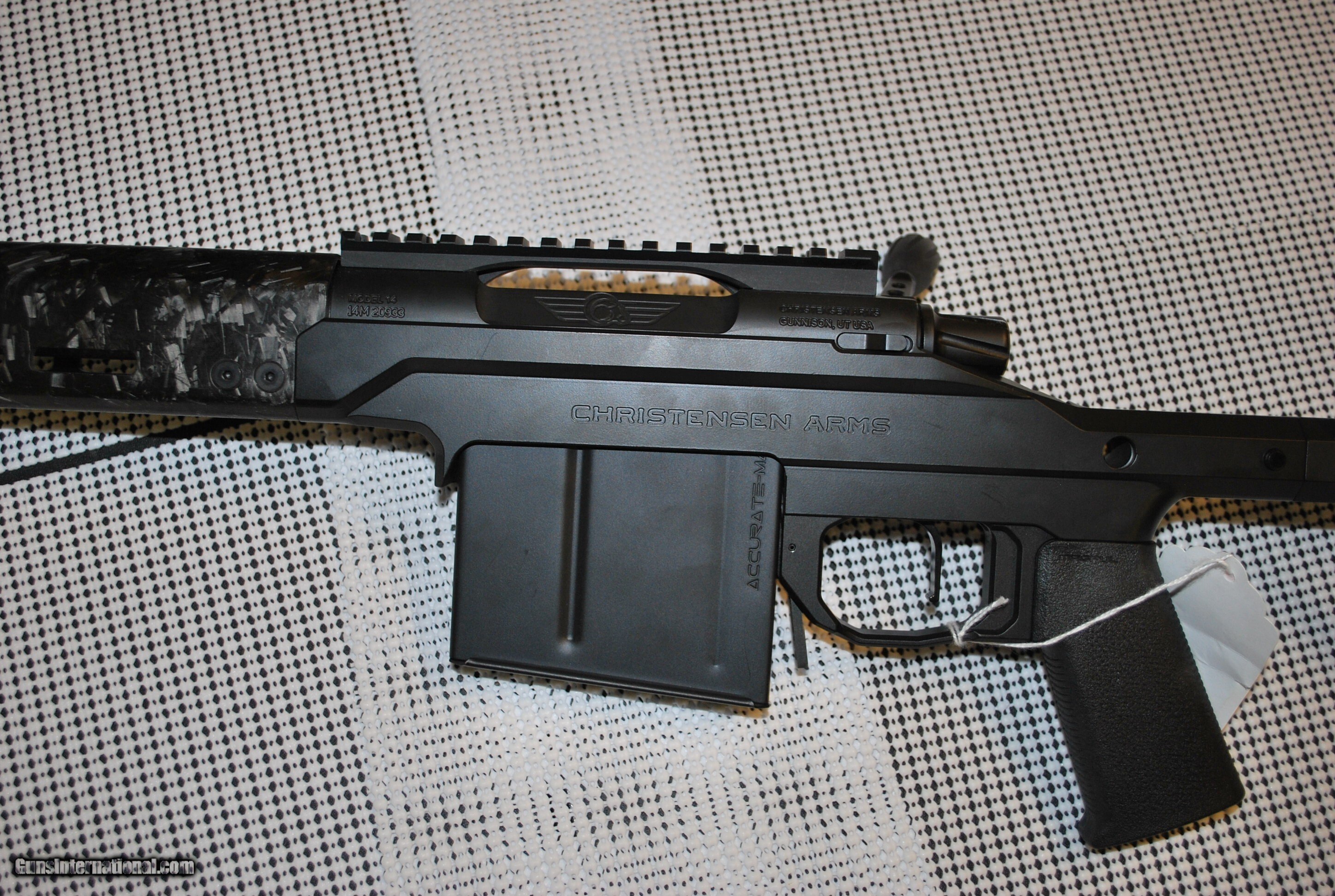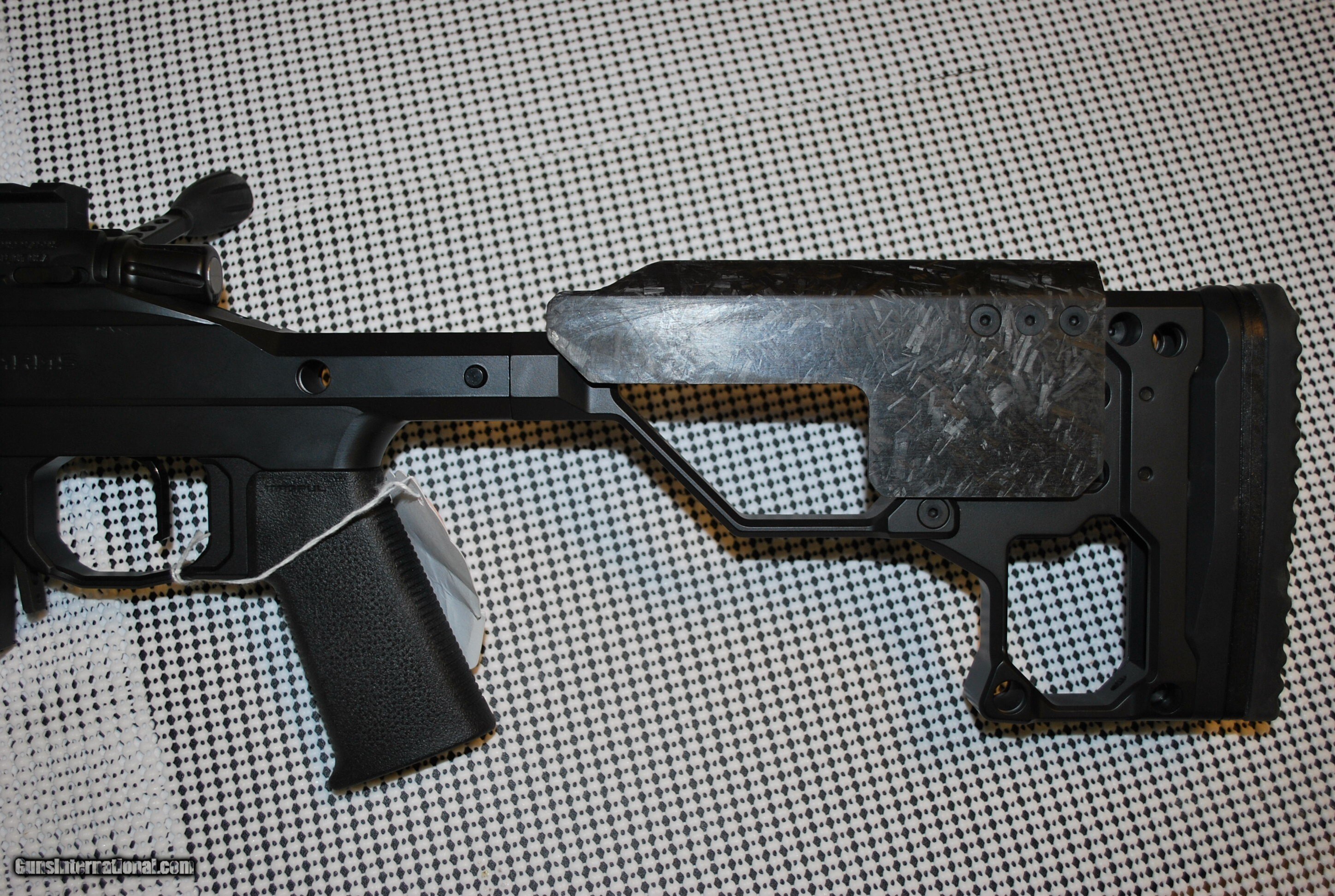 Description: Christensen Arms Modern Precision Black Bolt Action Rifle - 338 Lapua Magnum - The Christensen Arms Modern Precision Rifle is the next-generation chassis system. The chassis is machined from 7075 billet aluminum and features V-block bedding to promote superior accuracy. Other features include an adjustable folding stock with a locking hinge mechanism, an aerograde carbon fiber barrel, free-floating handguard, and adjustable comb. The bolt, receiver, and muzzle brake are coated with black nitride.