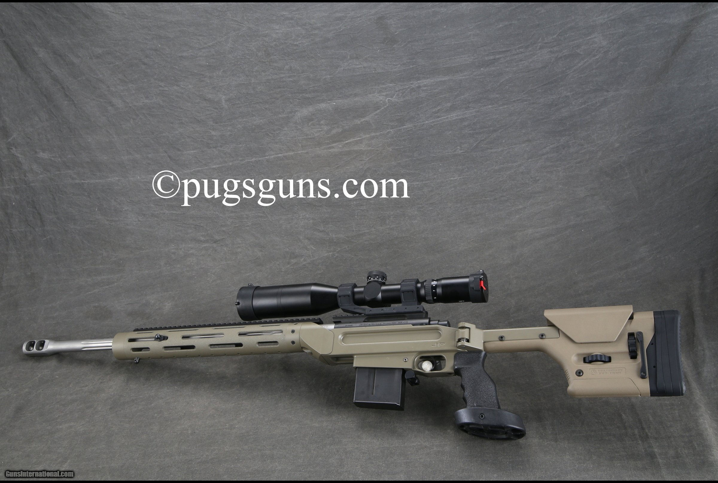 Description: Serial number 2. Schmidt and Bender Hunting Klassik with Accuracy International Custom Reticle (3-12x50) in JP Industries rings. Folding Magpul Stock. SOLD Manufacturer: JP Enterprises Model: MR 10 #2 serial number Caliber Info: 308 Barrels: 26 inches Action: RB |