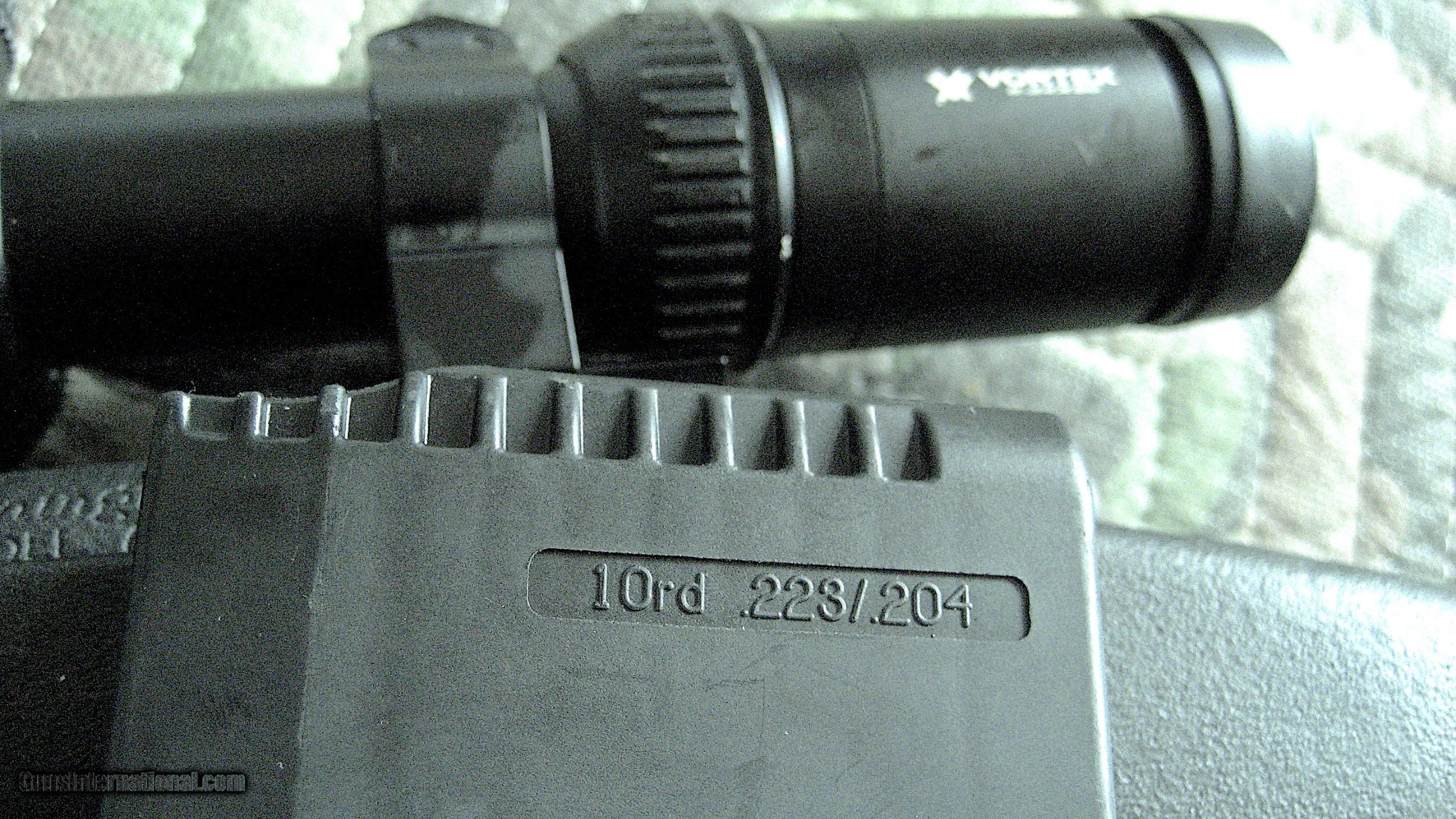 Description: Remington 700 Tactical .223 (or 5.56) bolt action that has a Choate Tool tactical stock with Vortex Optics Viper HS LR First Focal Plane Riflescope. Free floating heavy barrel with tough flat three dimensional finish on barrel and receiver. Bore immaculate and shiny throughout with no rust or corrosion. Scope: