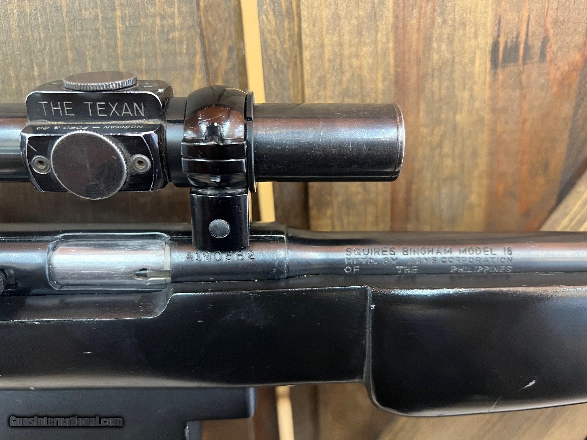 Description: Guns Listing ID: 616527 SQUIRES BINGHAM MODEL 16 RIFLE - 22LR - 19.5\" BARREL - W/ SCOPE & 3 MAGS. IMPORTED BY KASSNAR - HARRISBURG, PA, SERIAL NUMBER A190582. OVERALL LENGTH: 38.5\" WEIGHT: 6.5 LBS. Manufacturer: KASSNAR IMPORTS, INC. Model: 16 RIFLE Caliber Info: .22 LR Condition: Used - Non-Certified Barrels: 19.5" BARREL Action: SEMI AUTOMATIC Finish: black Price: $225.99 Contact Seller |