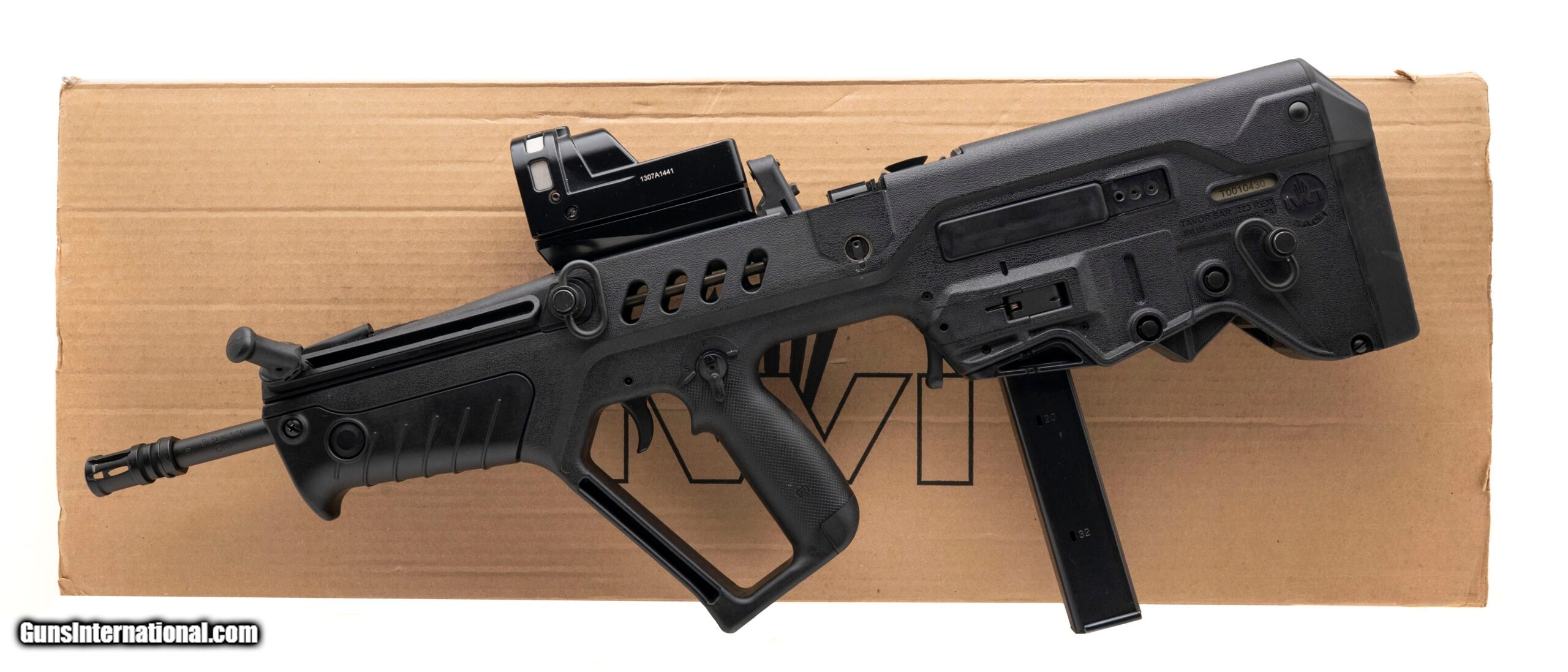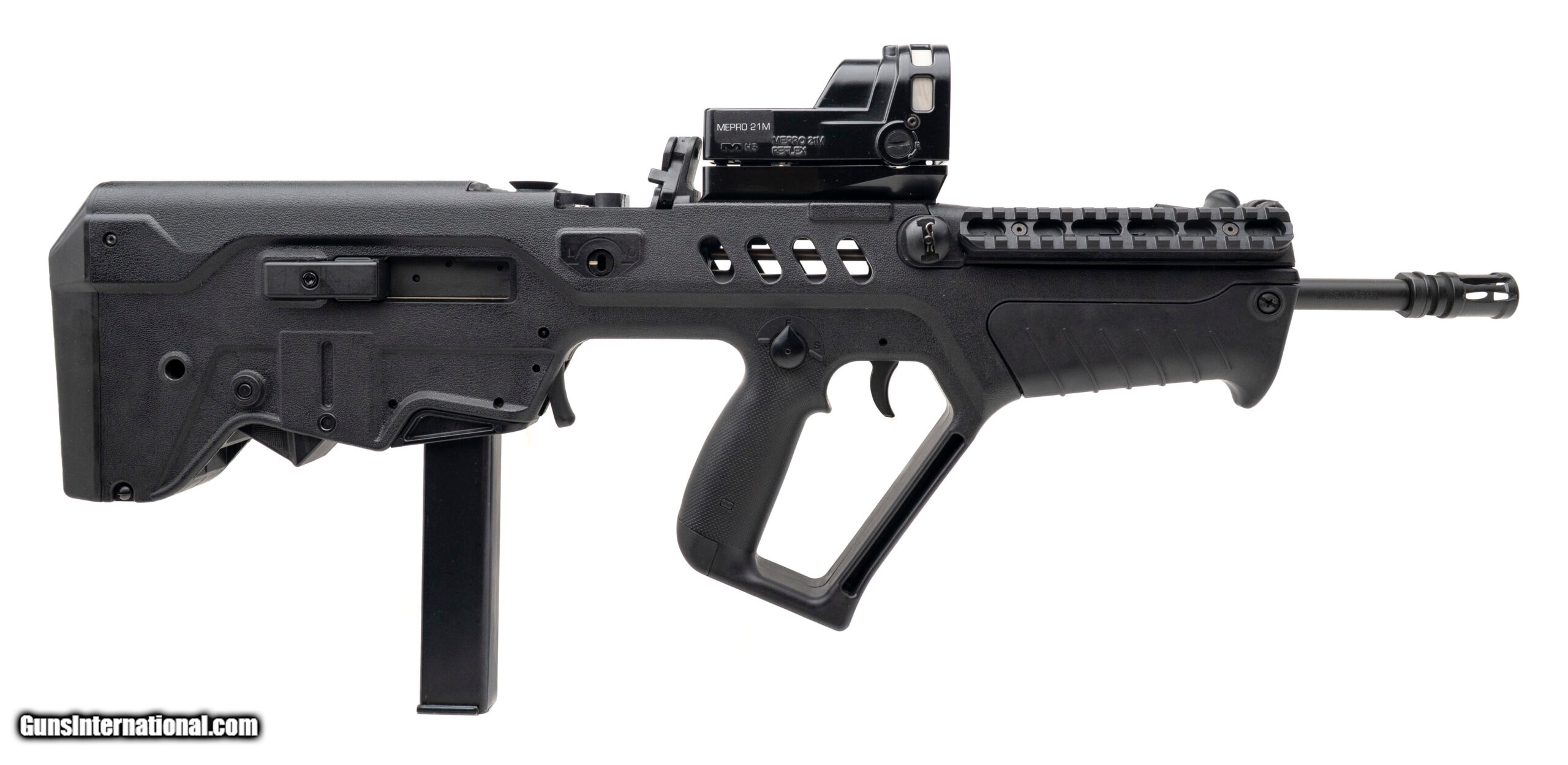 Description: "SN: T0010430. Modern production, 9mm/5.56 NATO with a 16.5"" barrel. Bore is bright with excellent rifling. Tactical bullpup rifle with a Mepro 21M reflex optic, accessory rail, and QD sling mounts. Overall condition is near excellent. Comes with 5.56 conversion kit. Price: $2,500.00 Contact Seller |