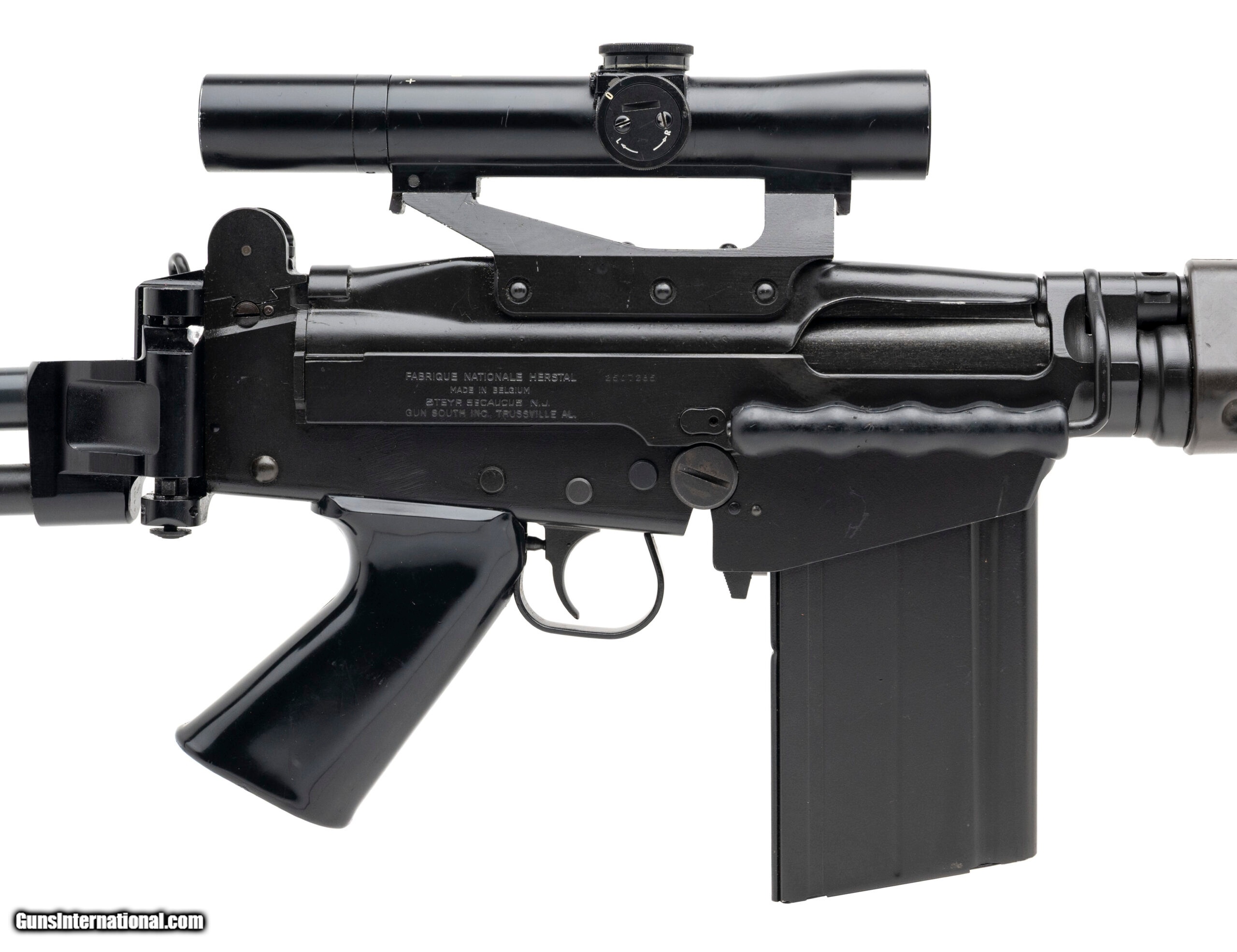 Description: "Serial Number 2507285. Made in Belgium in 1984 with a 21-inch barrel that has a bright bore with strong visible rifling. This is a semi-automatic version of the Model 50.61 FN FAL ""para folder"" battle rifle that is built on a Type 3 receiver. It was imported by GunSouth of Trussville, Alabama in cooperation with Steyr in Secaucus, New Jersey during the years that preceded the 1989 Import Ban. The rifle is in exceptional condition with no visible wear on the internal fire control components & a gas piston that shows no carbon accumulation, suggesting that the rifle has only been factory fired. The plastic handguards show some limited handling marks, but otherwise the rifle looks like it did when it was unpacked in Alabama back in the 80s. Comes with bayonet & plastic scabbard, an FN 4x28mm telescopic sight & a metric 20-round detachable box magazine. Price: $7,500.00 Contact Seller |